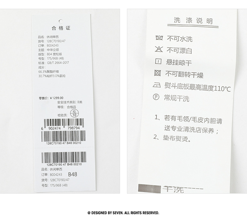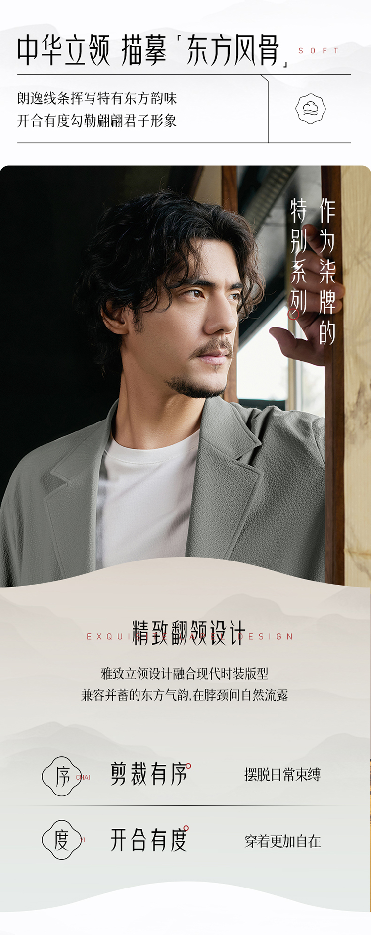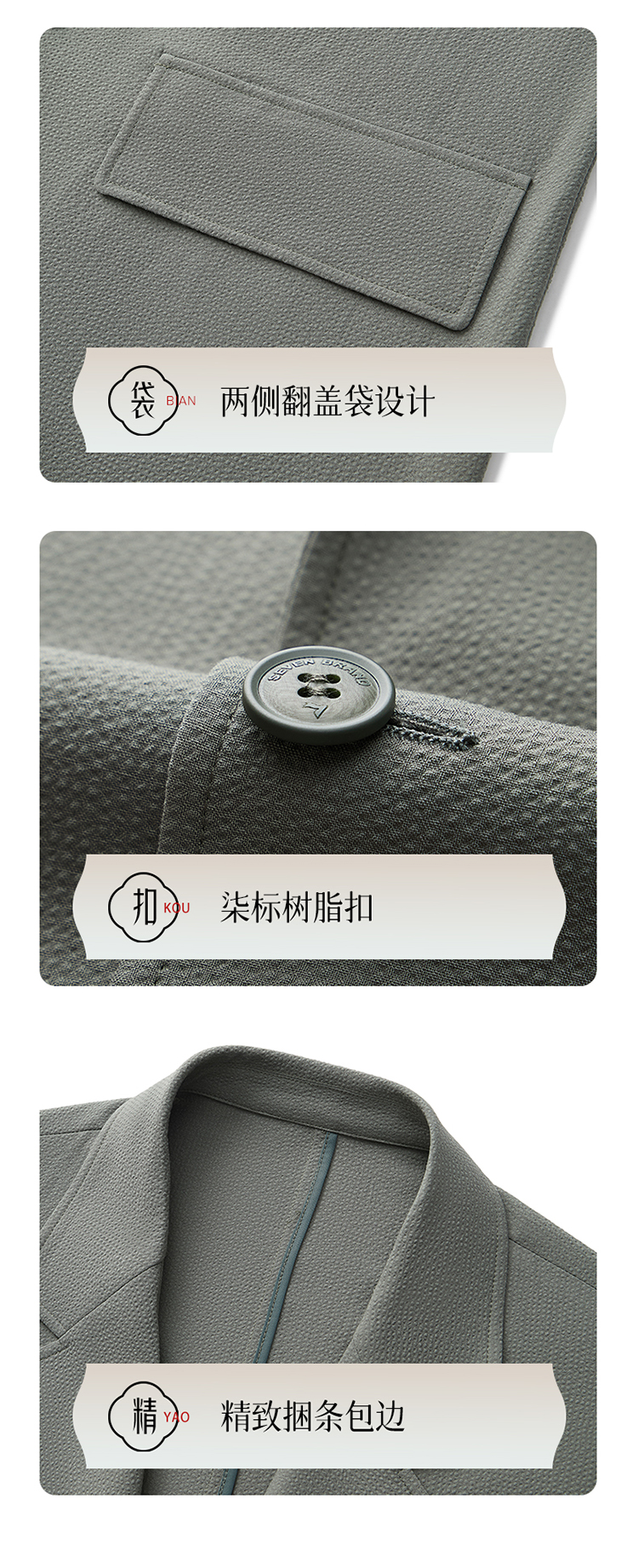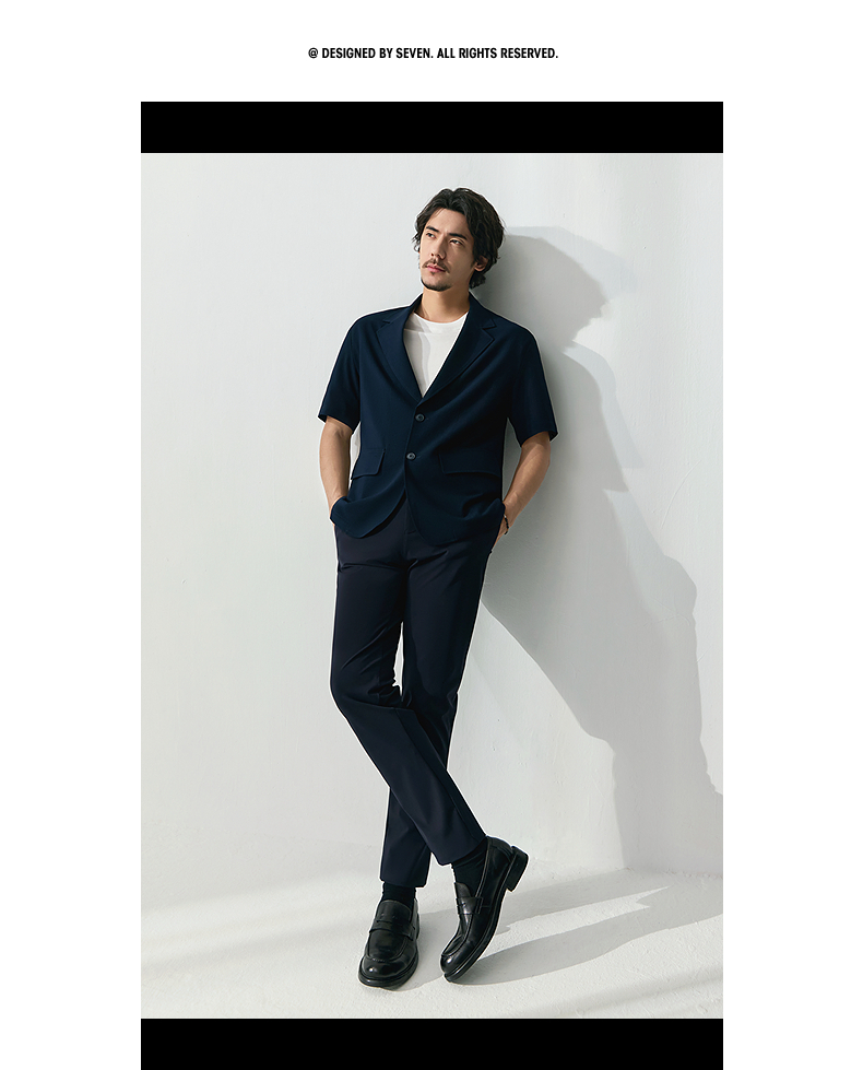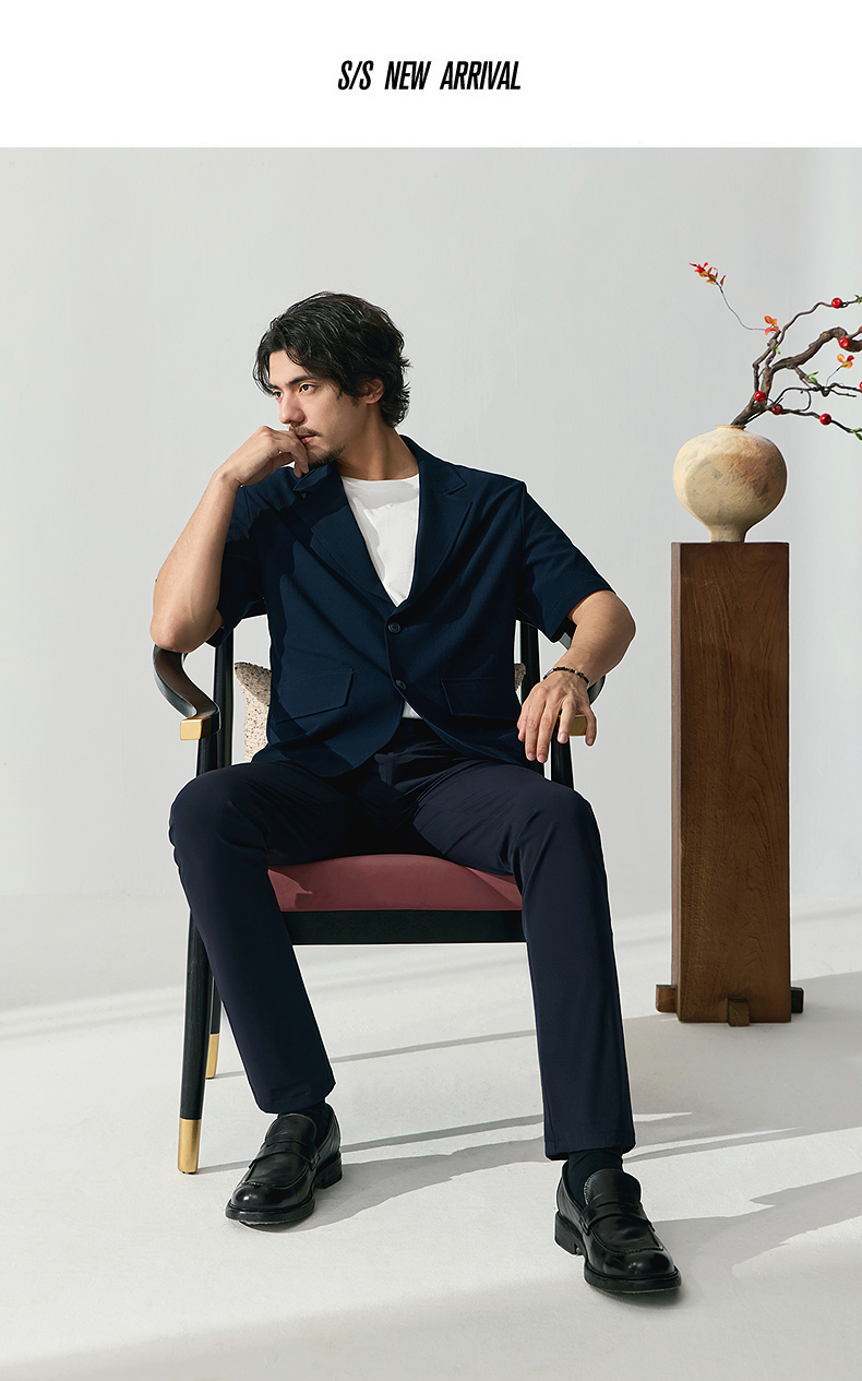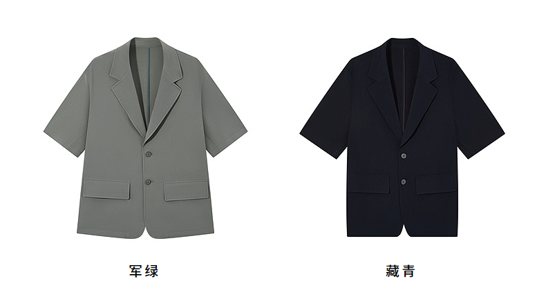 【谢震业同款】柒牌短袖西装外套男春夏新款宽松肌理泡泡纱休闲西服128C70190