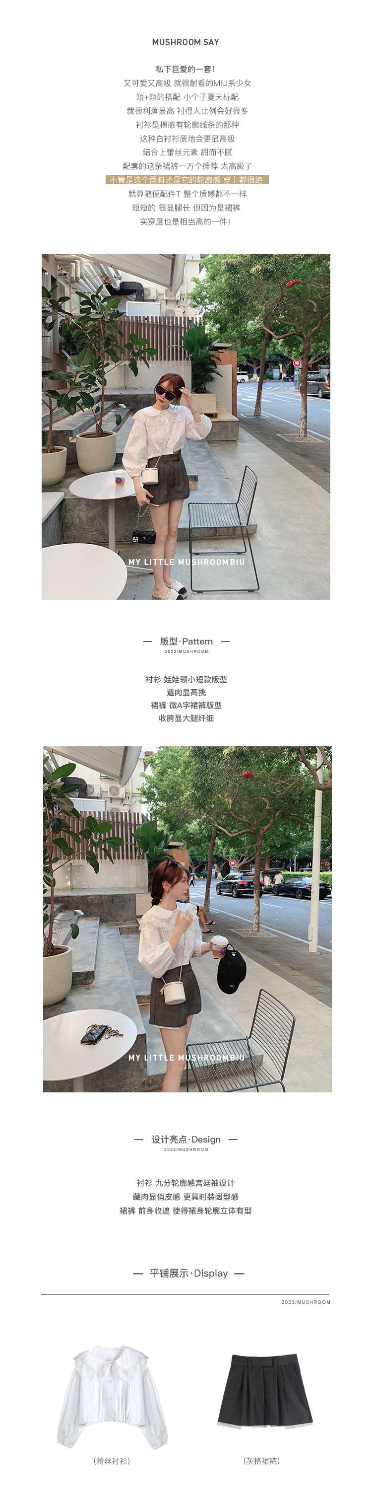 灰格裙裤~ 搭配衬衫很通勤哦 金蘑菇菇【秀场限定 miu套】