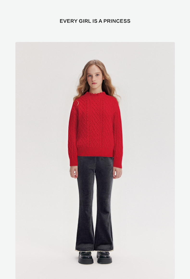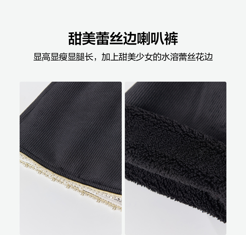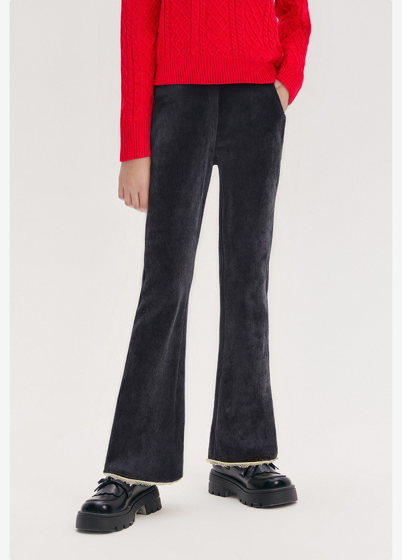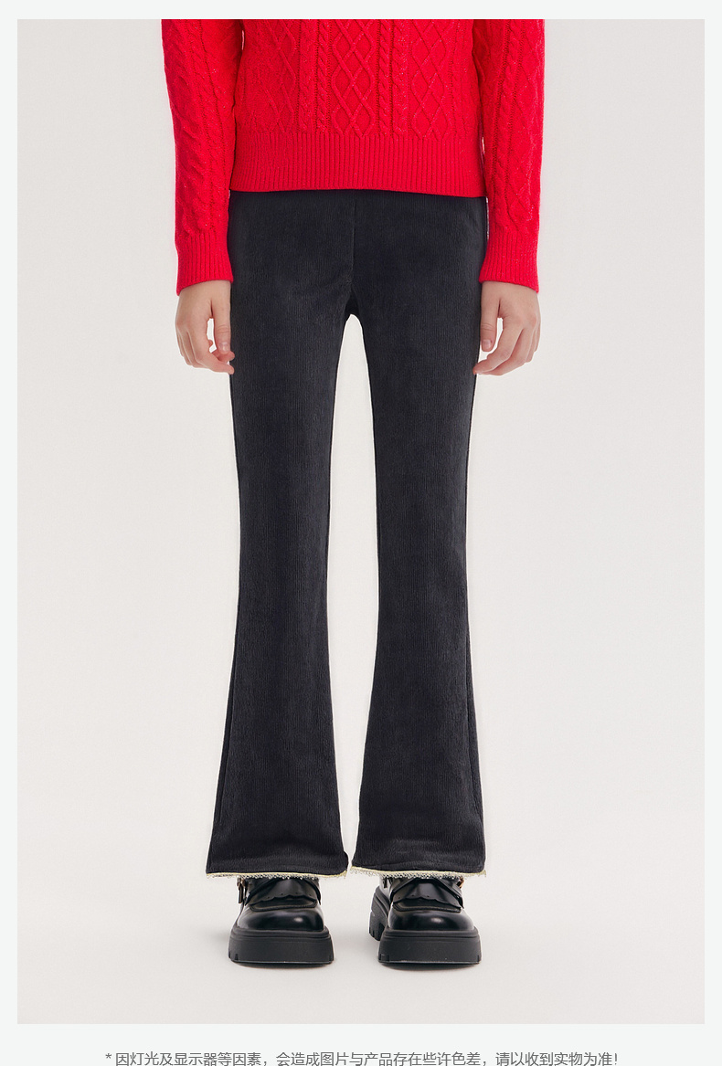 笛莎Deesha 童装女童裤子2025冬新款甜美蕾丝边喇叭裤