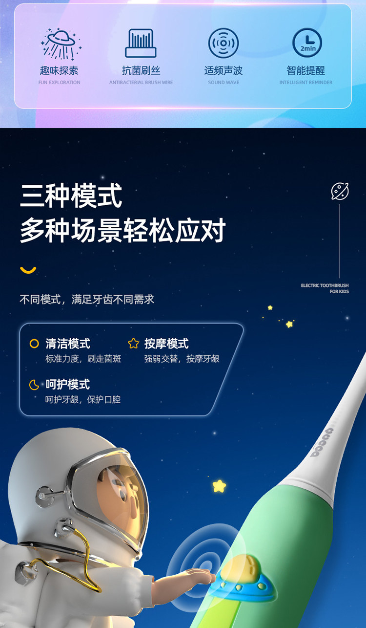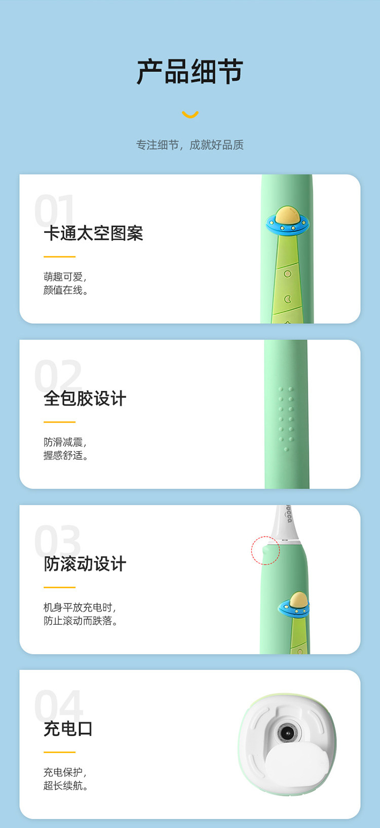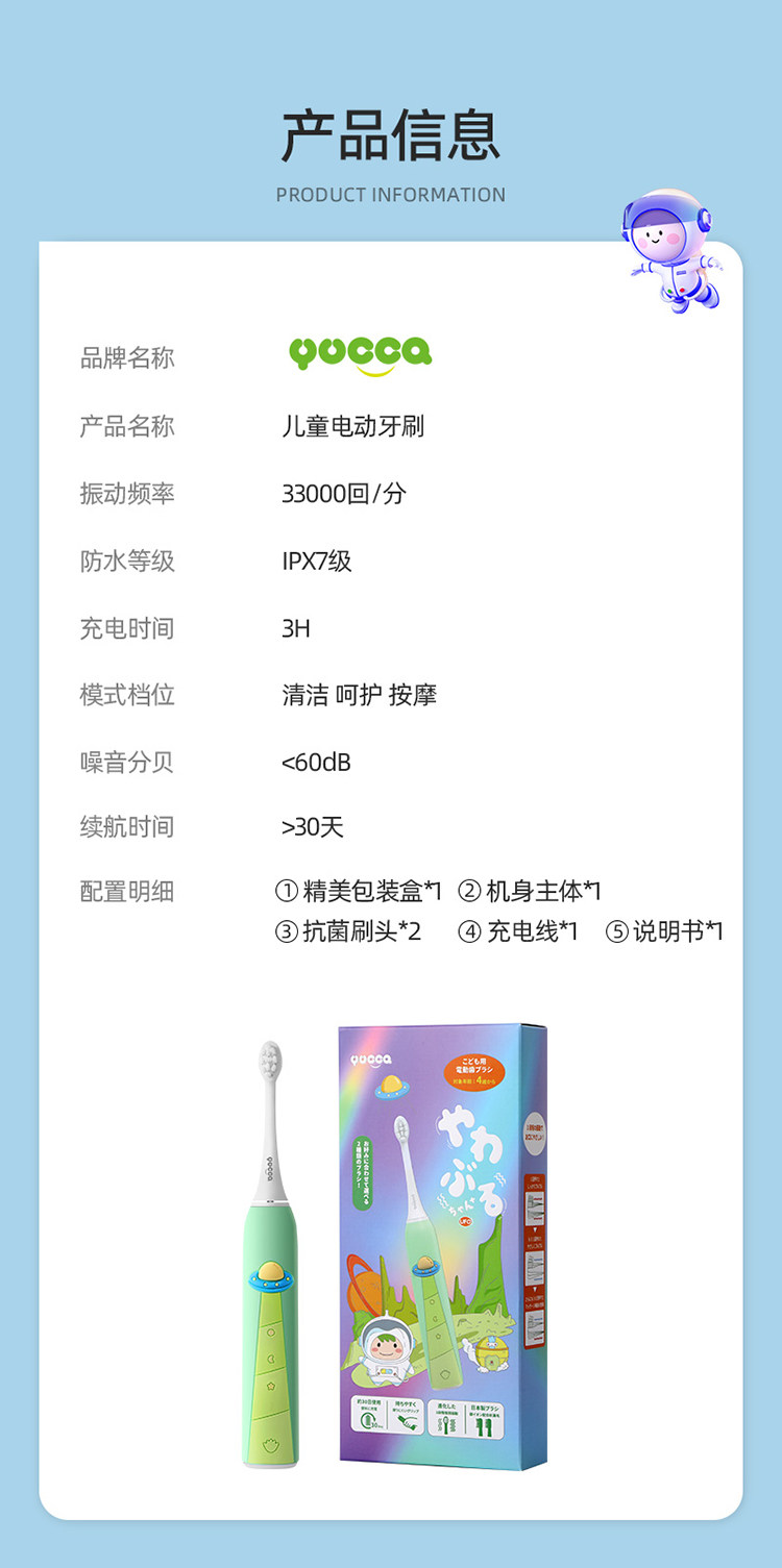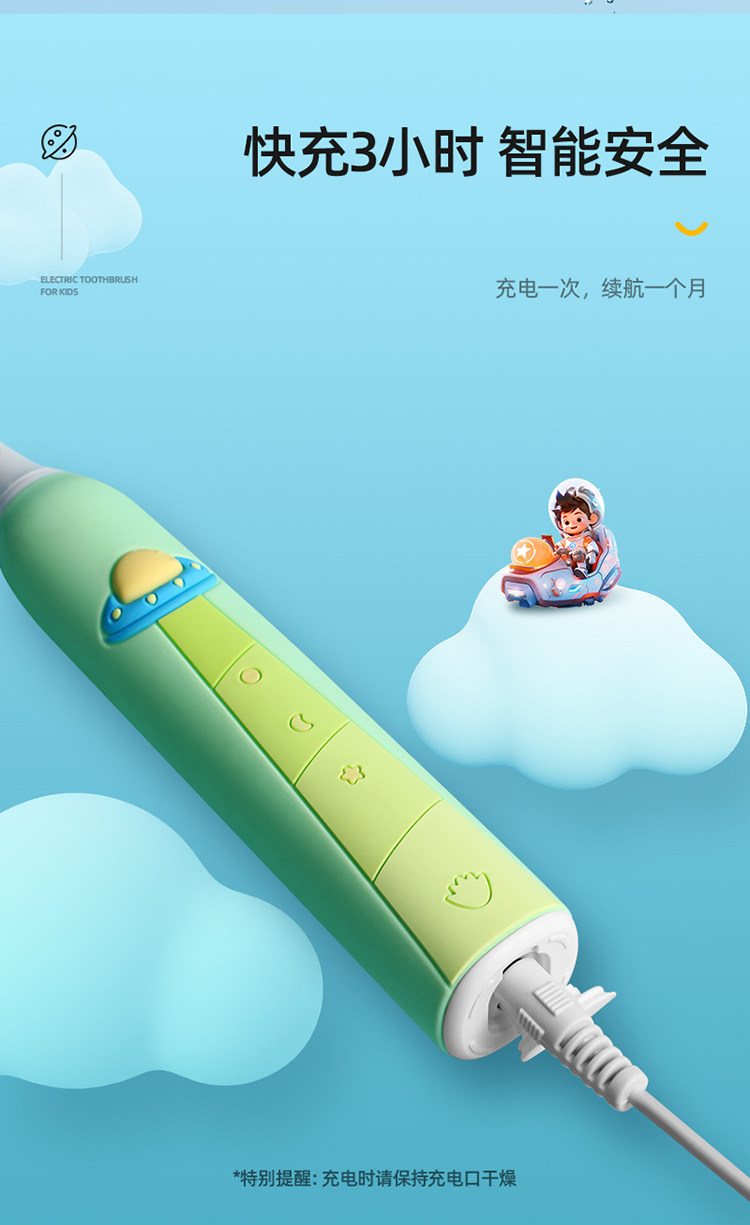 Yucca儿童UFO电动牙刷声波【大童4岁+】宝宝替换软毛刷头8岁+
