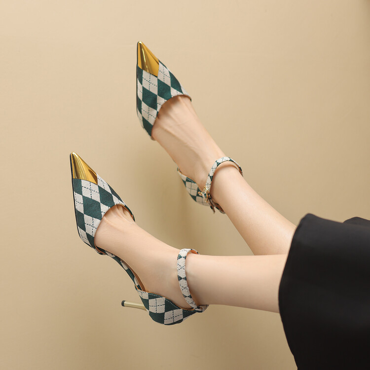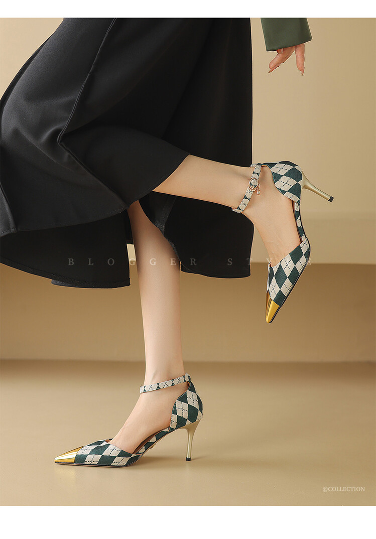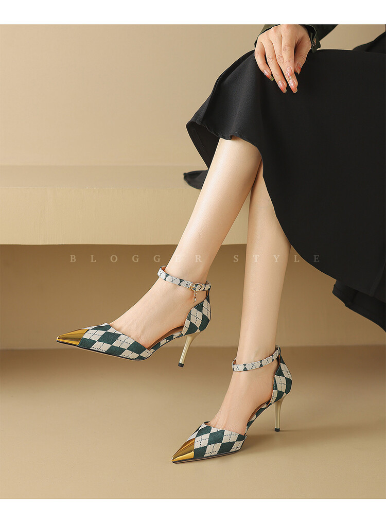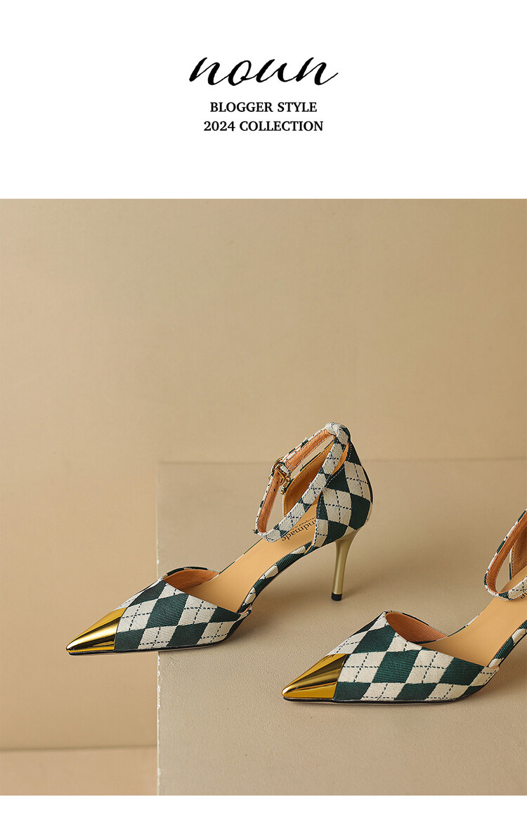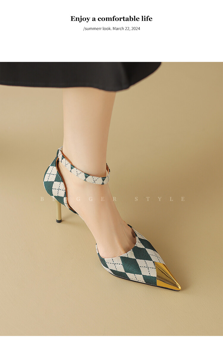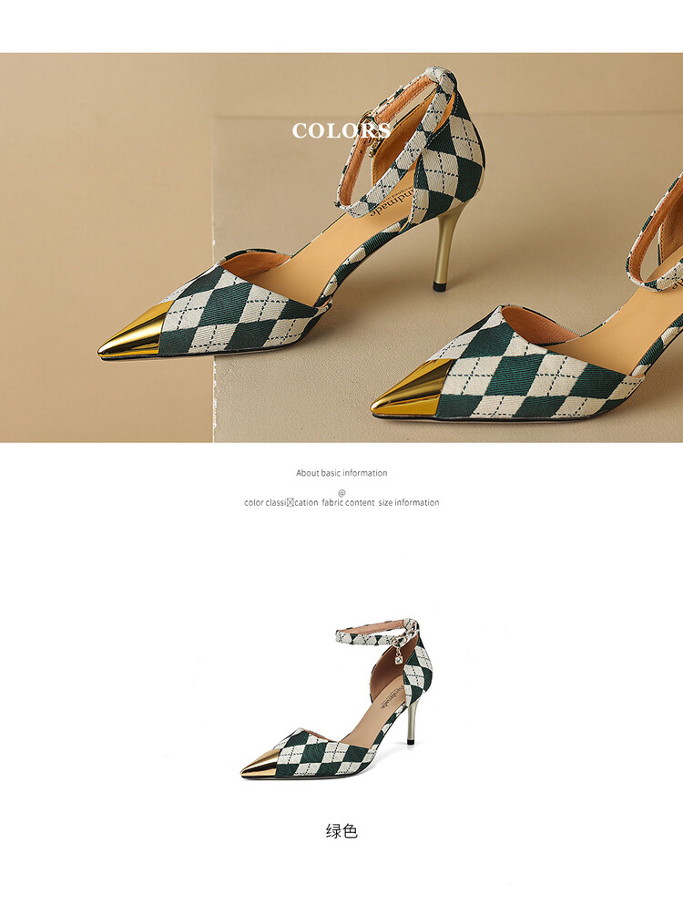 【预售5天】尖头高跟鞋女新款一字带中空细跟包头女单鞋时尚性感高跟女鞋LD&6845
