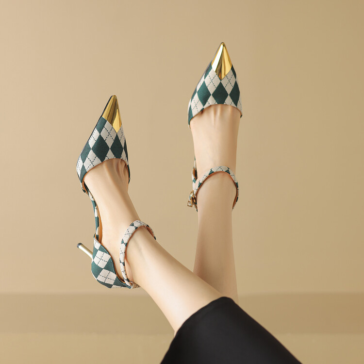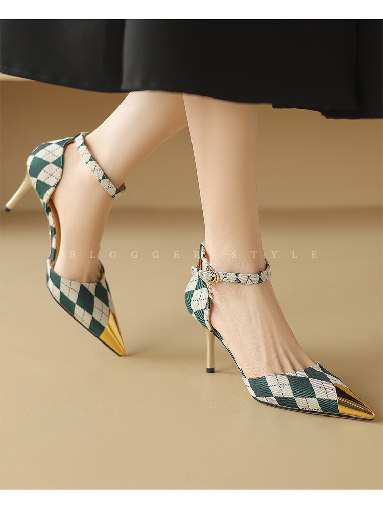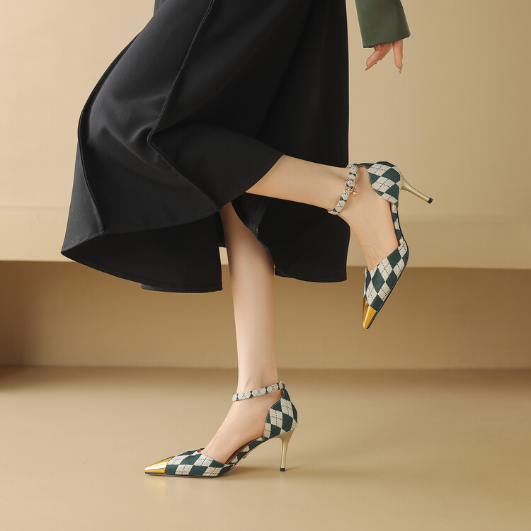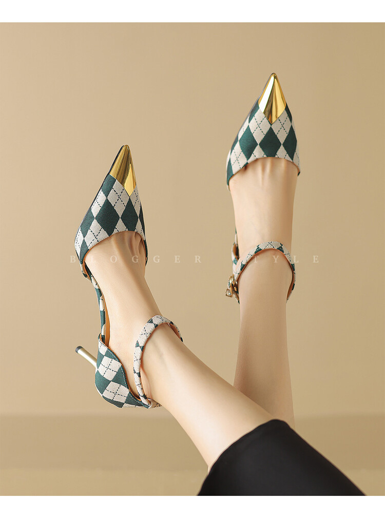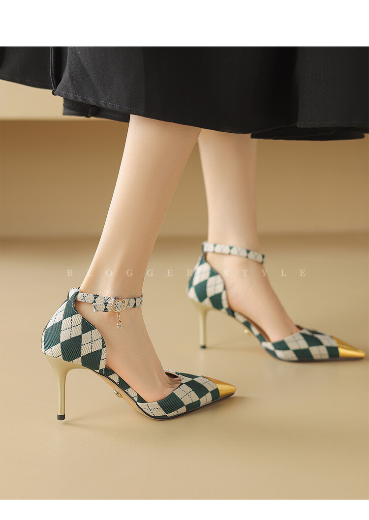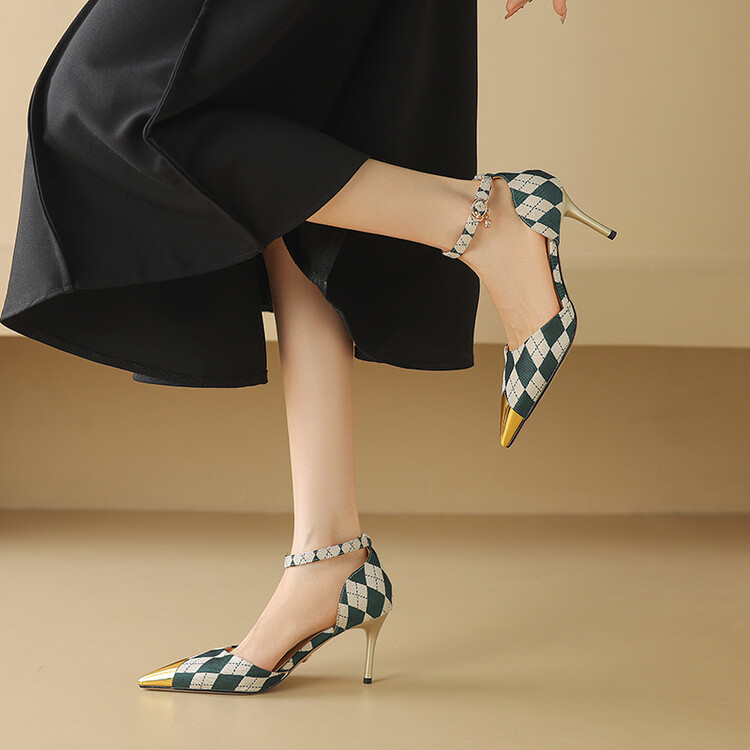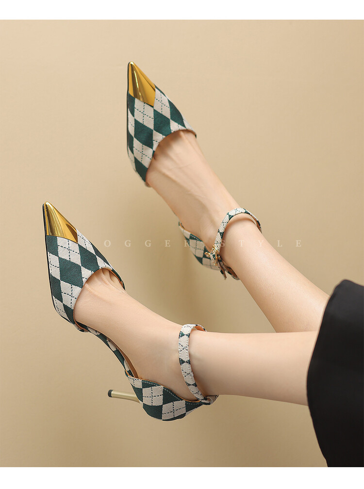 【预售5天】尖头高跟鞋女新款一字带中空细跟包头女单鞋时尚性感高跟女鞋LD&6845