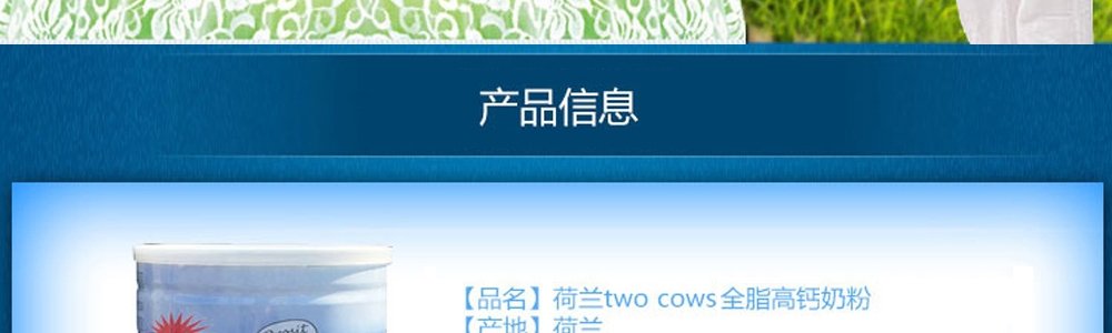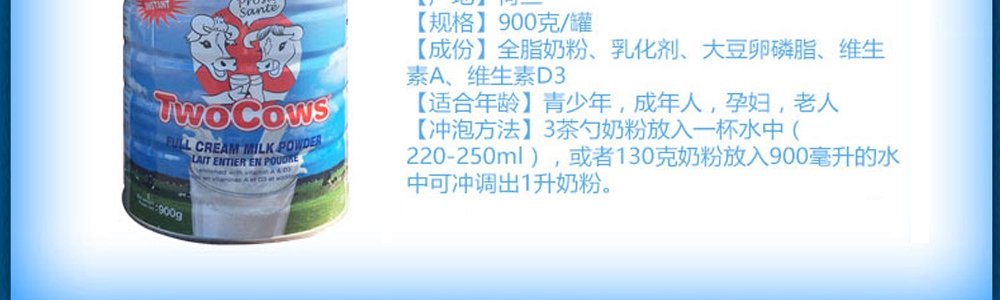 【保税仓】荷兰双牛高钙全脂奶粉(无蔗糖)900g,适合三岁以上所有人群食用