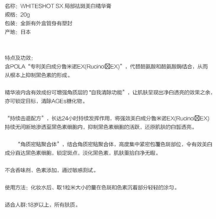 【香港直邮】POLA/宝丽 SX局部透白精华 20g
