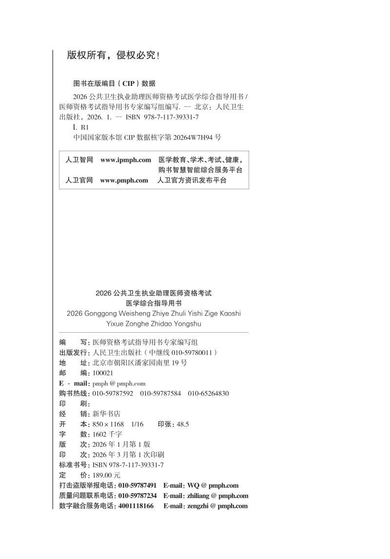 书名:2026公共卫生执业助理医师资格考试医学综合指导用书