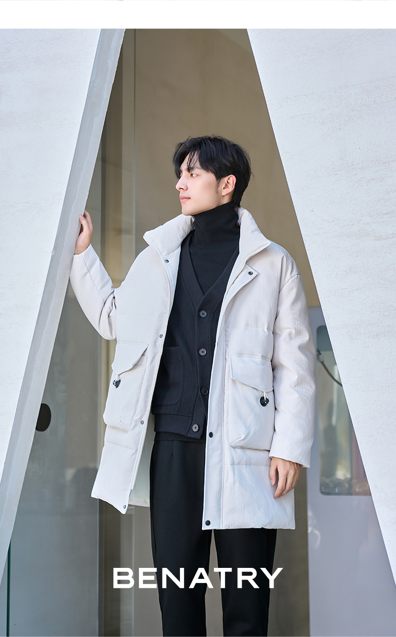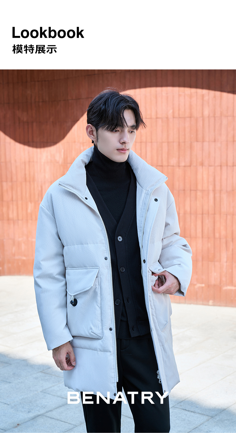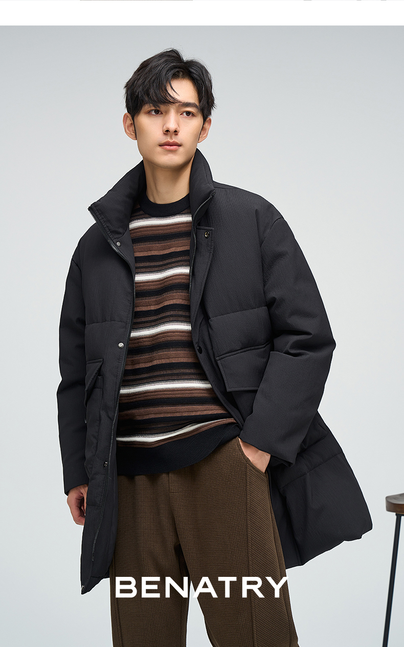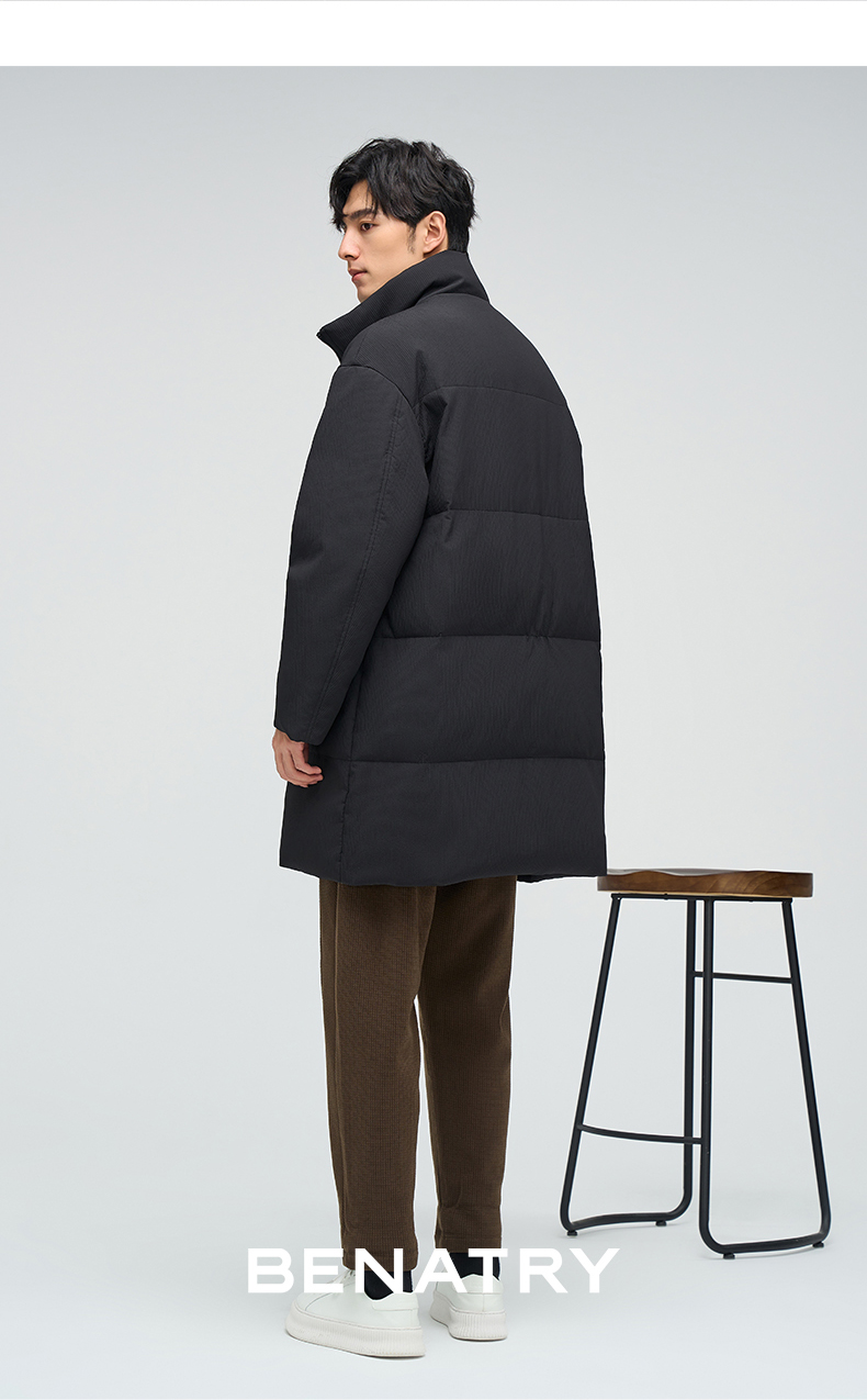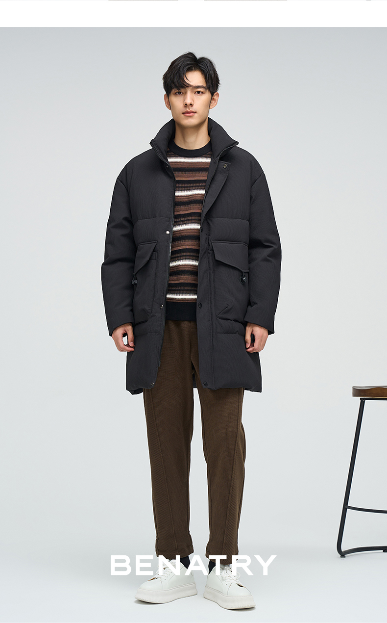 贝纳川立领特色口袋中长款男士羽绒服ECP405009