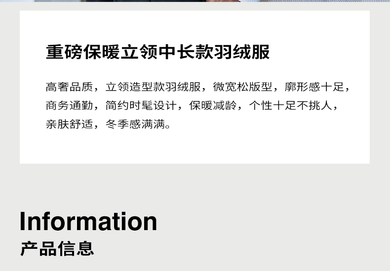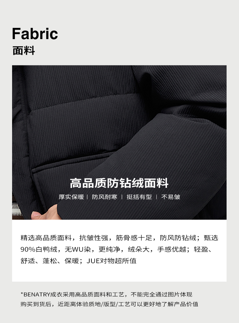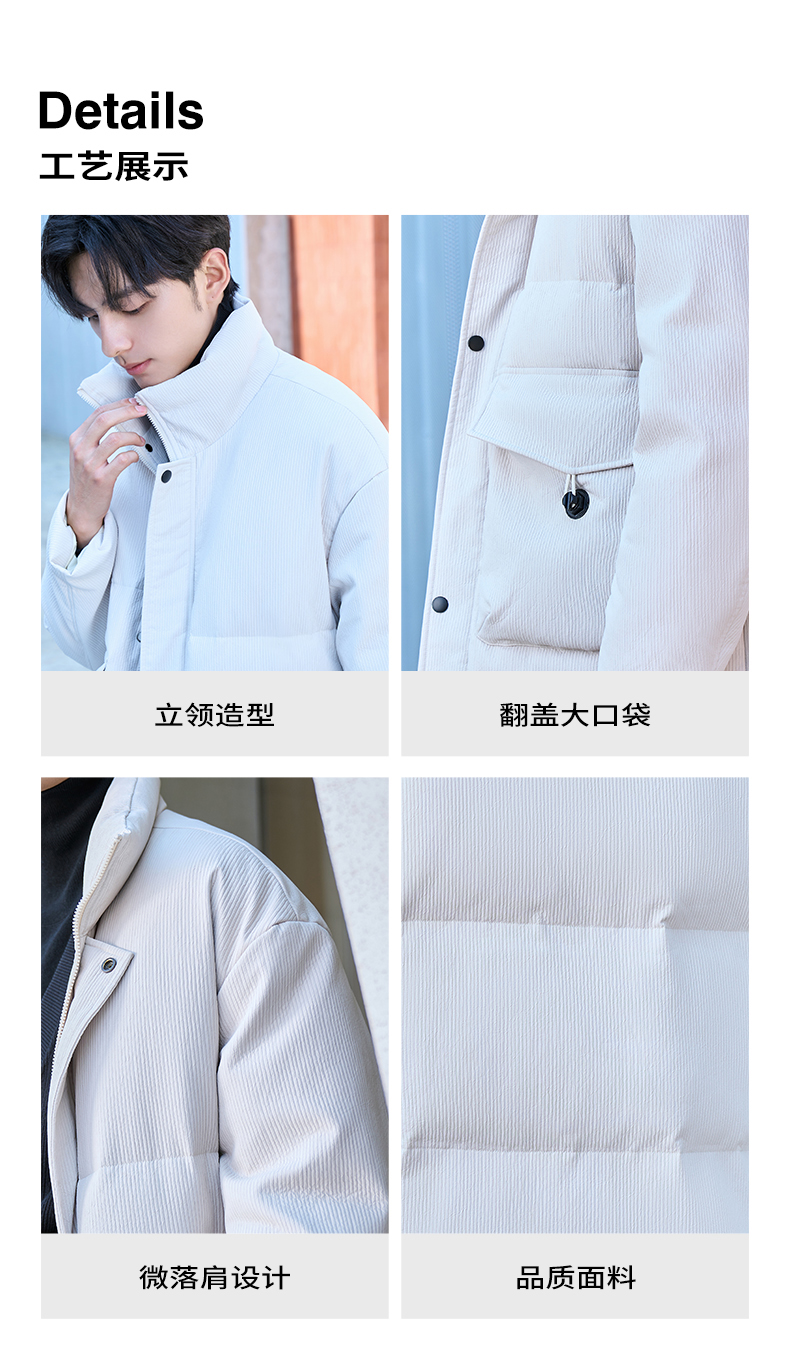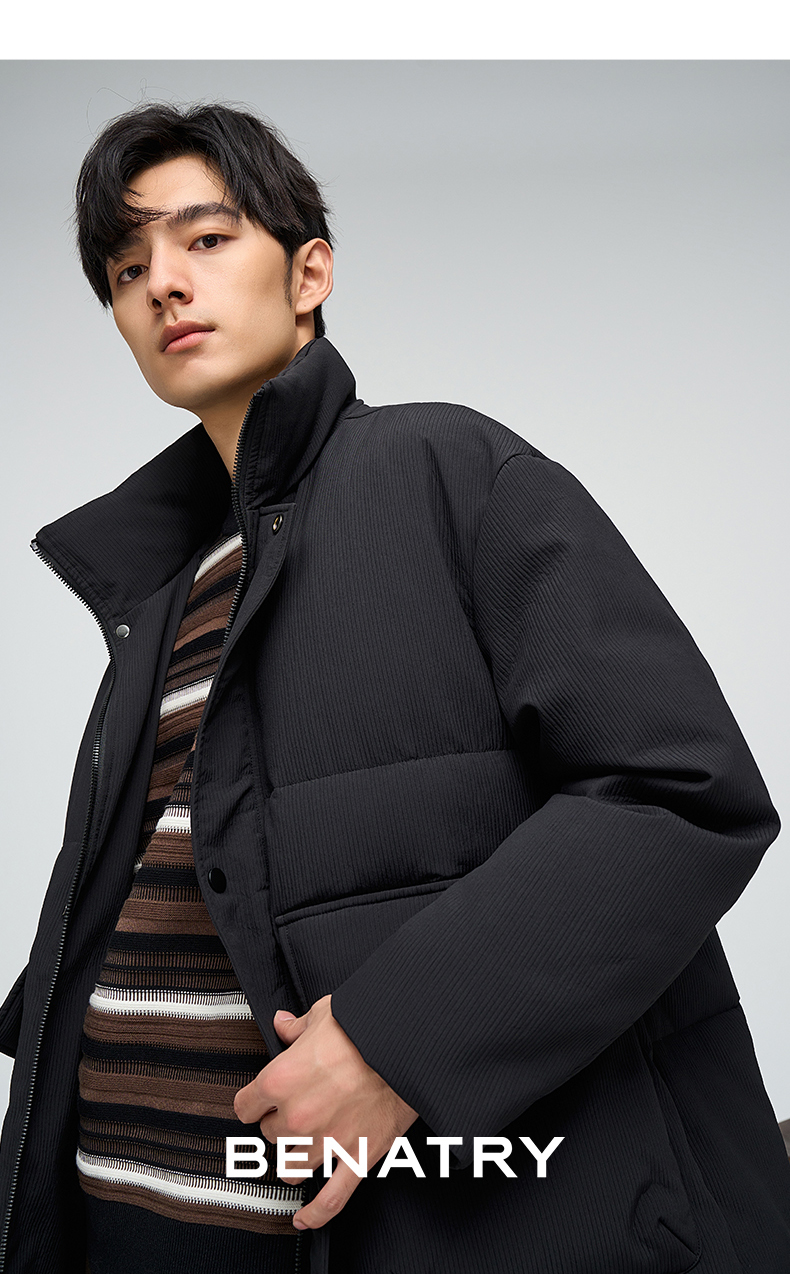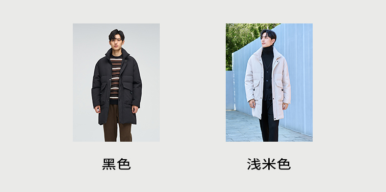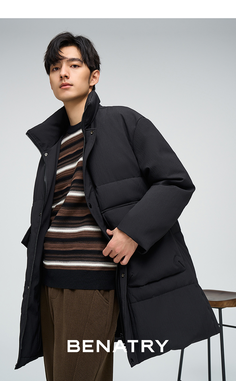 贝纳川立领特色口袋中长款男士羽绒服ECP405009