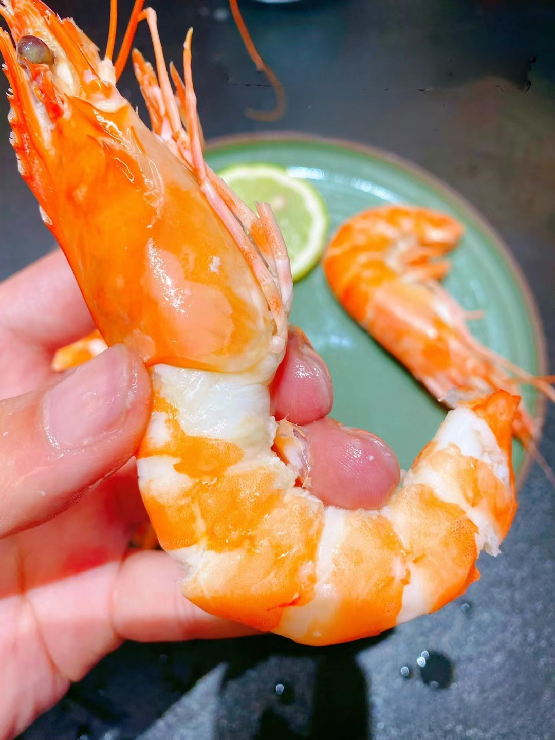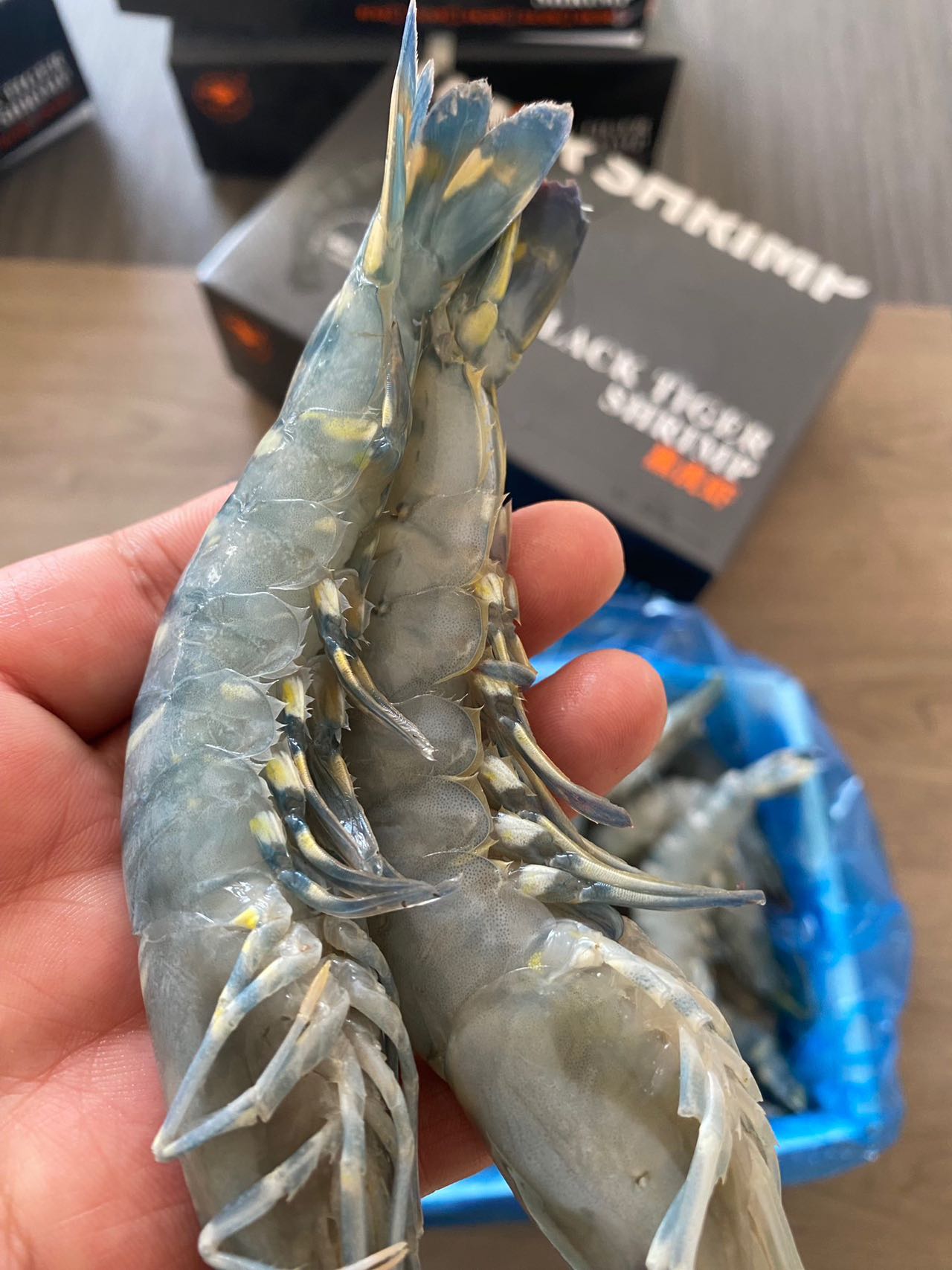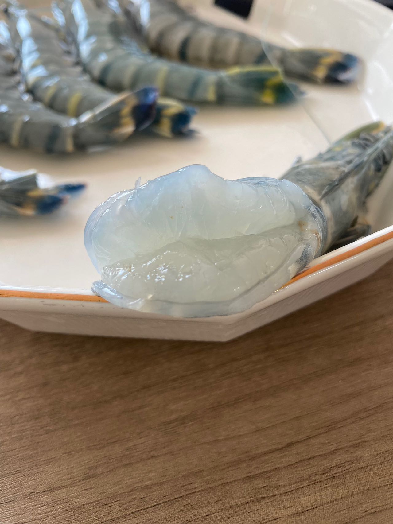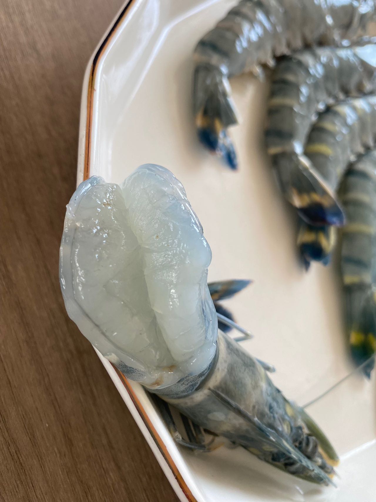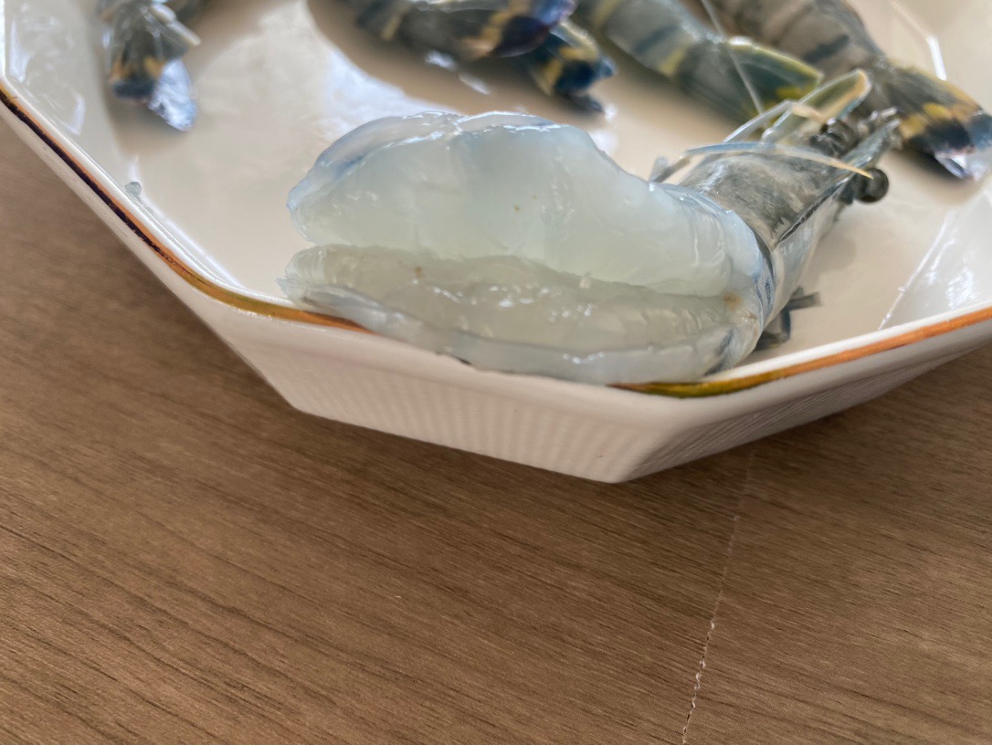 这是背部去了壳的黑虎虾实拍!