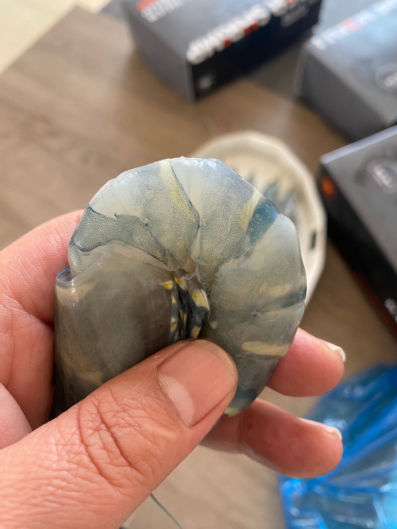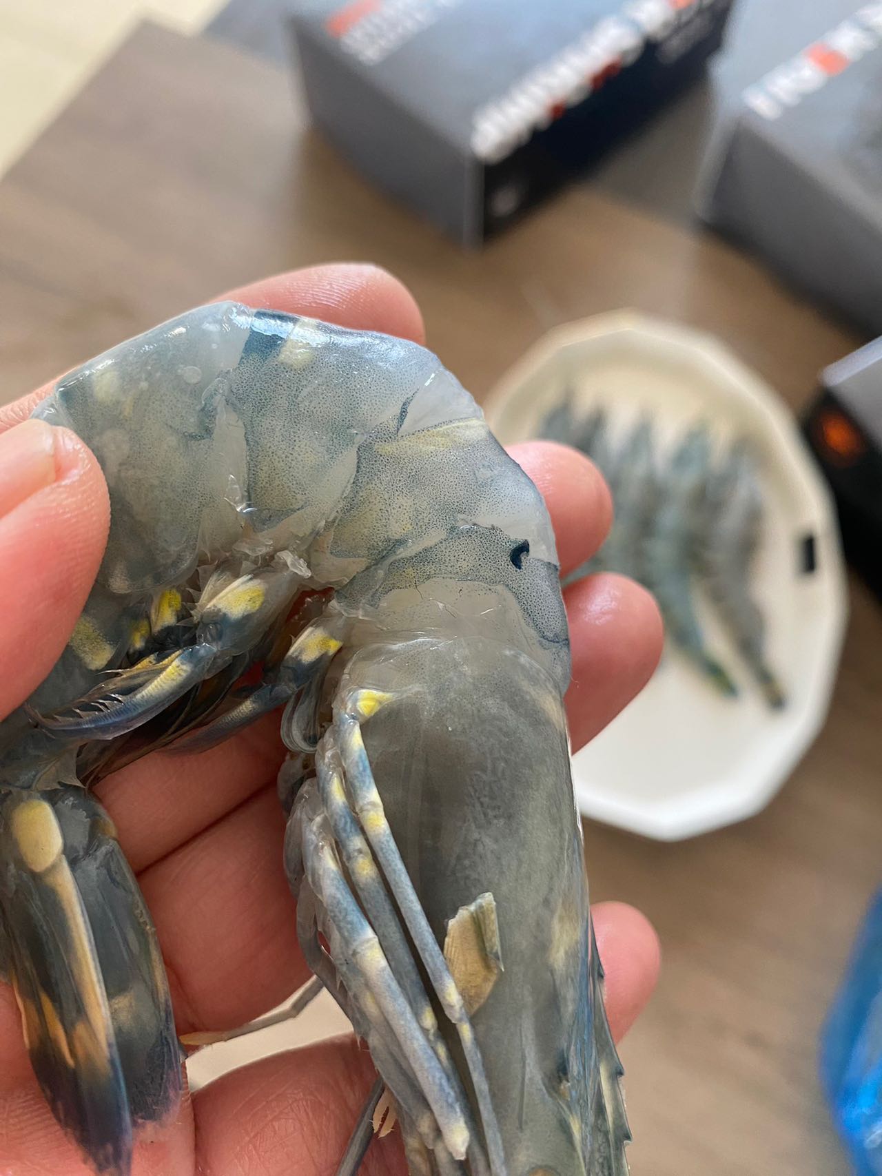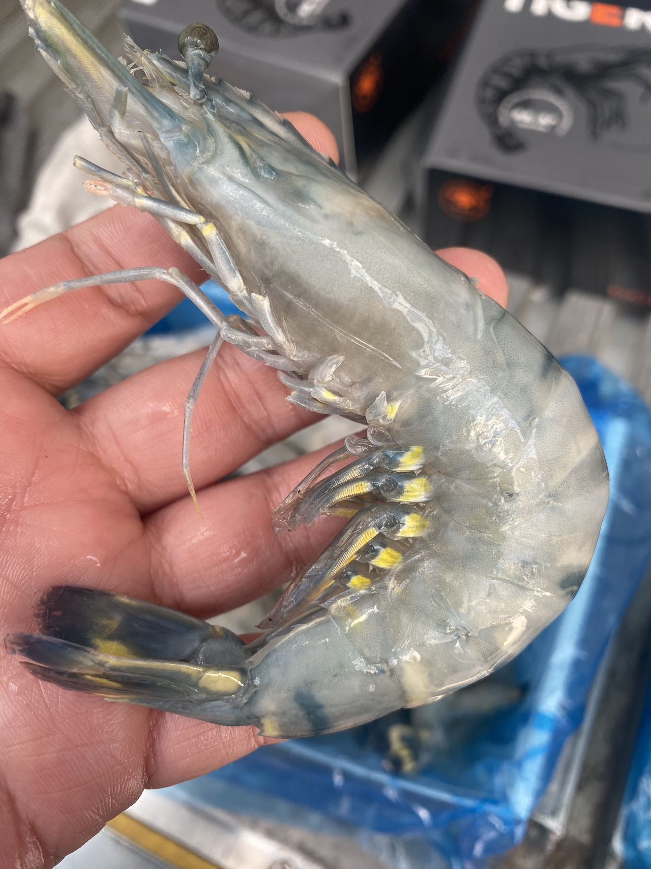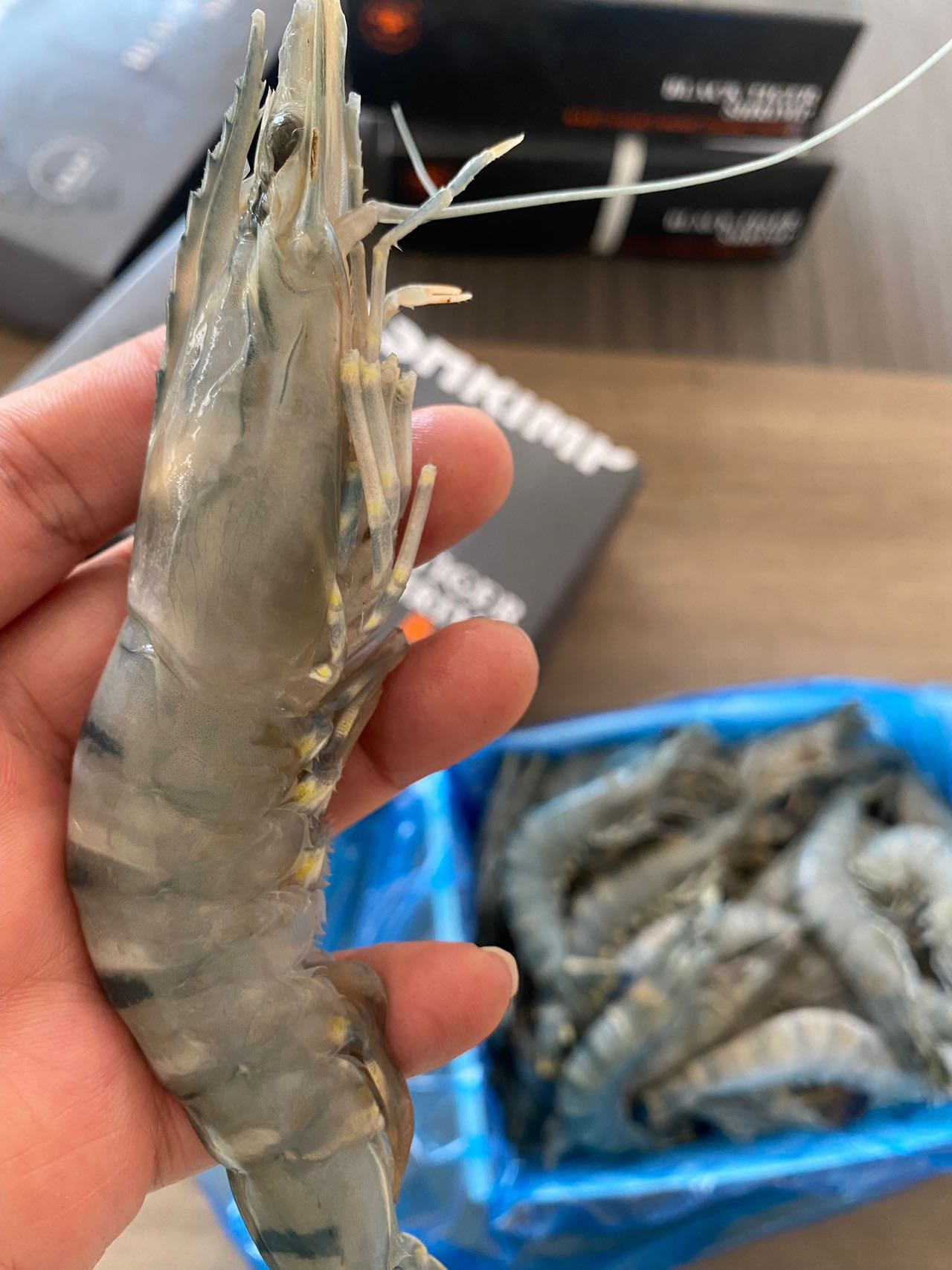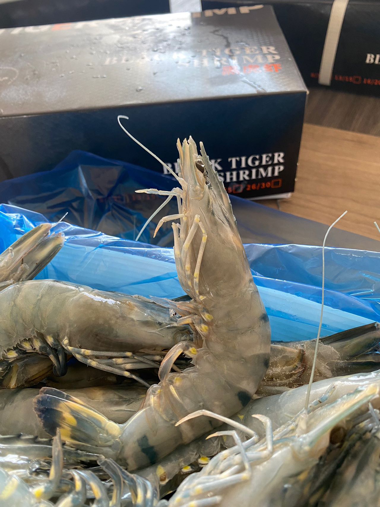 这是背部去了壳的黑虎虾实拍!