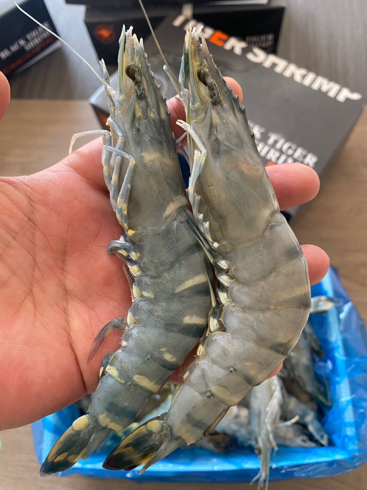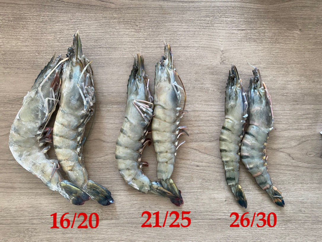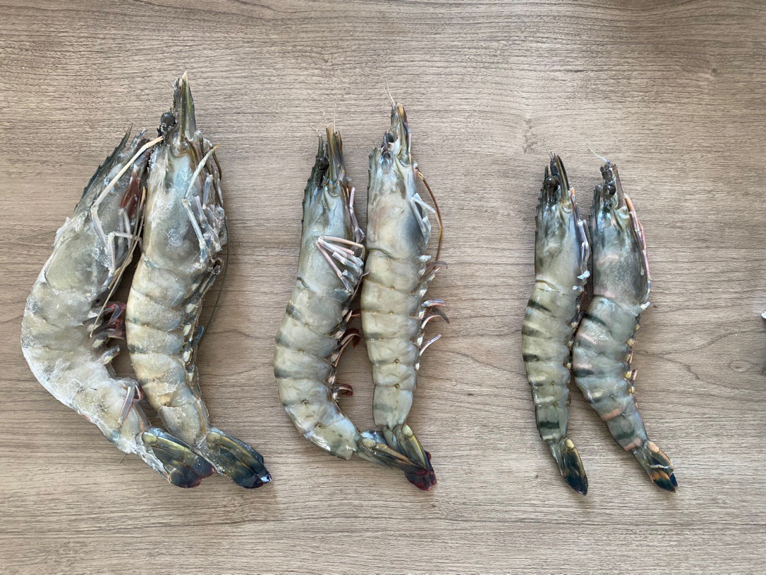 三个规格的黑虎虾个头对比图!