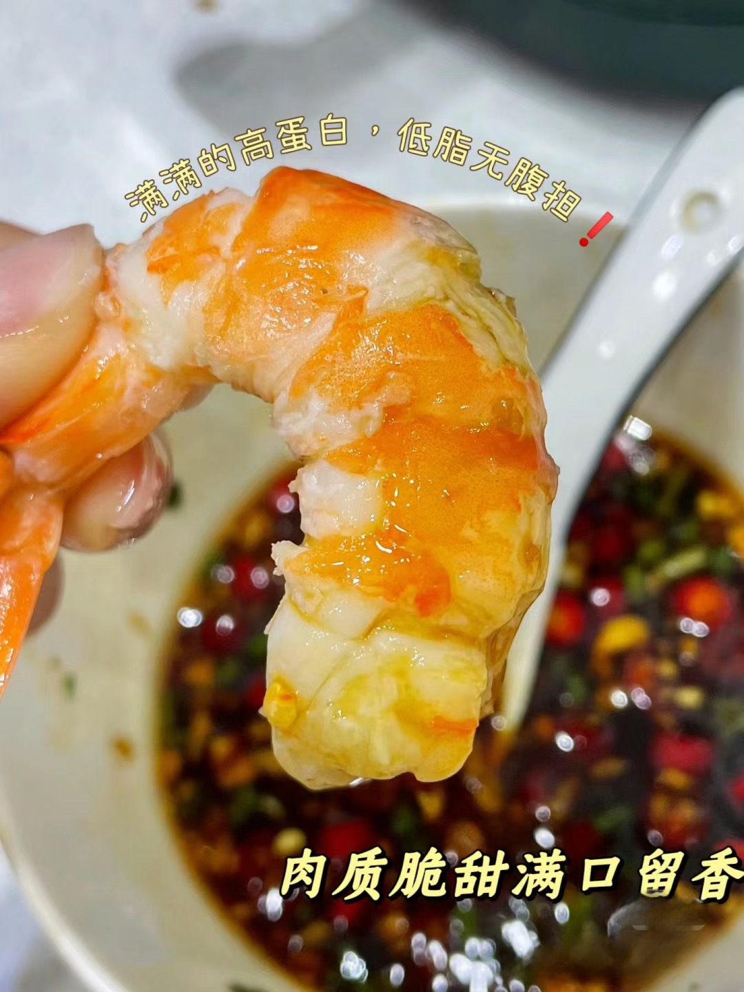 它的肉很厚实,有弹性!而且剥去壳后虾膜很清晰,而且颜色丰富炫丽,主要成分就是虾青素!