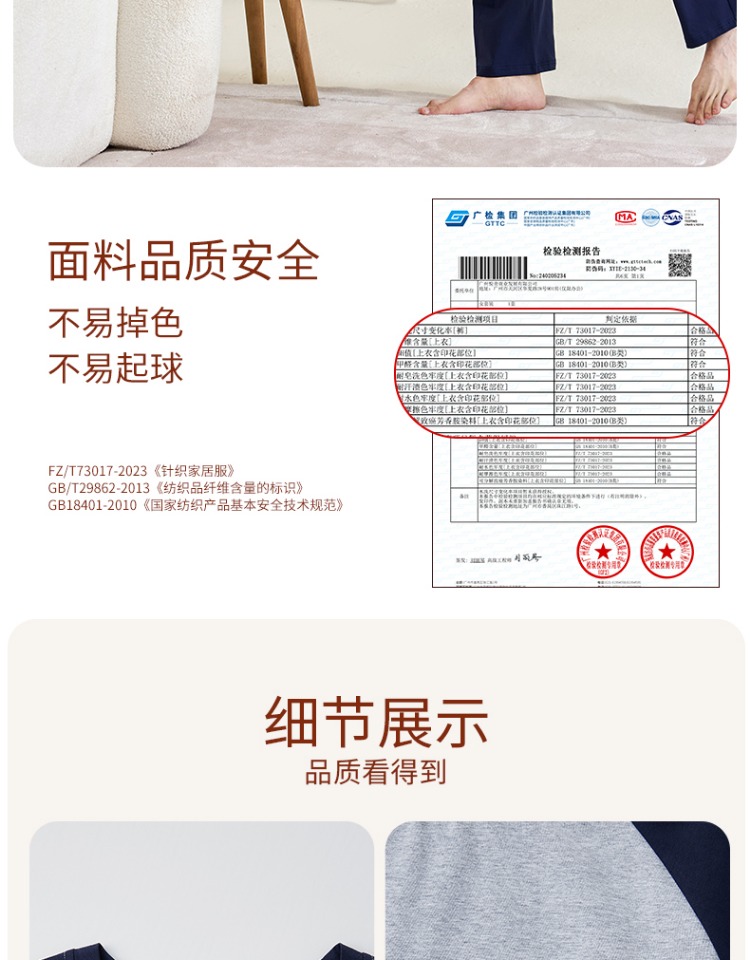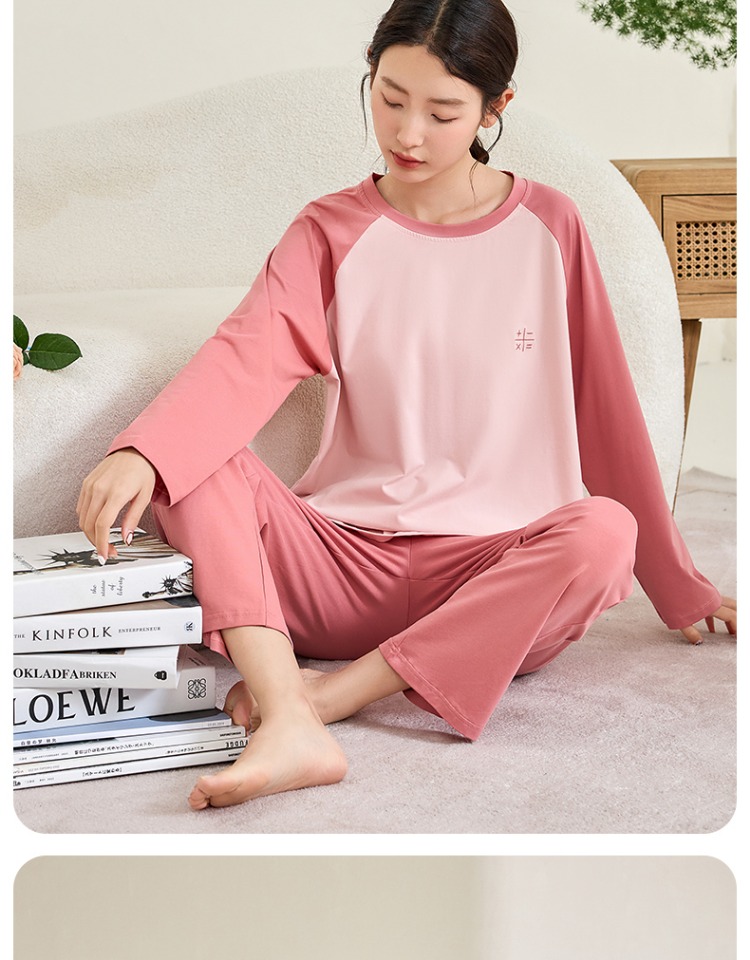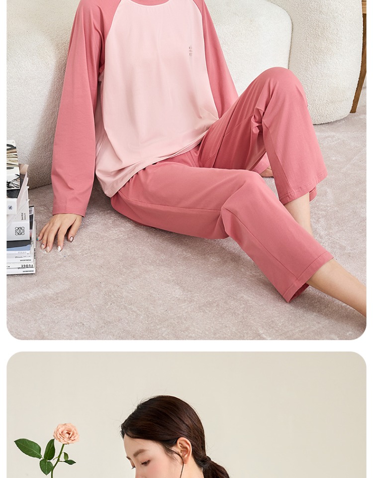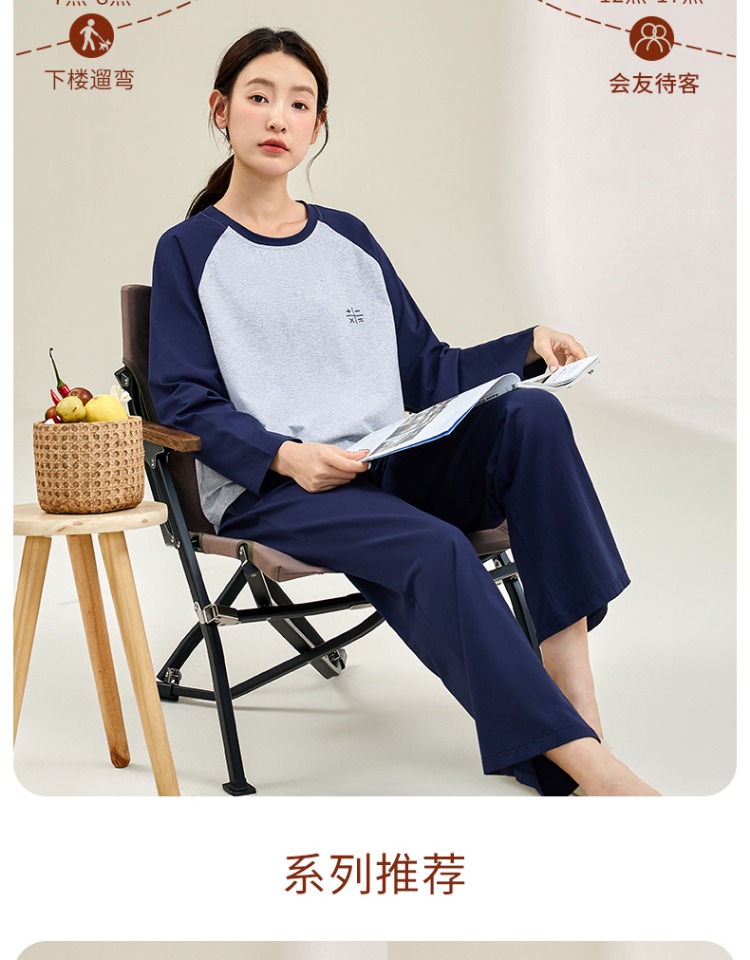 (合作款)内茵带胸垫双沿条撞色家居服套装