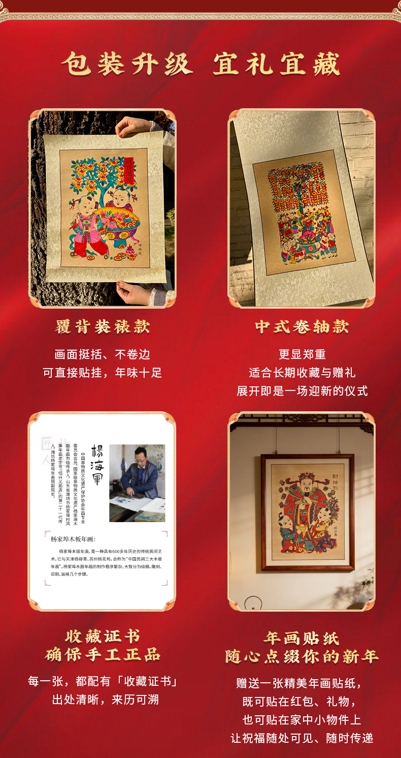 2026非遗手工年画 杨家埠年画 非遗老师亲制 带亲笔签名收藏证书 赠贴纸、礼筒