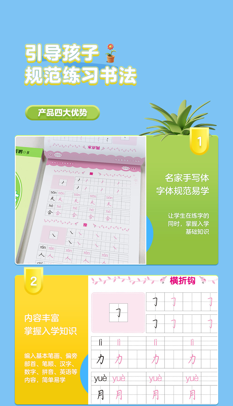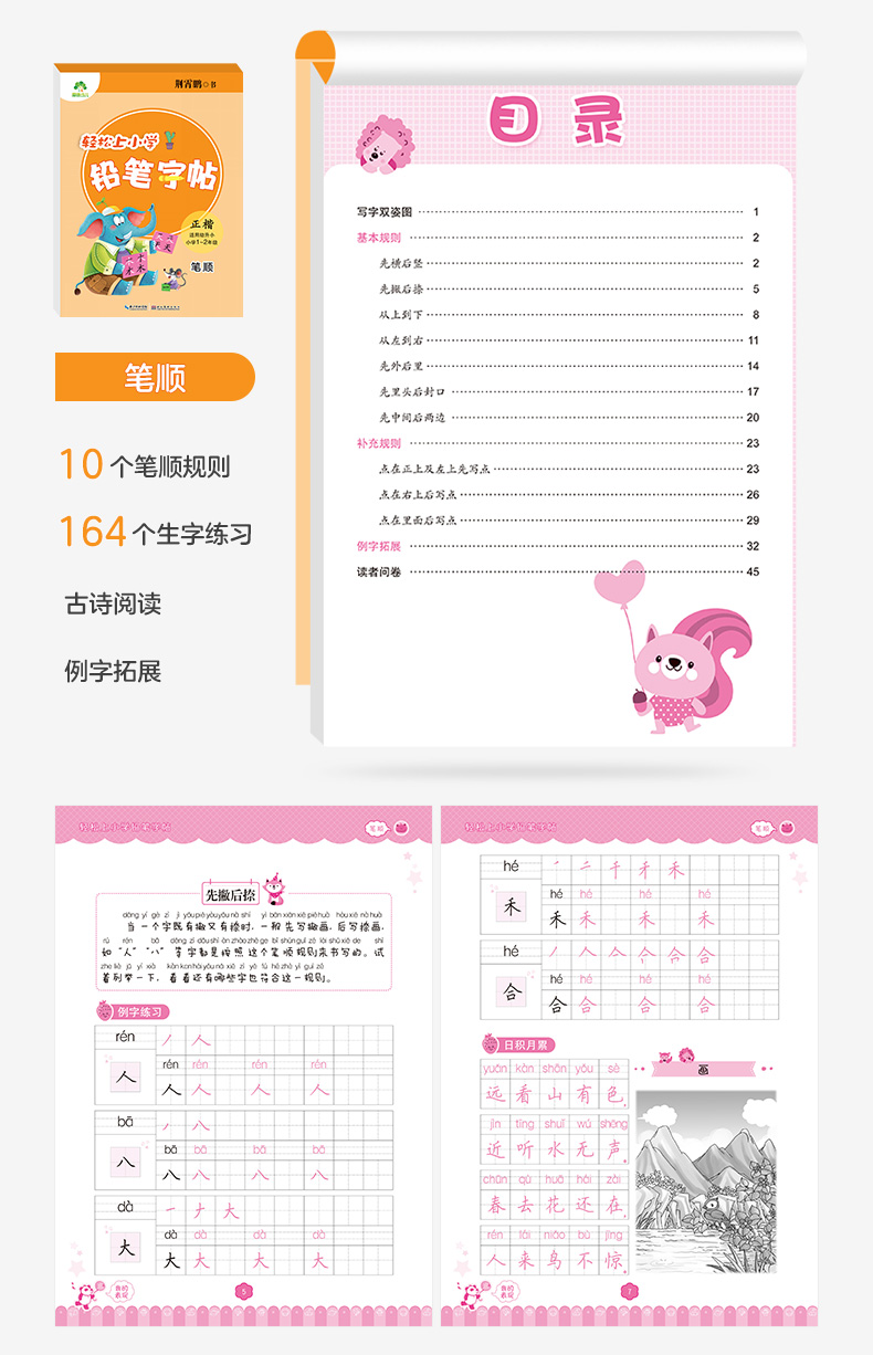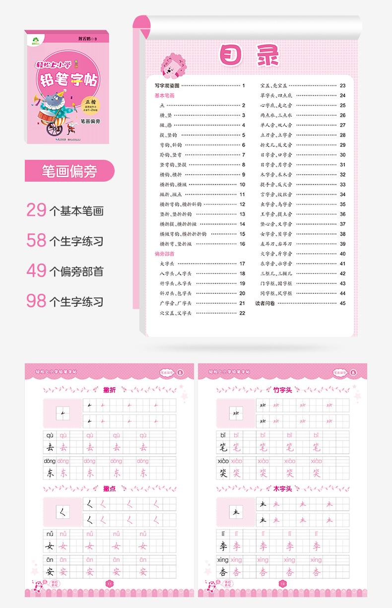 小学生笔顺偏旁汉字数字拼音练字帖轻松上小学全汉字描红儿童字帖练字帖 一年级小学生练字本练字帖