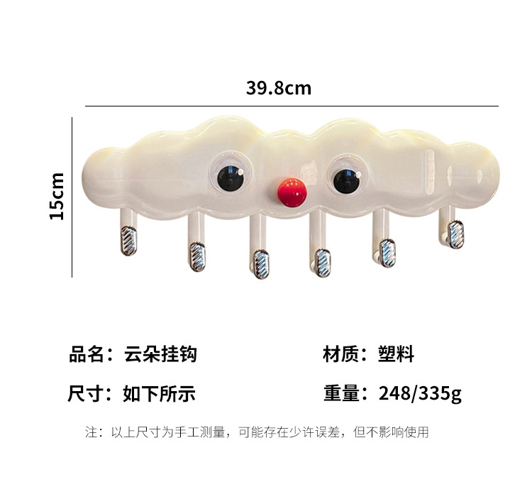 【可爱云朵挂钩】学生宿舍衣柜包包挂件钥匙扣门后收纳可爱云朵挂钩免打孔壁挂粘钩。ry 商品图6