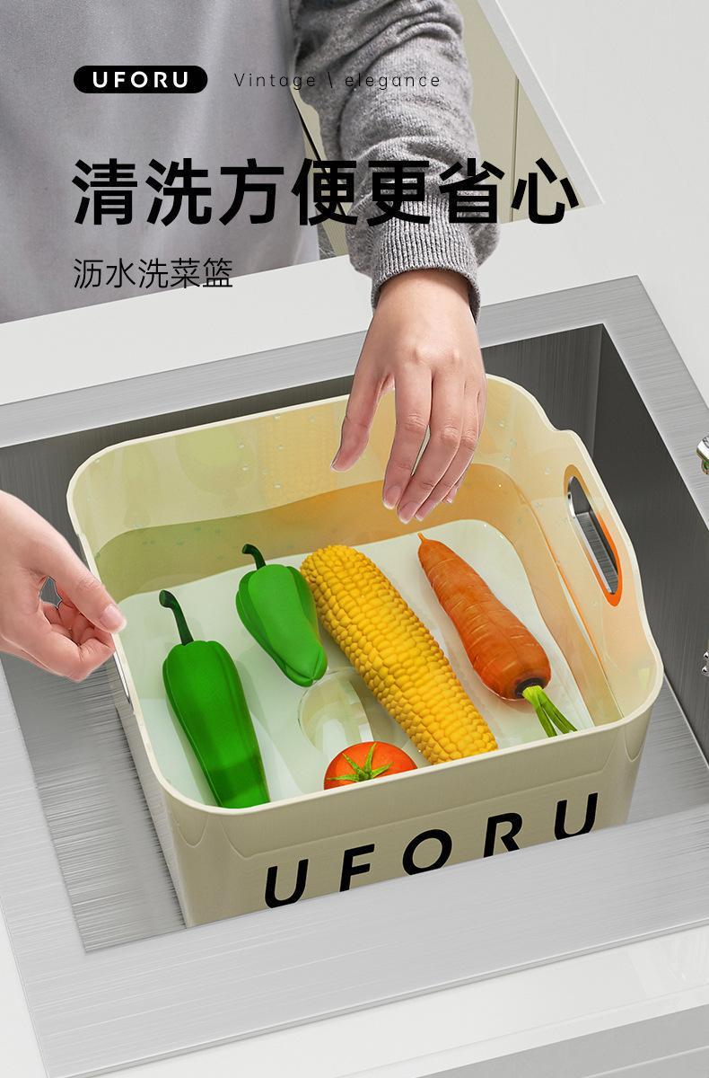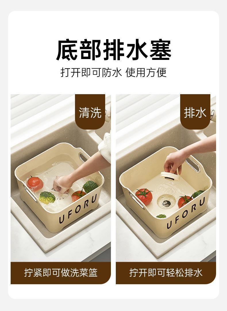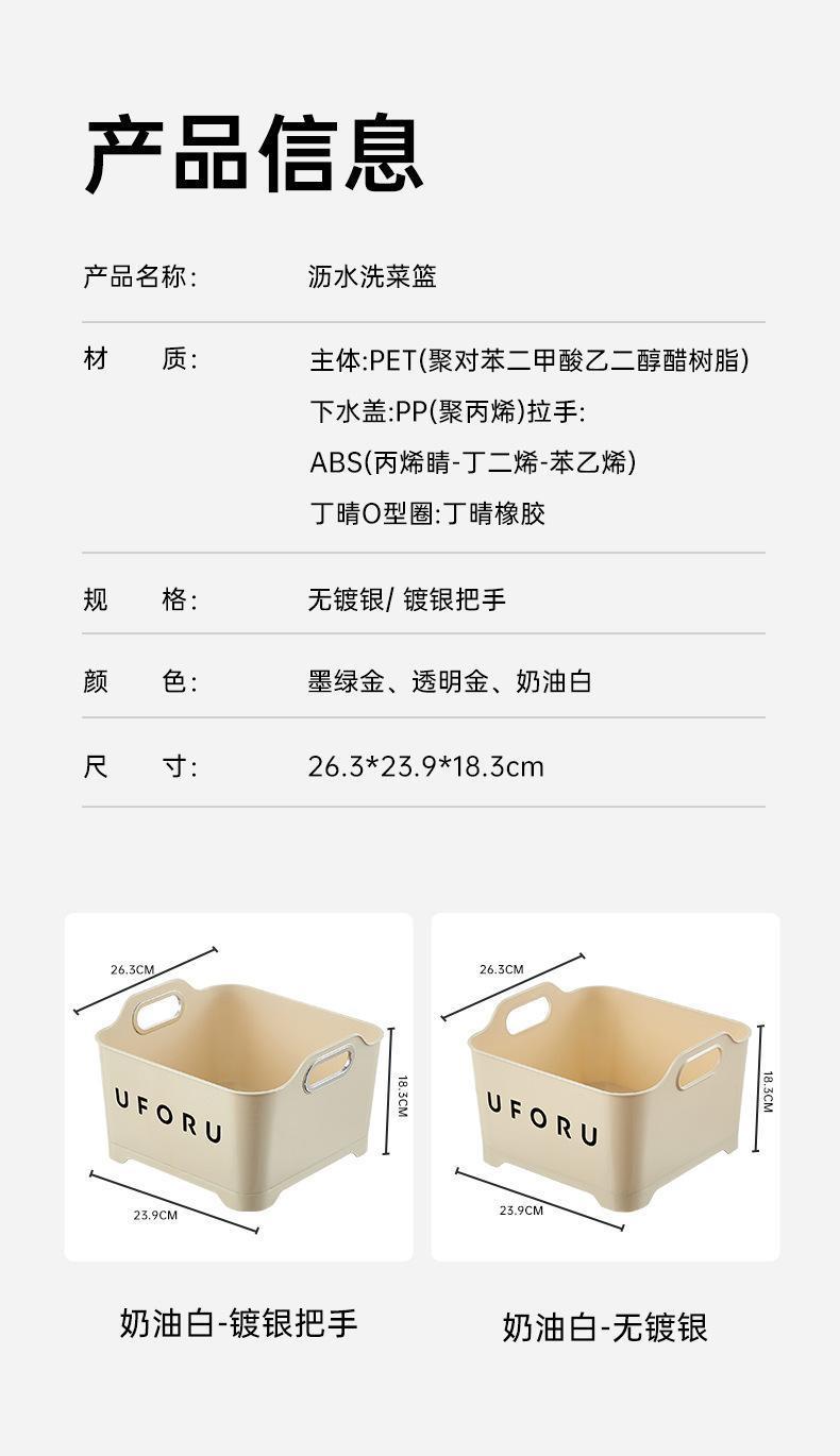 奶油风厨房沥水篮洗菜篮家用客厅清洗水果篮多功能收纳轻奢带提手