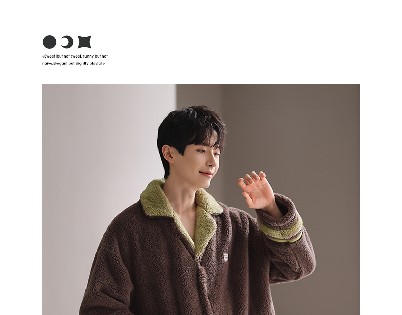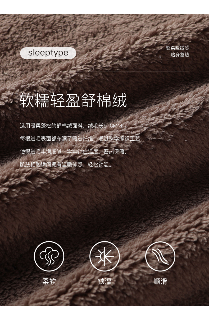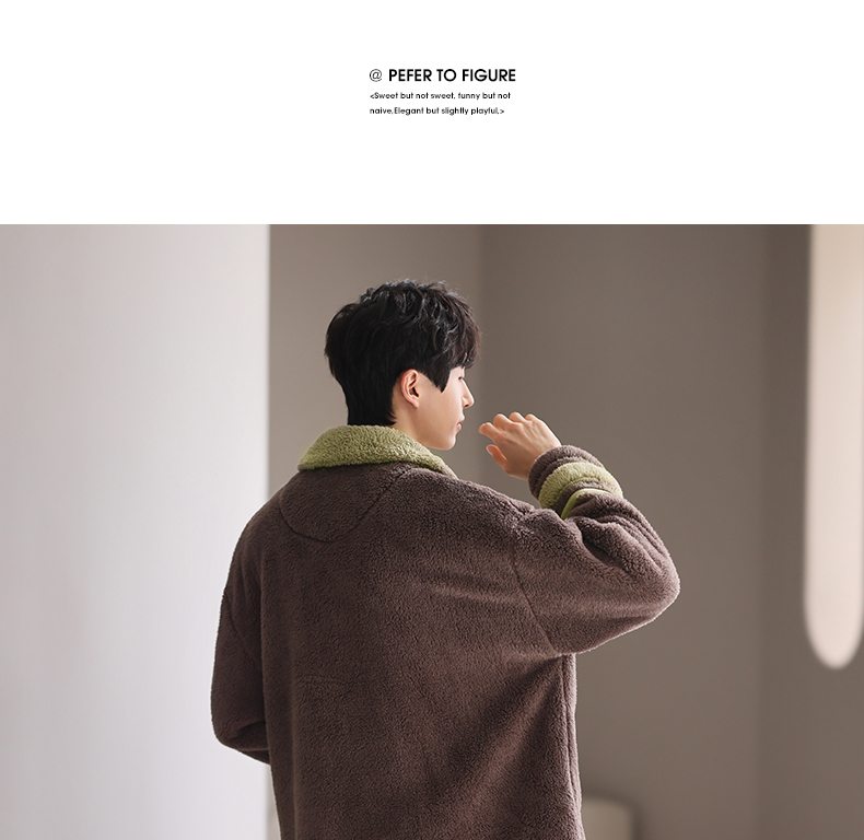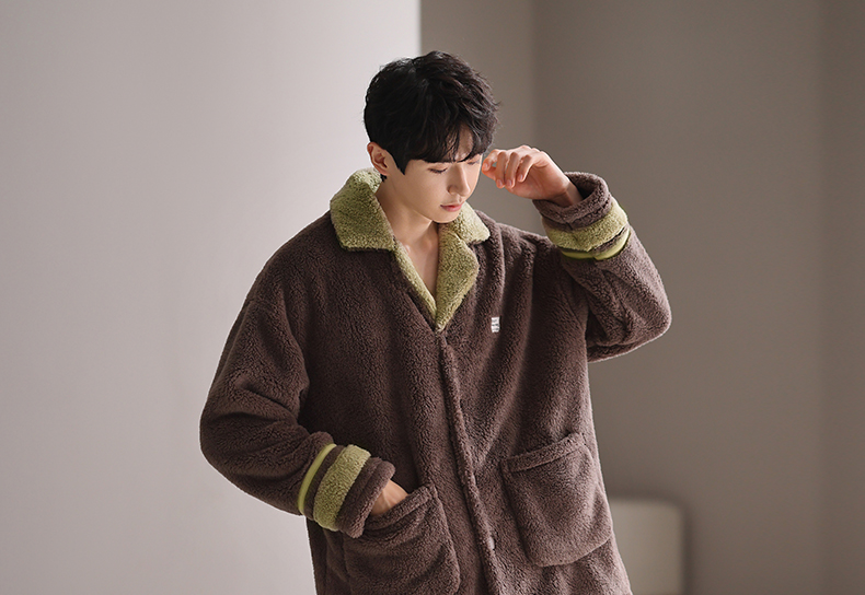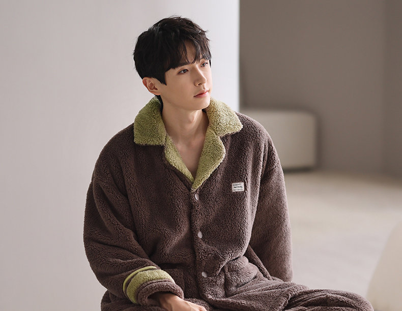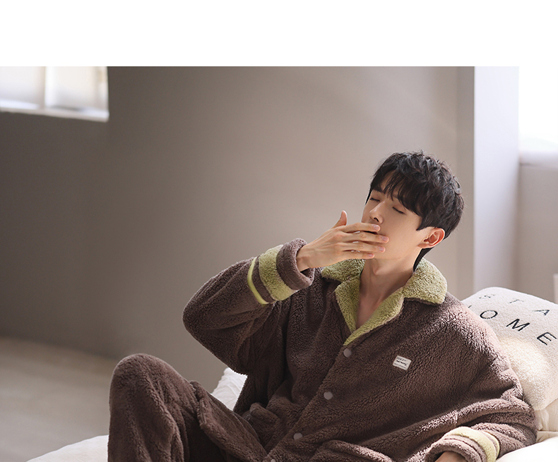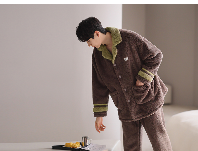 可人儿冬季男士保暖舒棉绒睡衣秋冬休闲翻领男款加厚珊瑚绒家居服