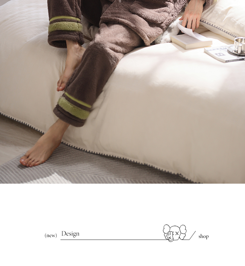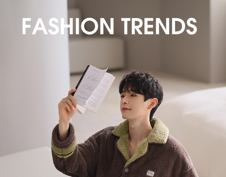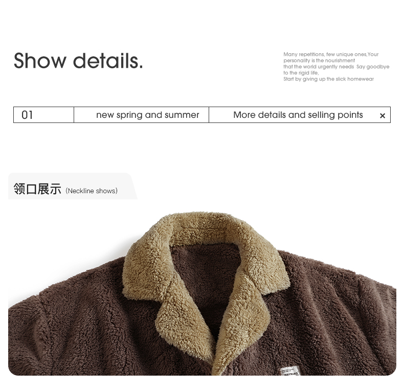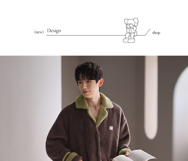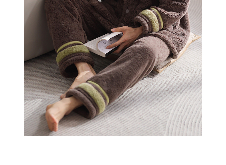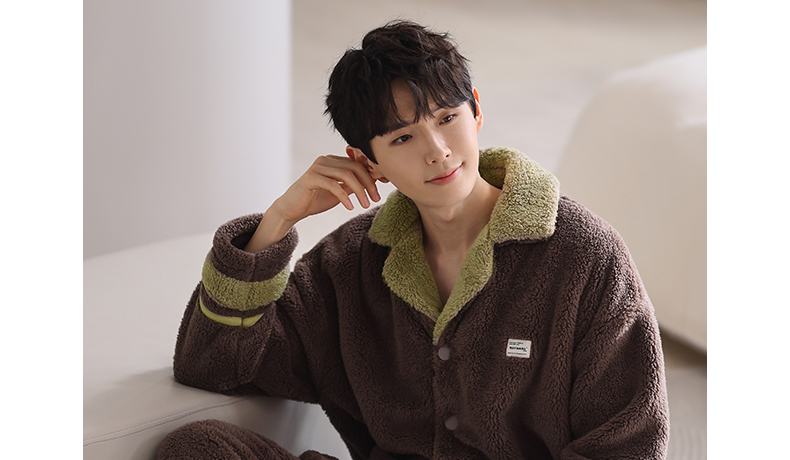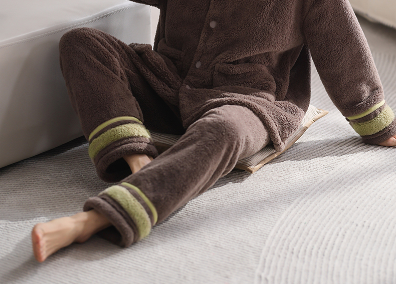 可人儿冬季男士保暖舒棉绒睡衣秋冬休闲翻领男款加厚珊瑚绒家居服