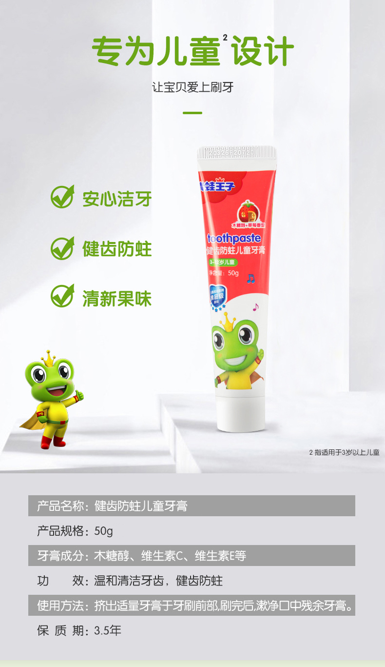 50g青蛙王子健齿防蛀儿童牙膏(草莓/香橙)