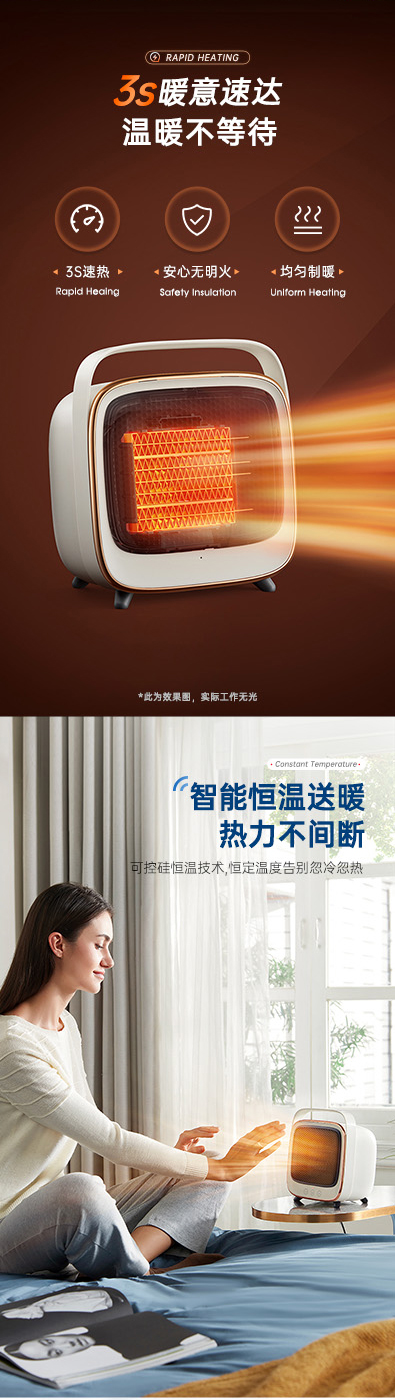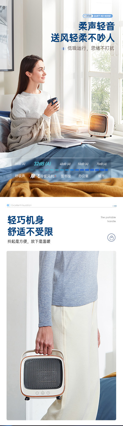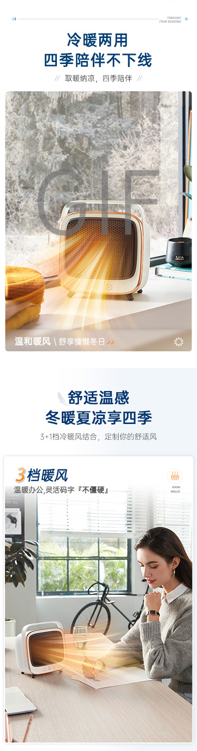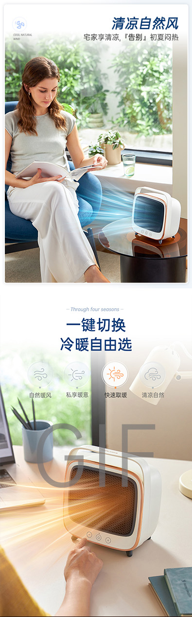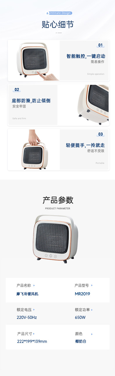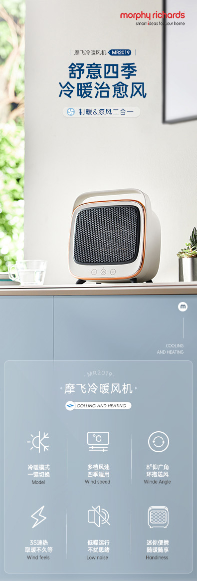 【制暖/凉风 二合一】摩飞冷暖风机MR2019 冷暖模式一键切换 3S速热 4档可调 8°仰广角送风 智能触控 轻便提手