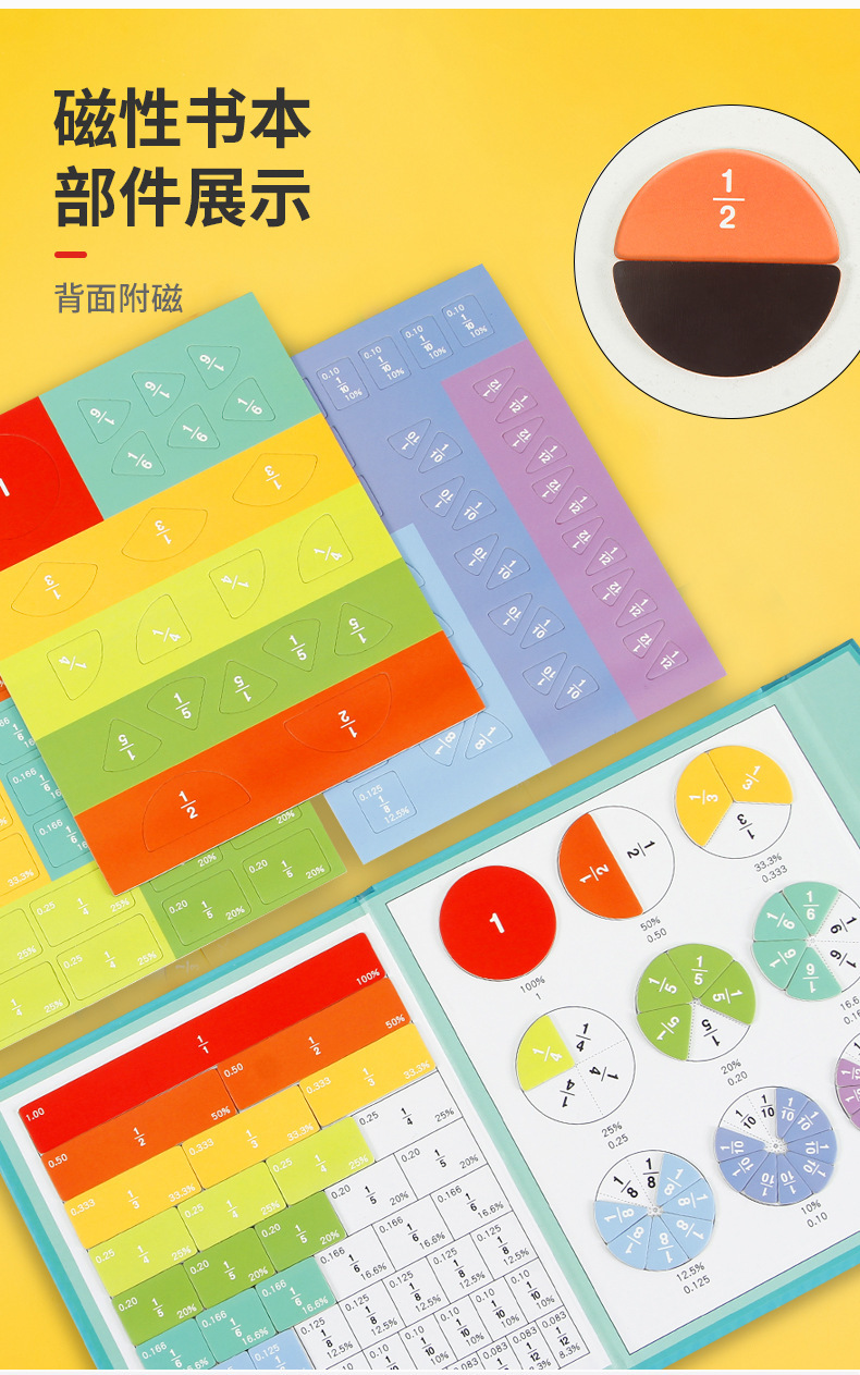 开学季福利!【通过实物操作 分数一学就懂】磁性分数盘演示器分子分母认知加减运算三年级小学数学分数教具