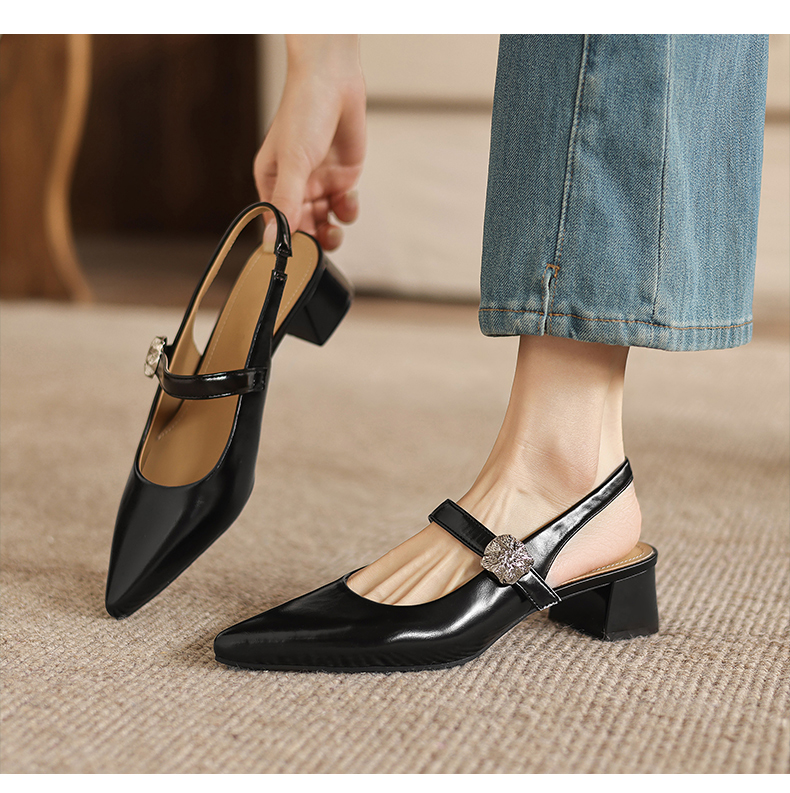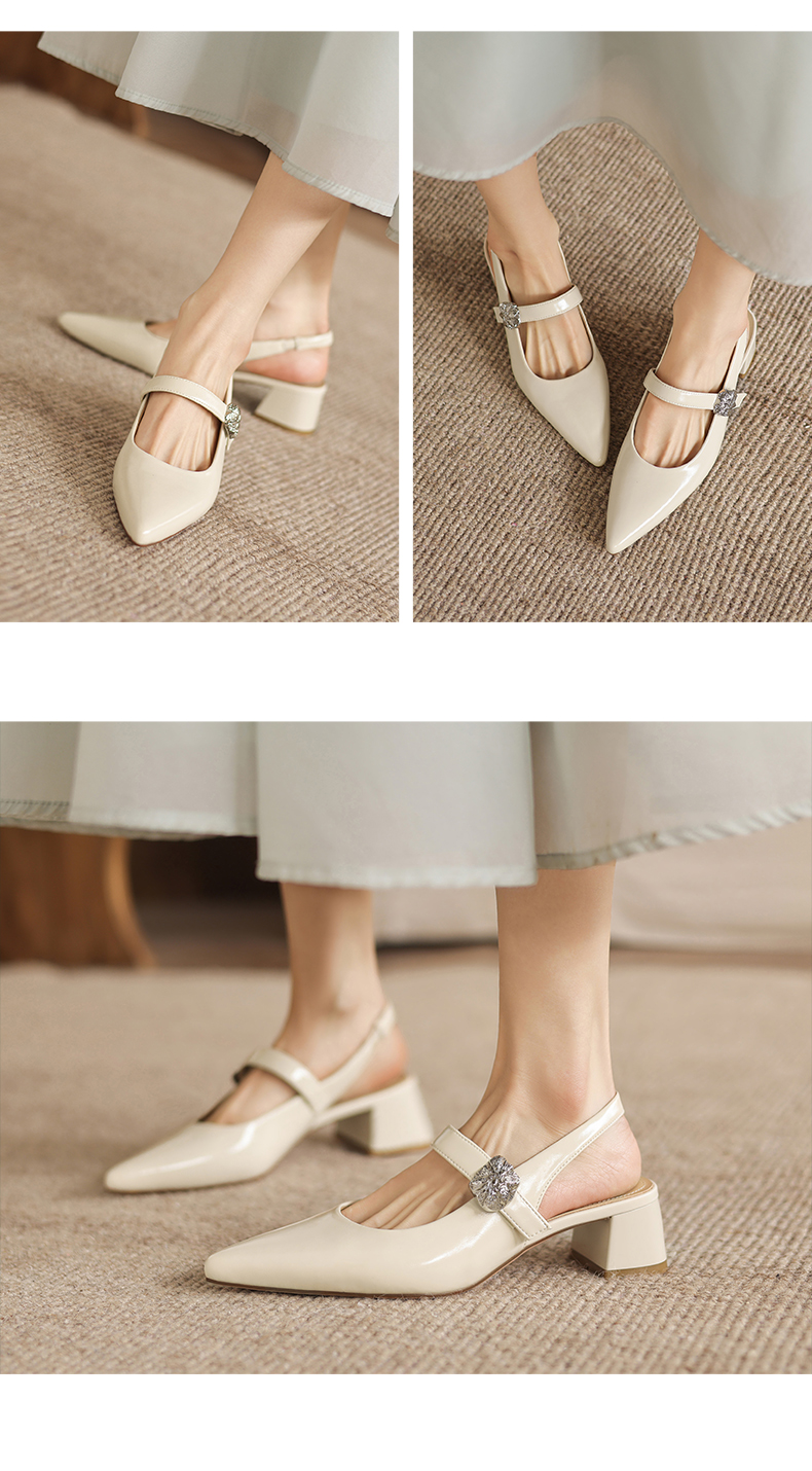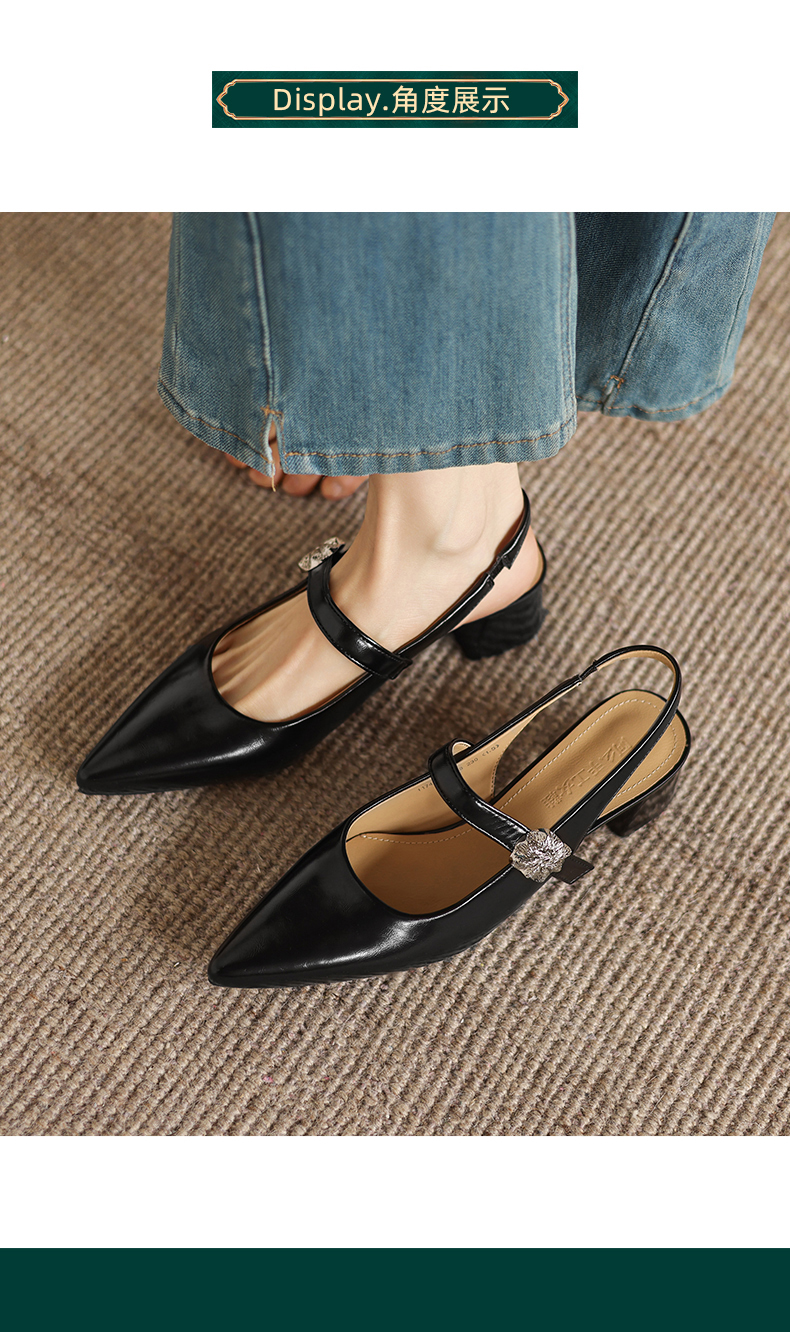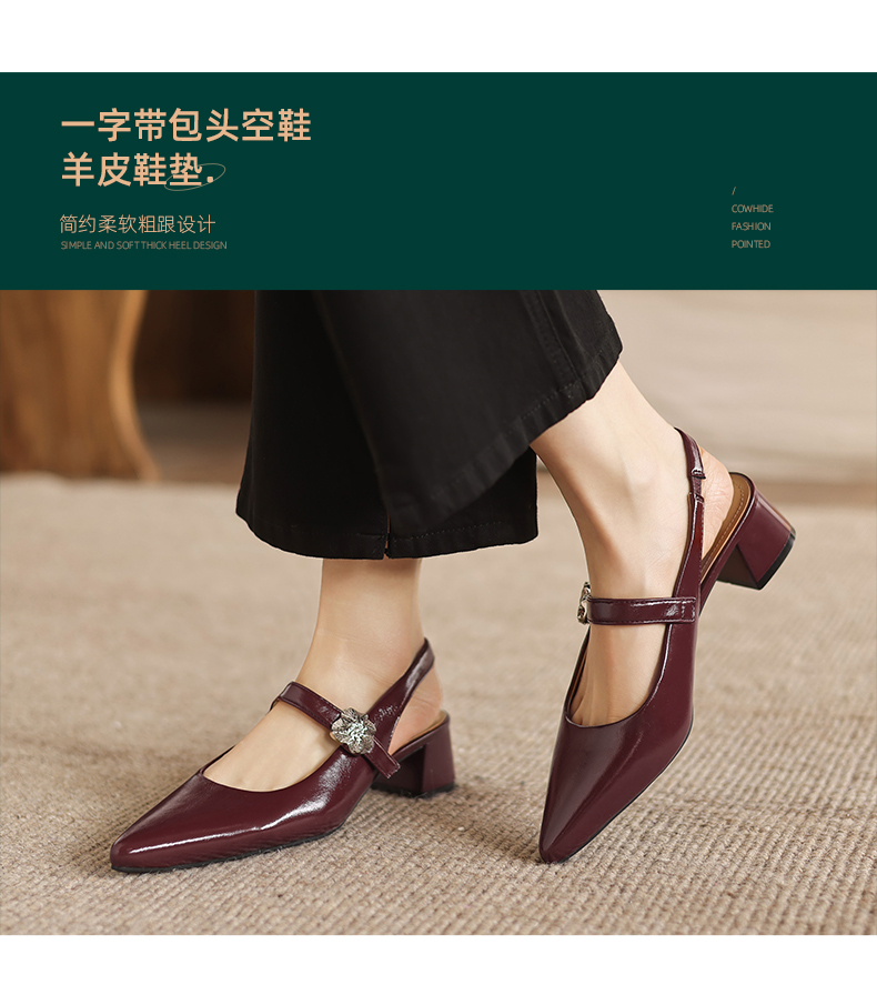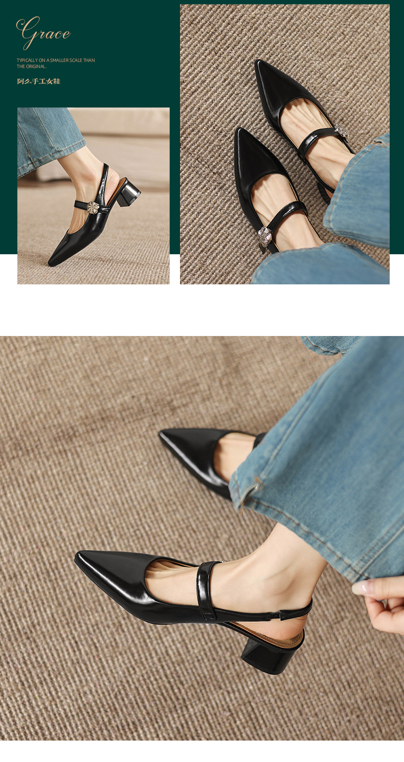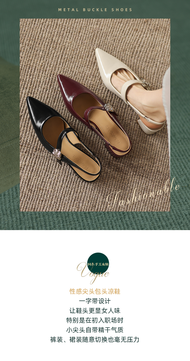 阿么手工女鞋气质通勤简约尖头玛丽珍鞋2026新款包头凉鞋女款4CM