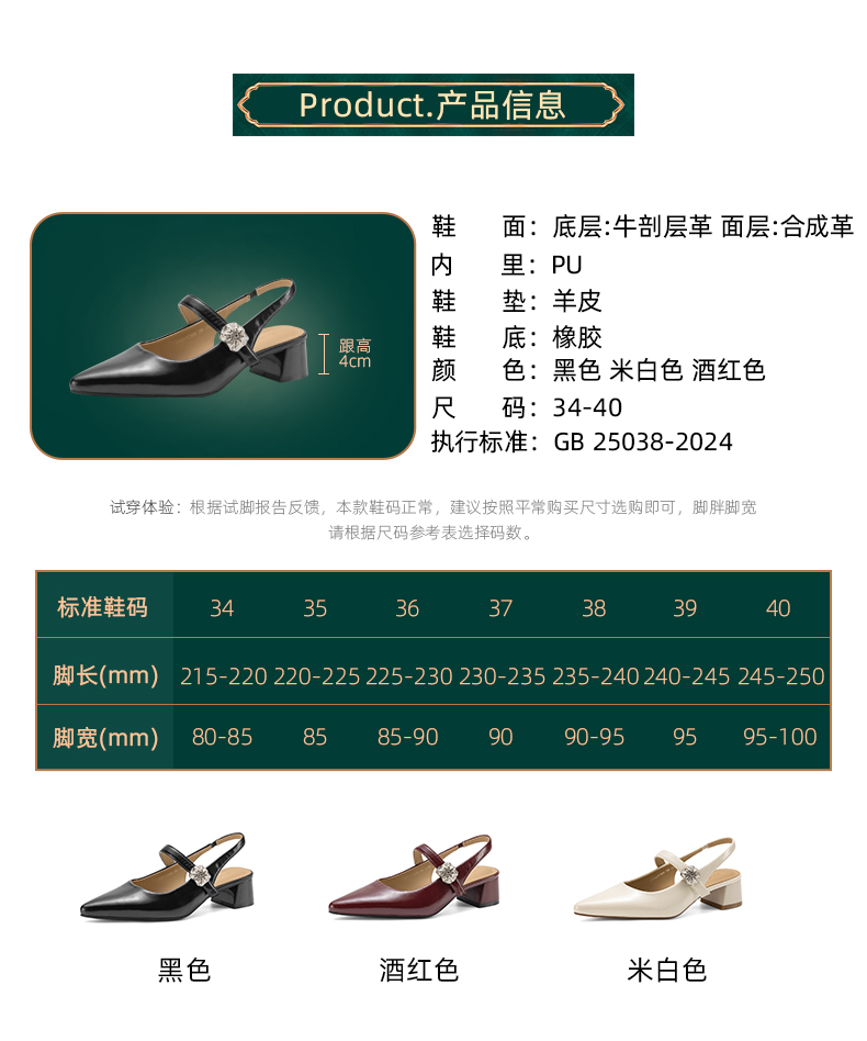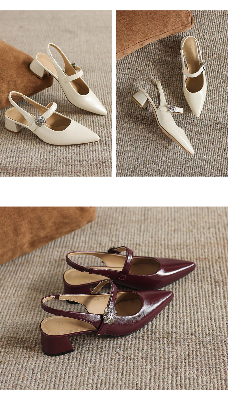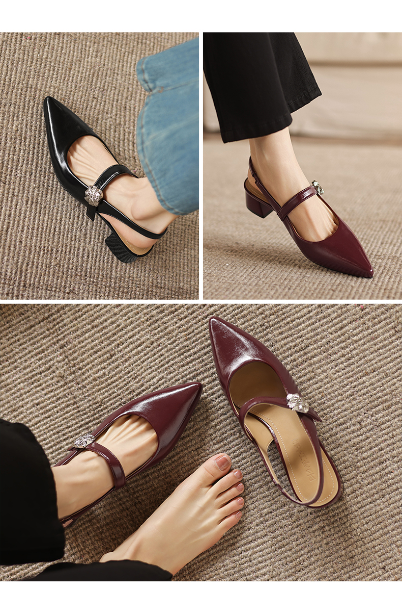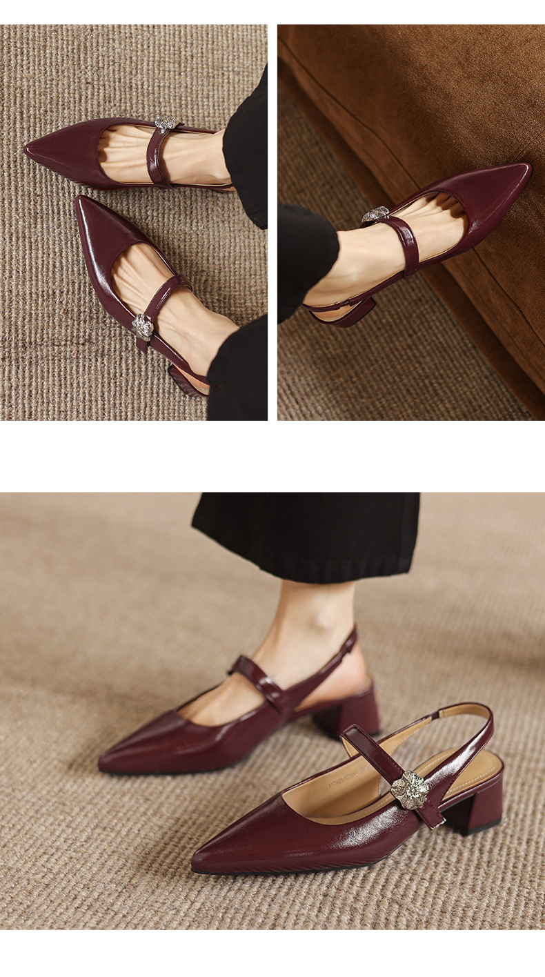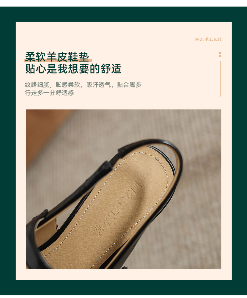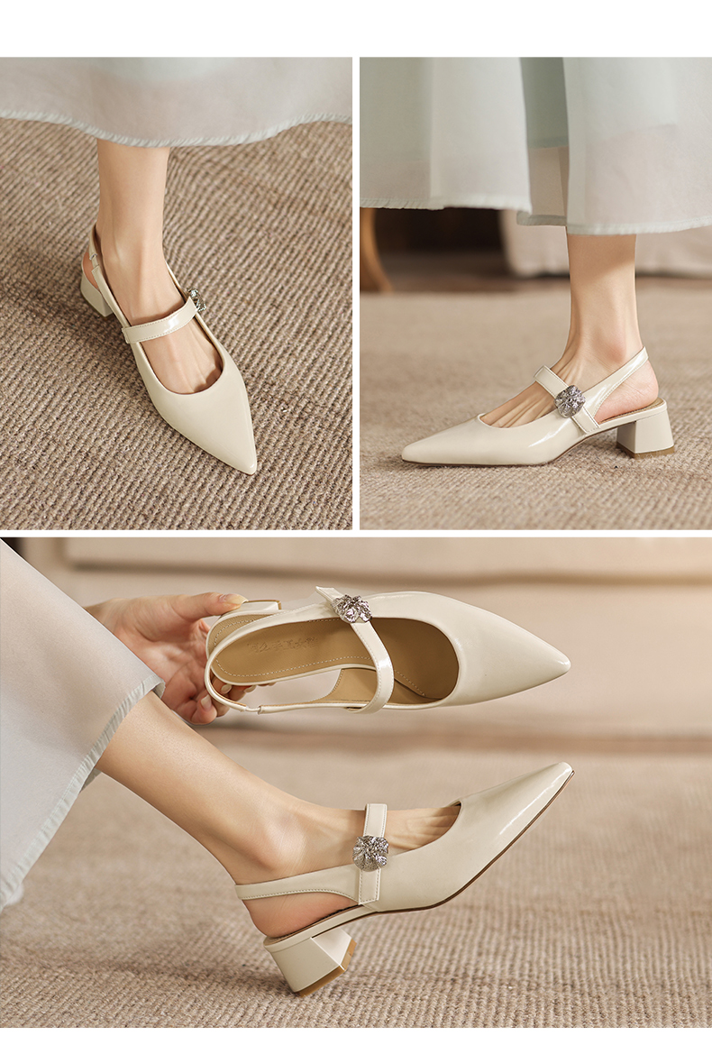 阿么手工女鞋气质通勤简约尖头玛丽珍鞋2026新款包头凉鞋女款4CM