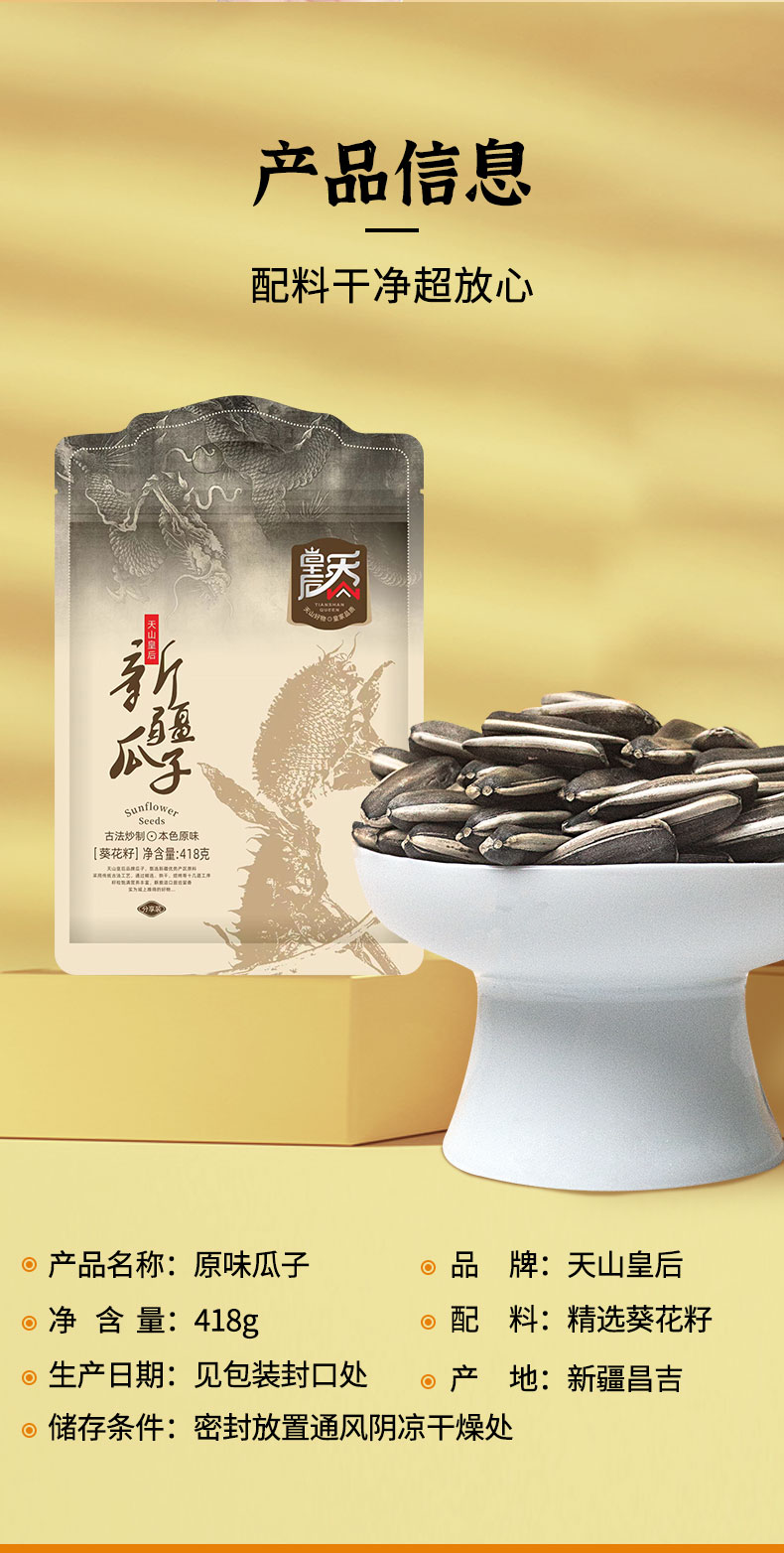 【新疆军垦】【天山皇后】新疆原味瓜子 418g*2袋