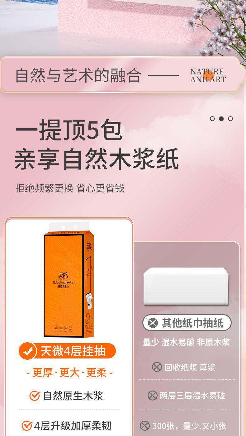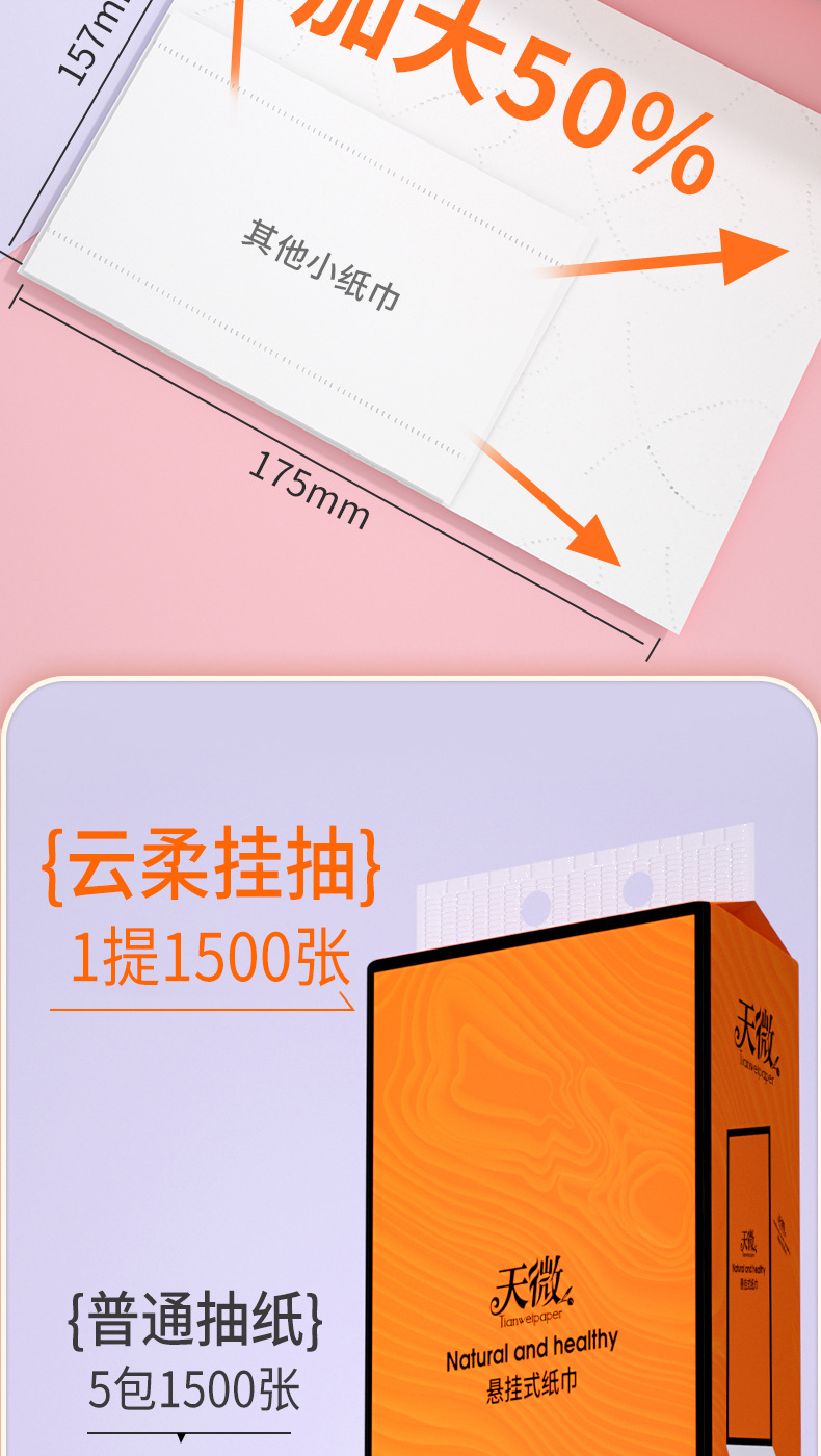 「加量1500张!送挂钩」天微挂式抽纸居家日用厨房用品卫生间卫生纸纸巾擦手纸面巾纸
