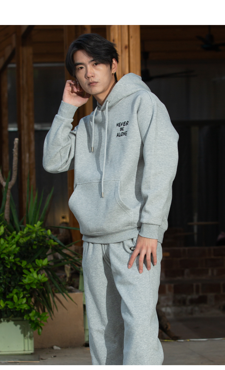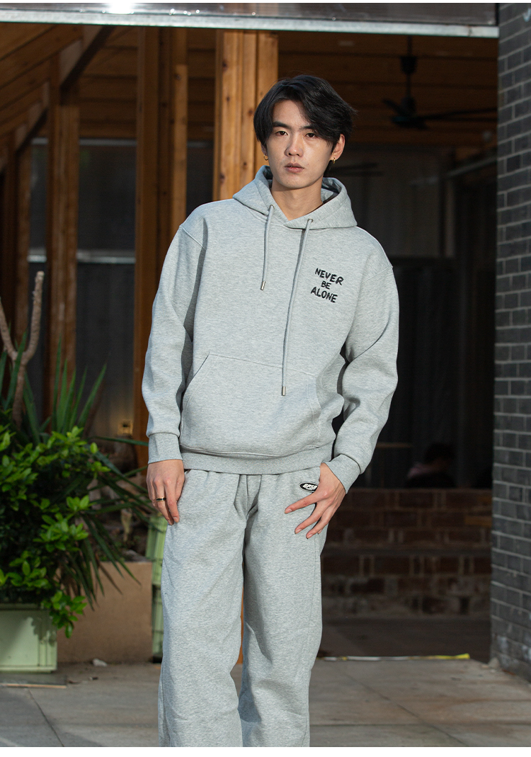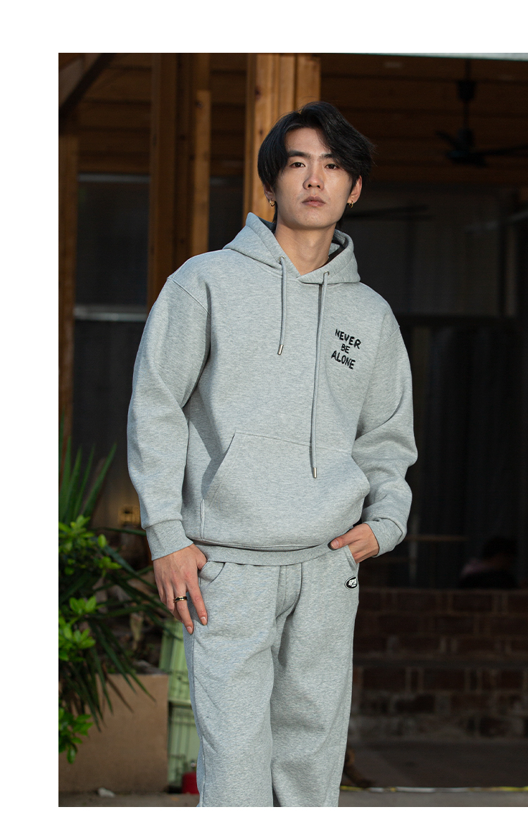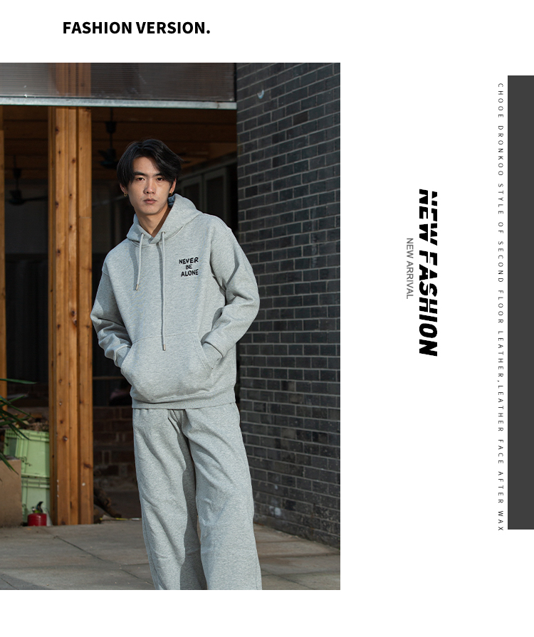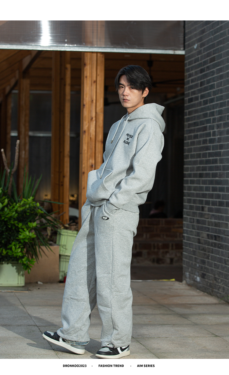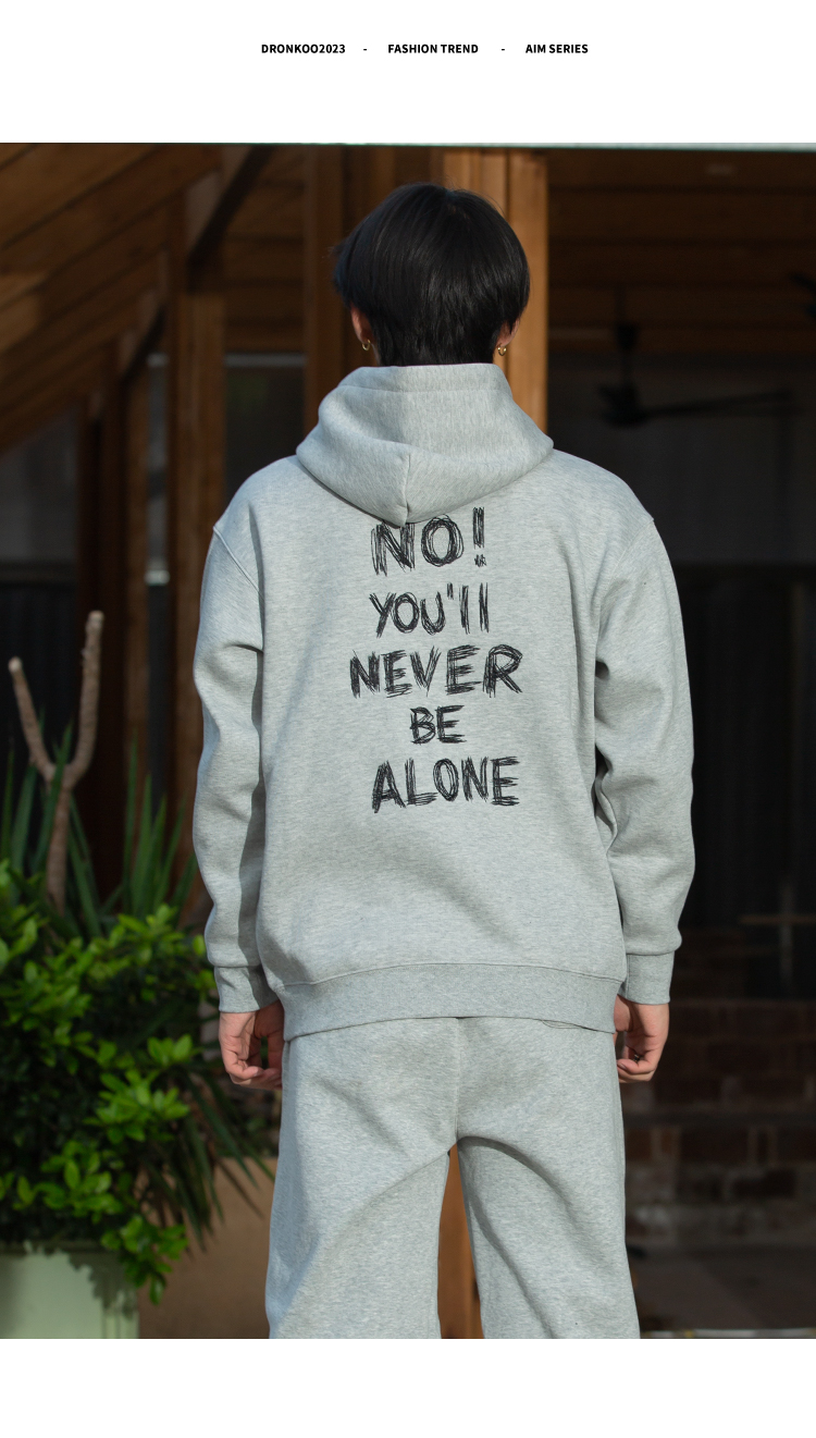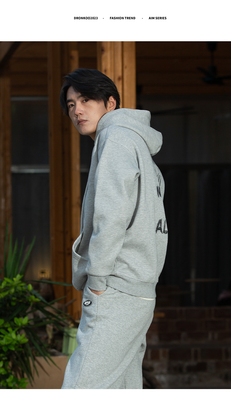DRONKOO 2025 连帽左胸后幅描线刺绣字母复合绒微阔厚卫衣