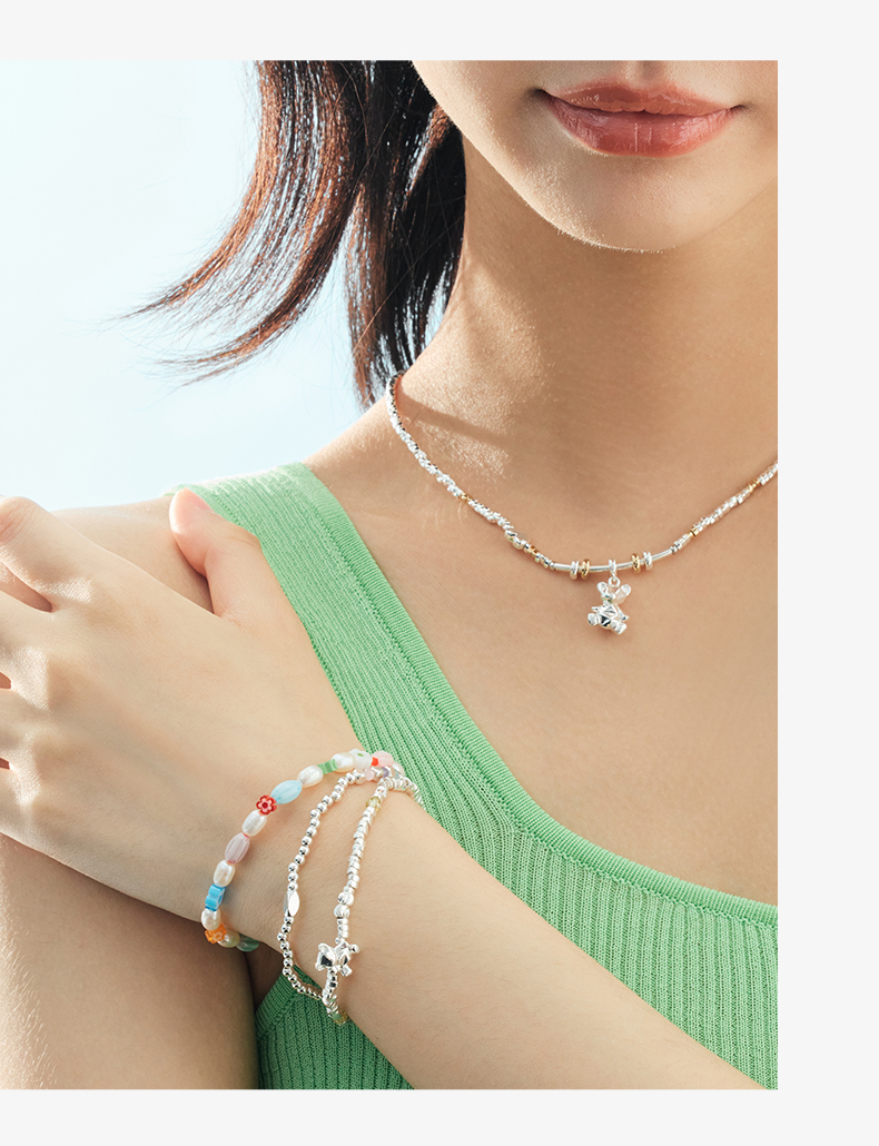 ZEGL设计师小熊系列碎银子淡水珍珠手链女生轻奢小众精致手饰