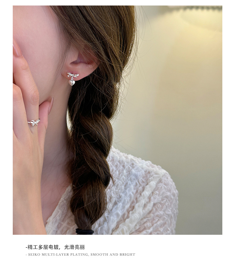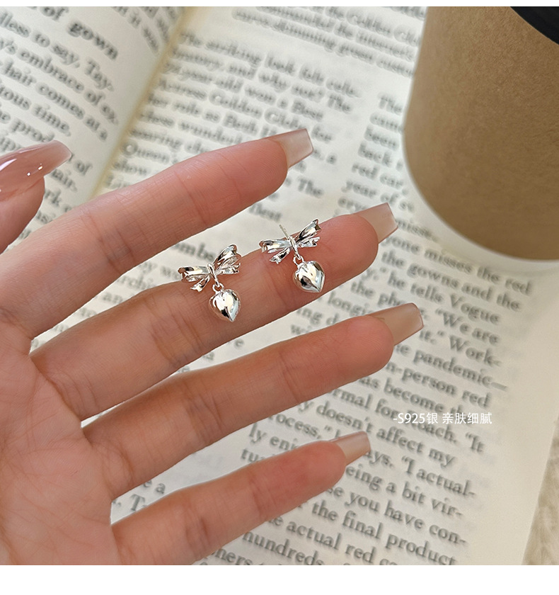 【爱已入心】S925银蝴蝶结爱心耳钉【YXS-E4265】