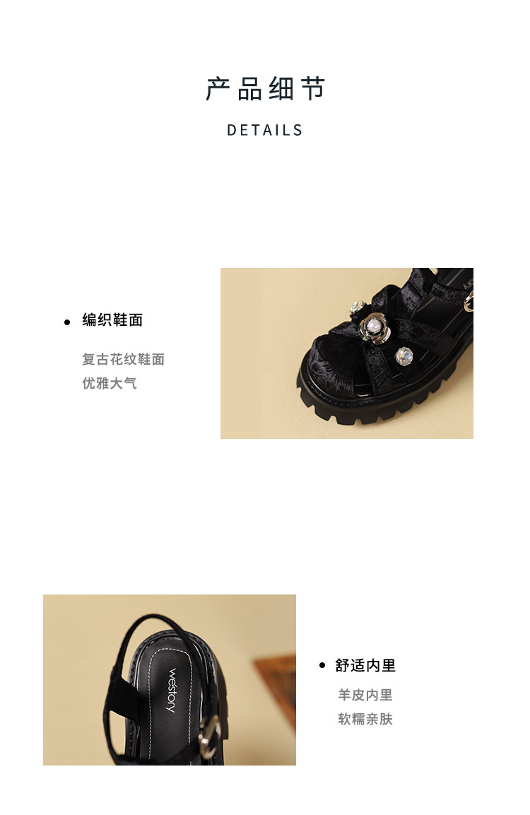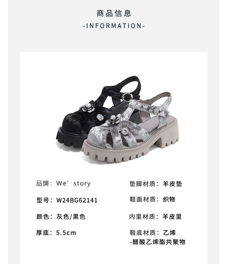 westory夏季新款法式优雅高跟凉鞋露趾粗跟鞋凉鞋W24BG62141