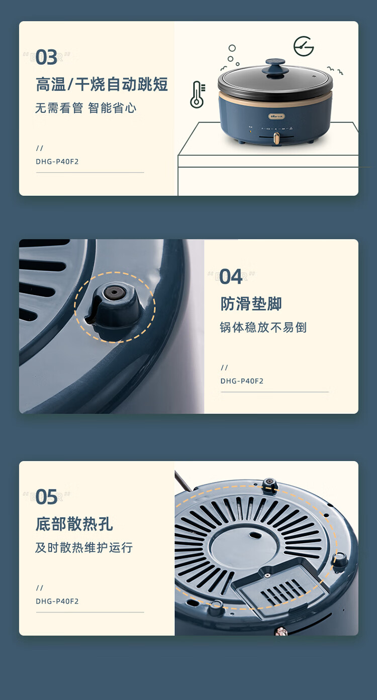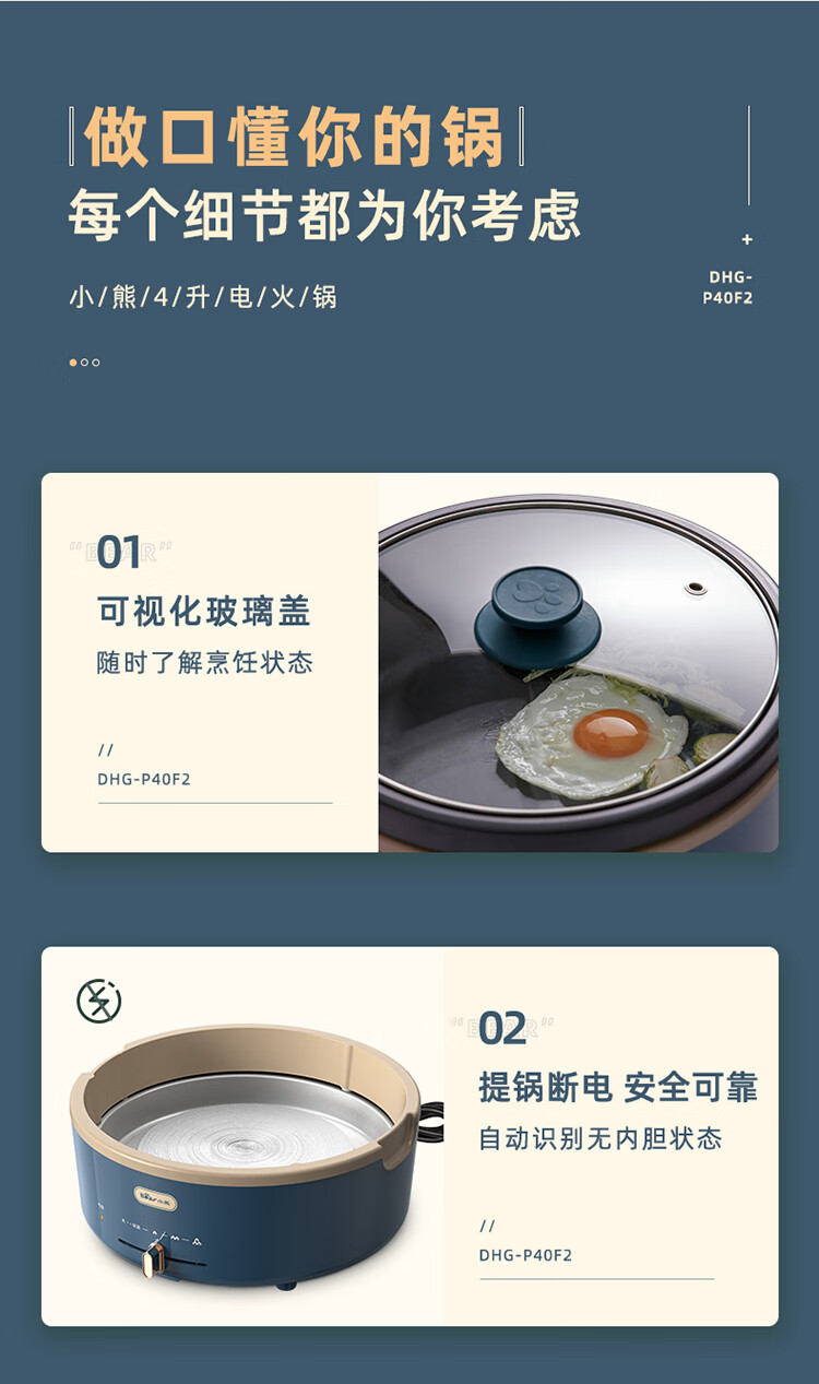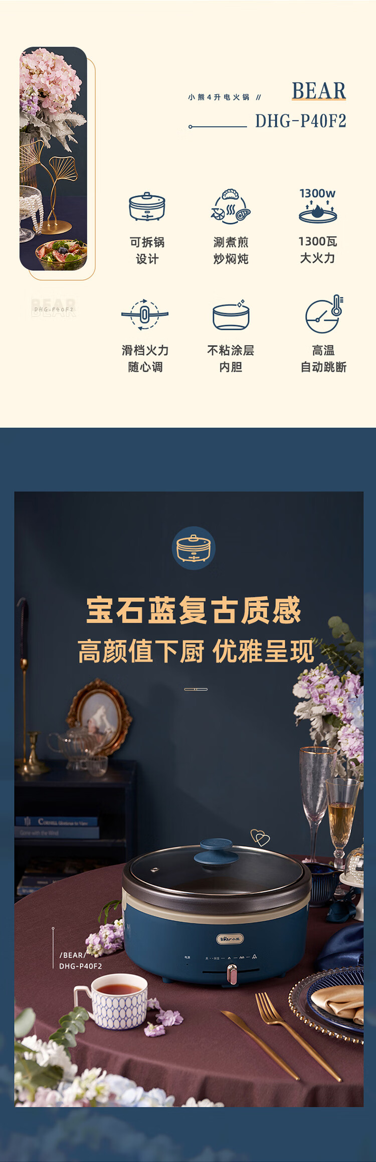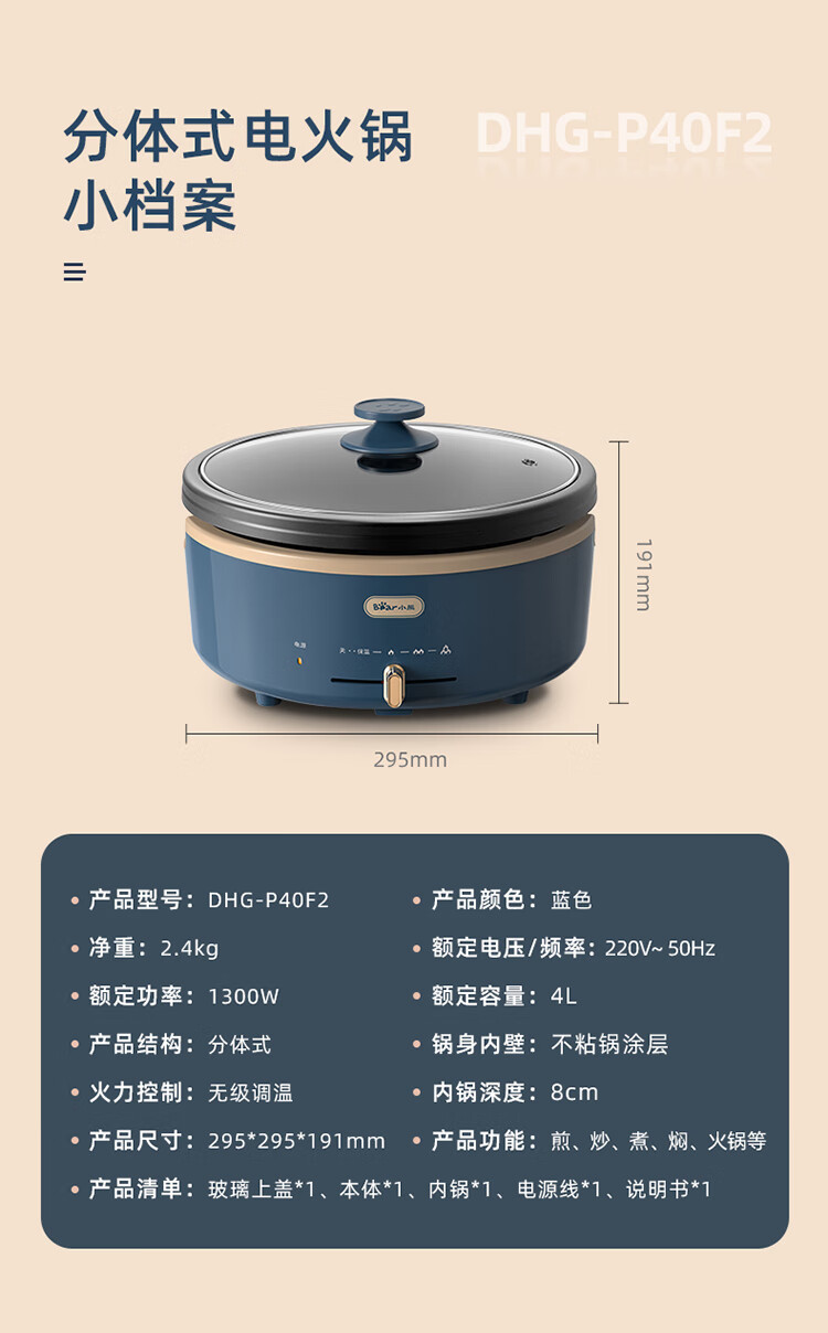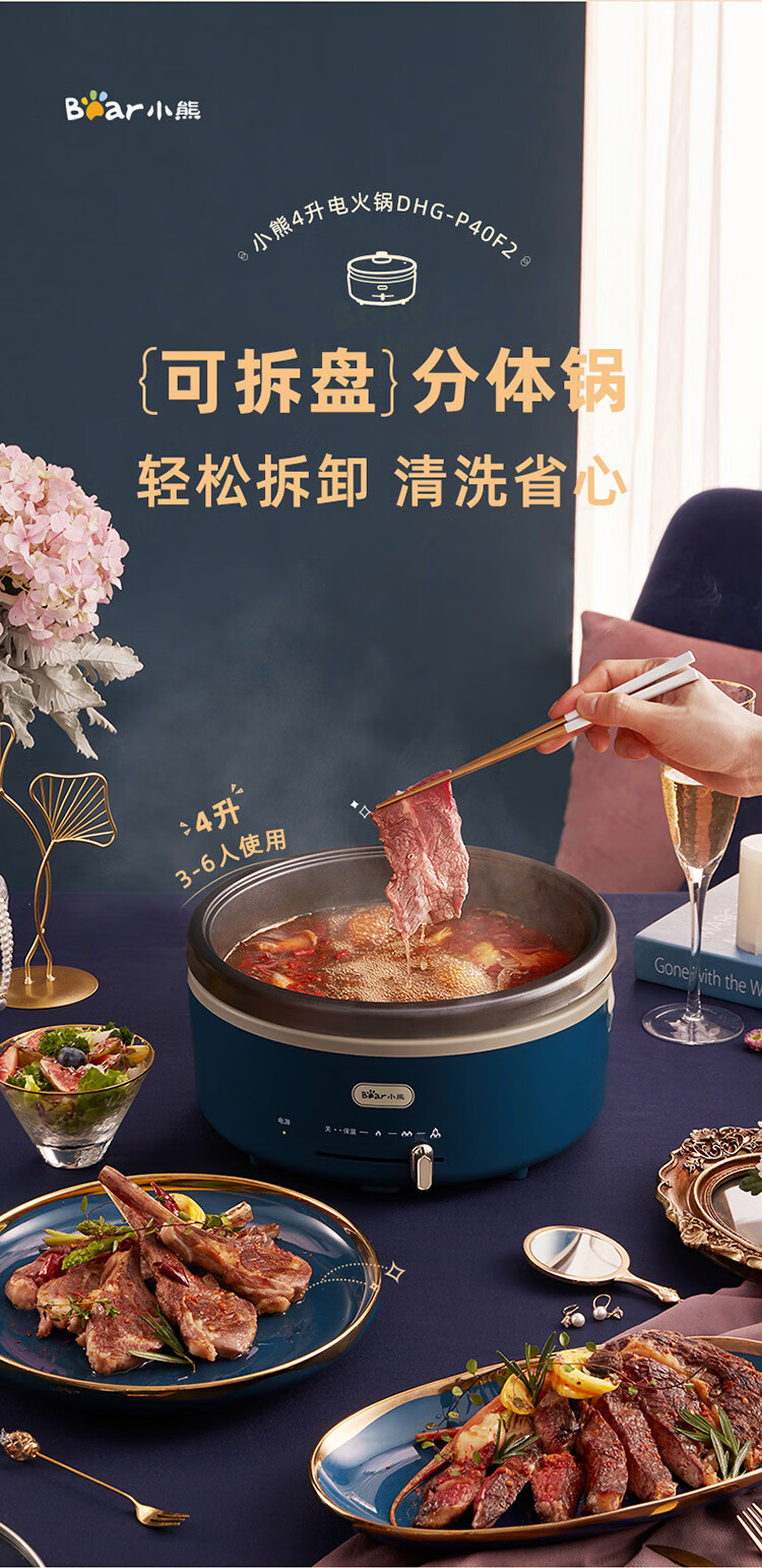 小熊 分体电火锅 4L 蓝色 DHG-P40F2-1300W