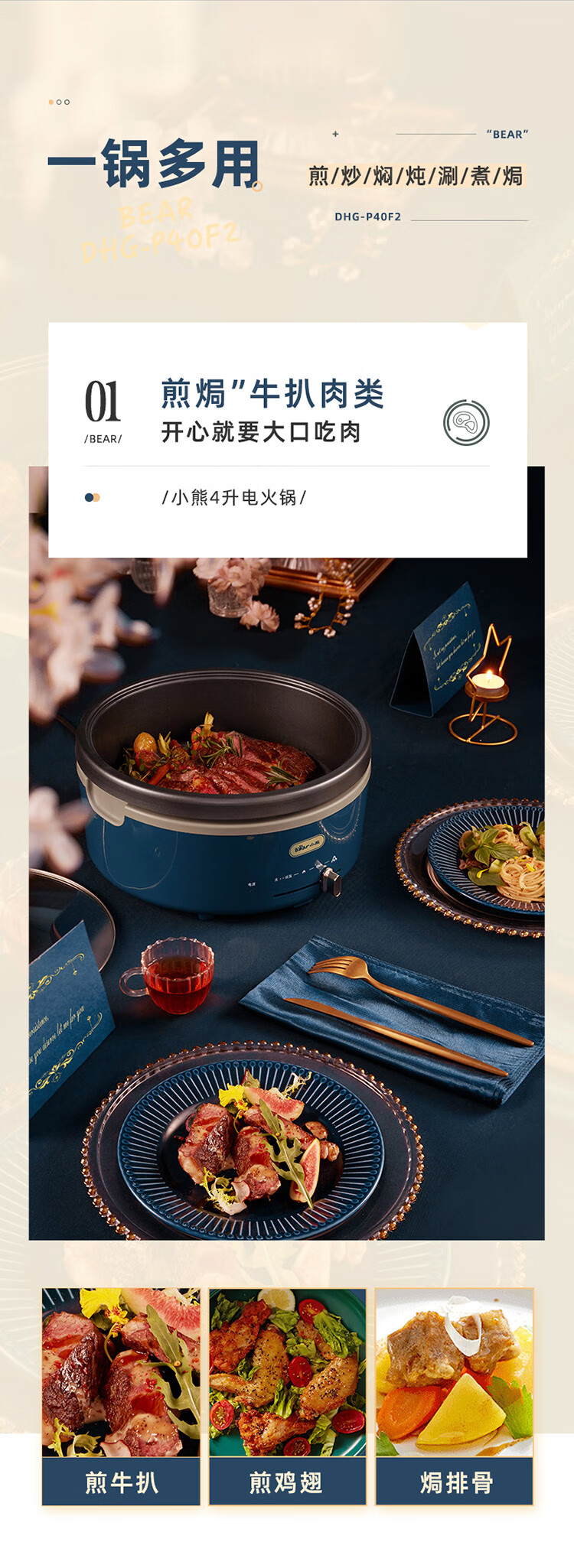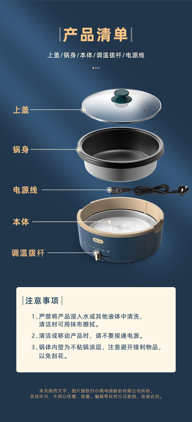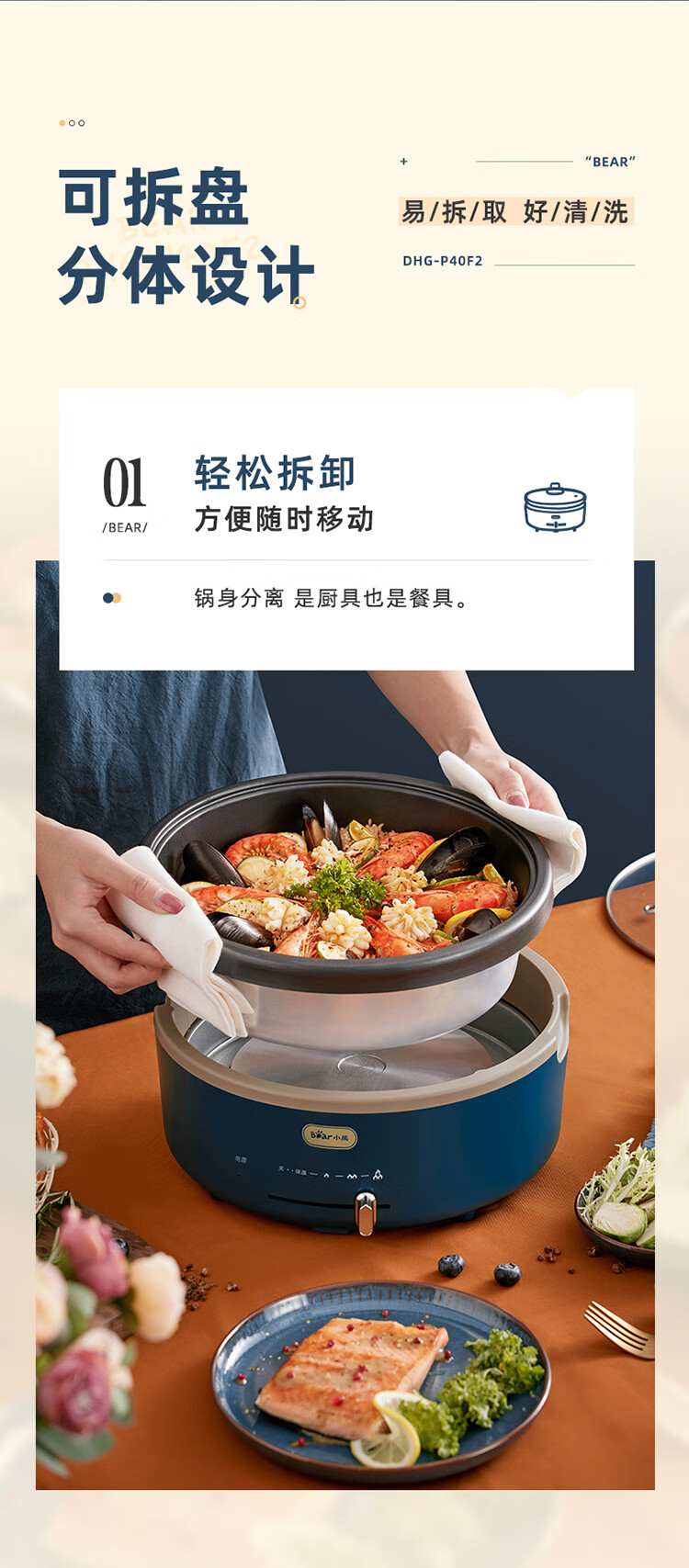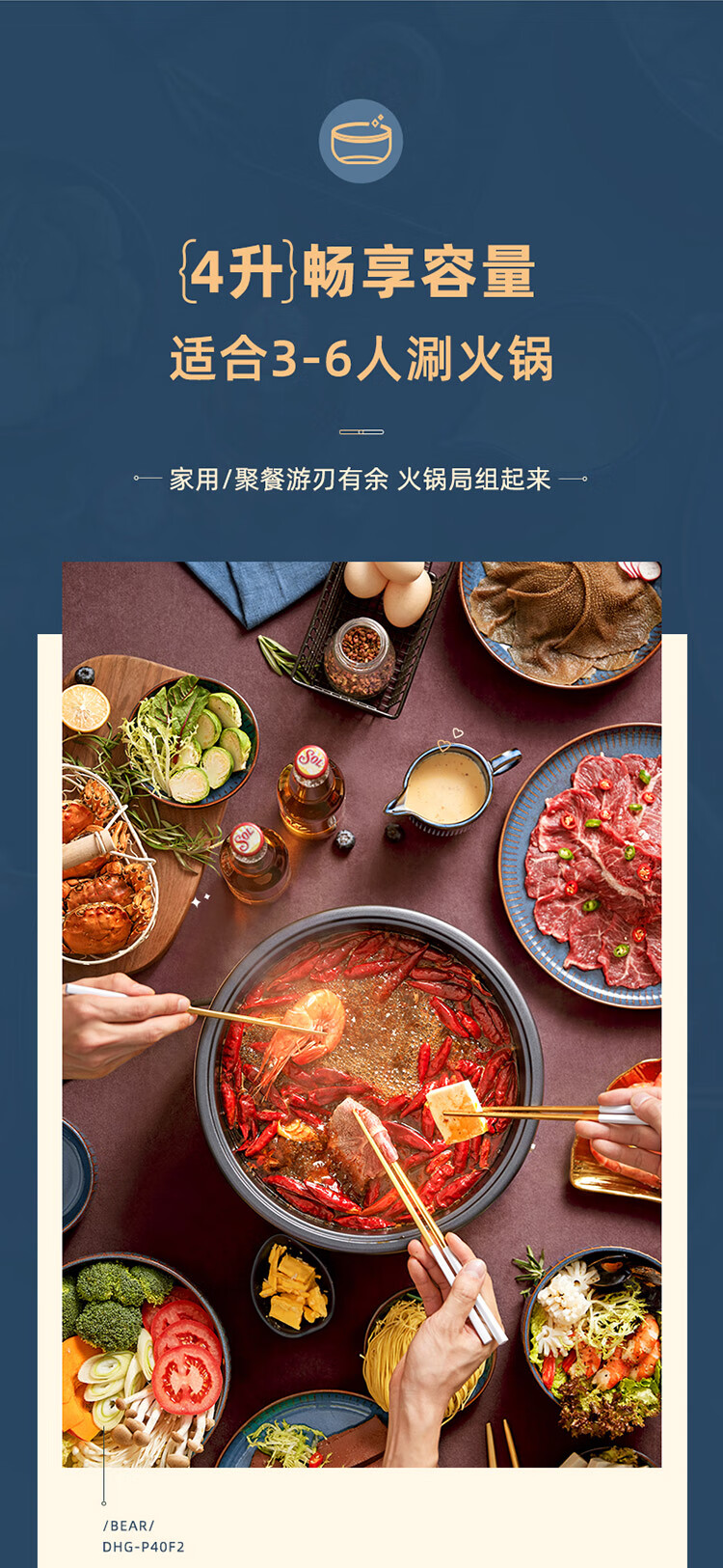 小熊 分体电火锅 4L 蓝色 DHG-P40F2-1300W