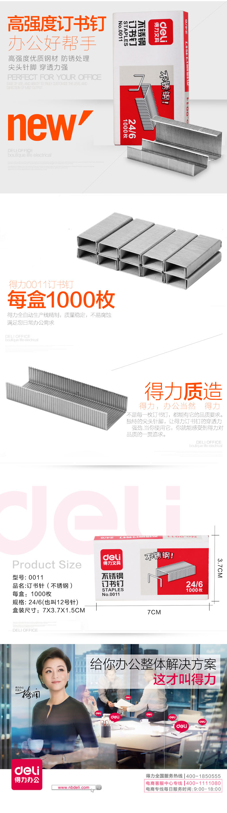 得力0011不锈钢订书钉12#(1000枚/盒)