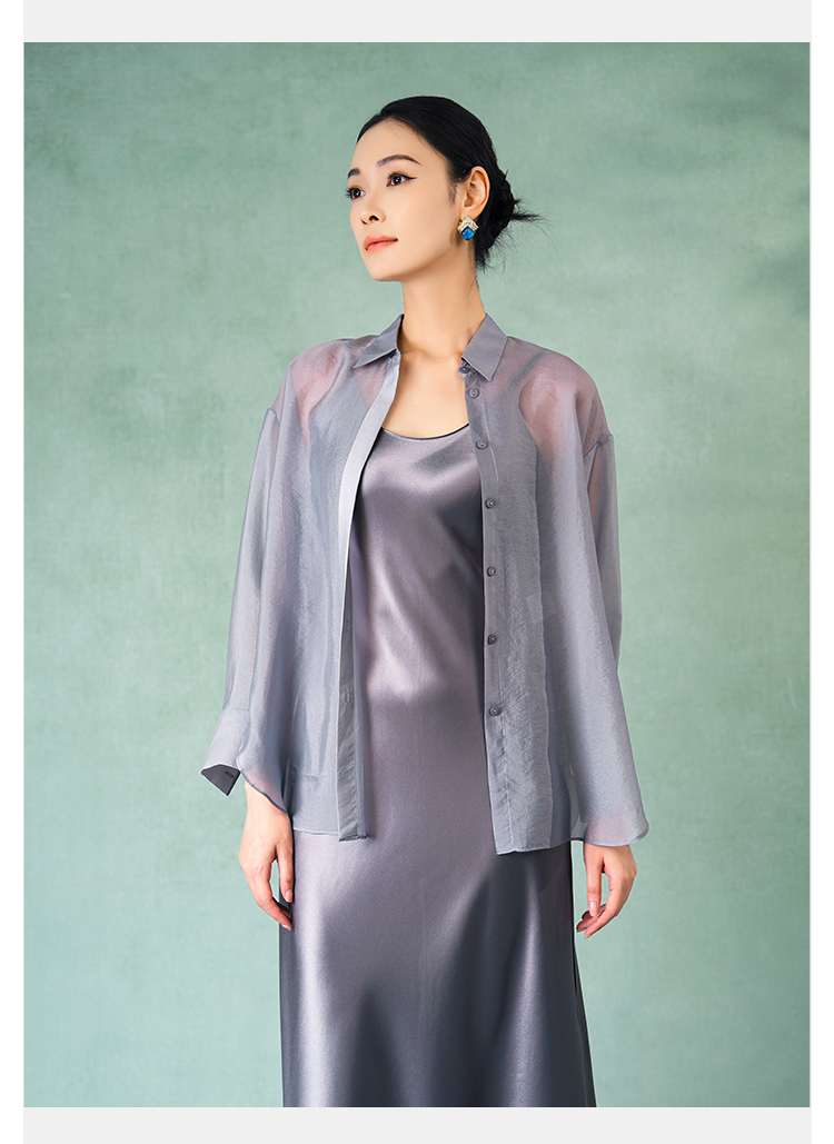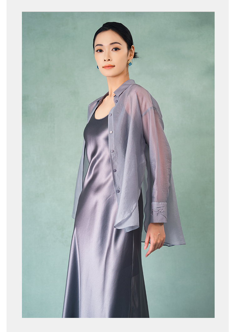郭培成衣品牌精品系列薄雾轻纱高级感裸肤衬衫