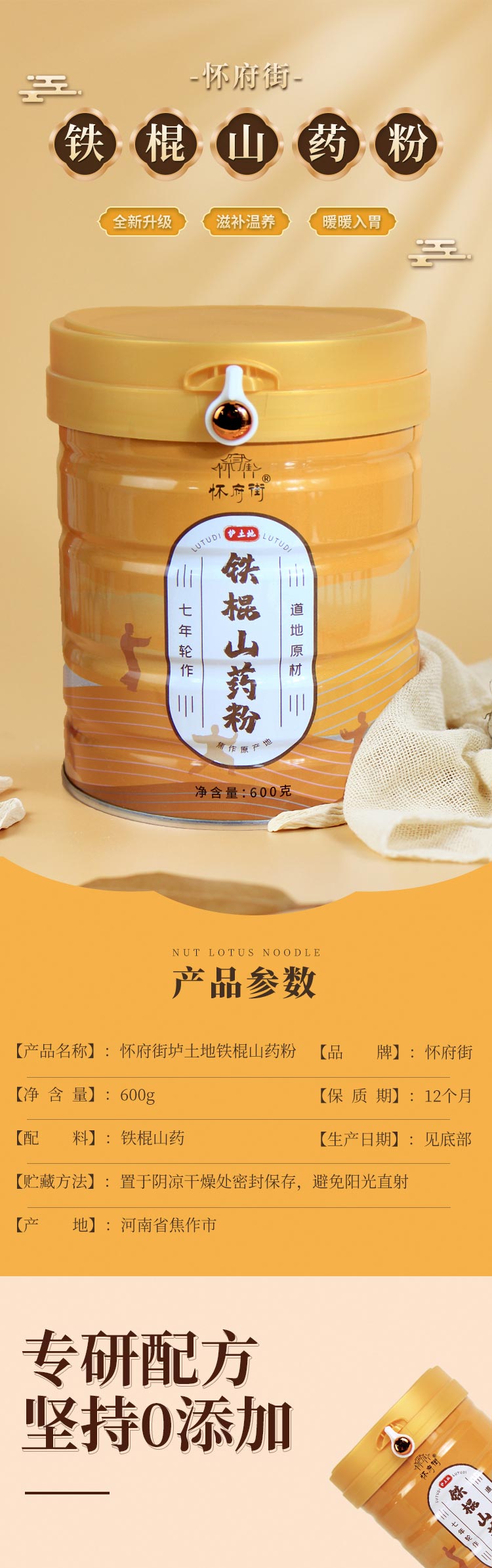 怀府街铁棍山药粉600g 温县垆土地山药营养代餐 冲泡方便 暖暖入胃
