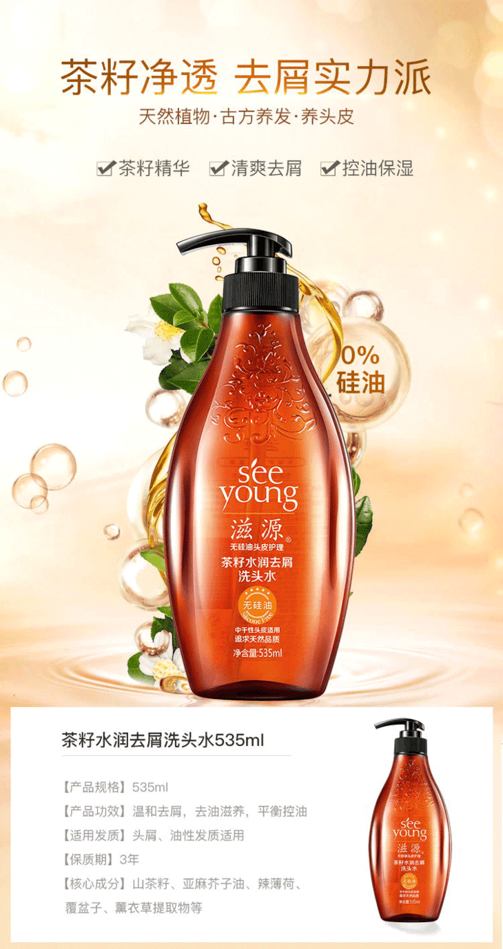 滋源茶籽洗发水535ml*2瓶