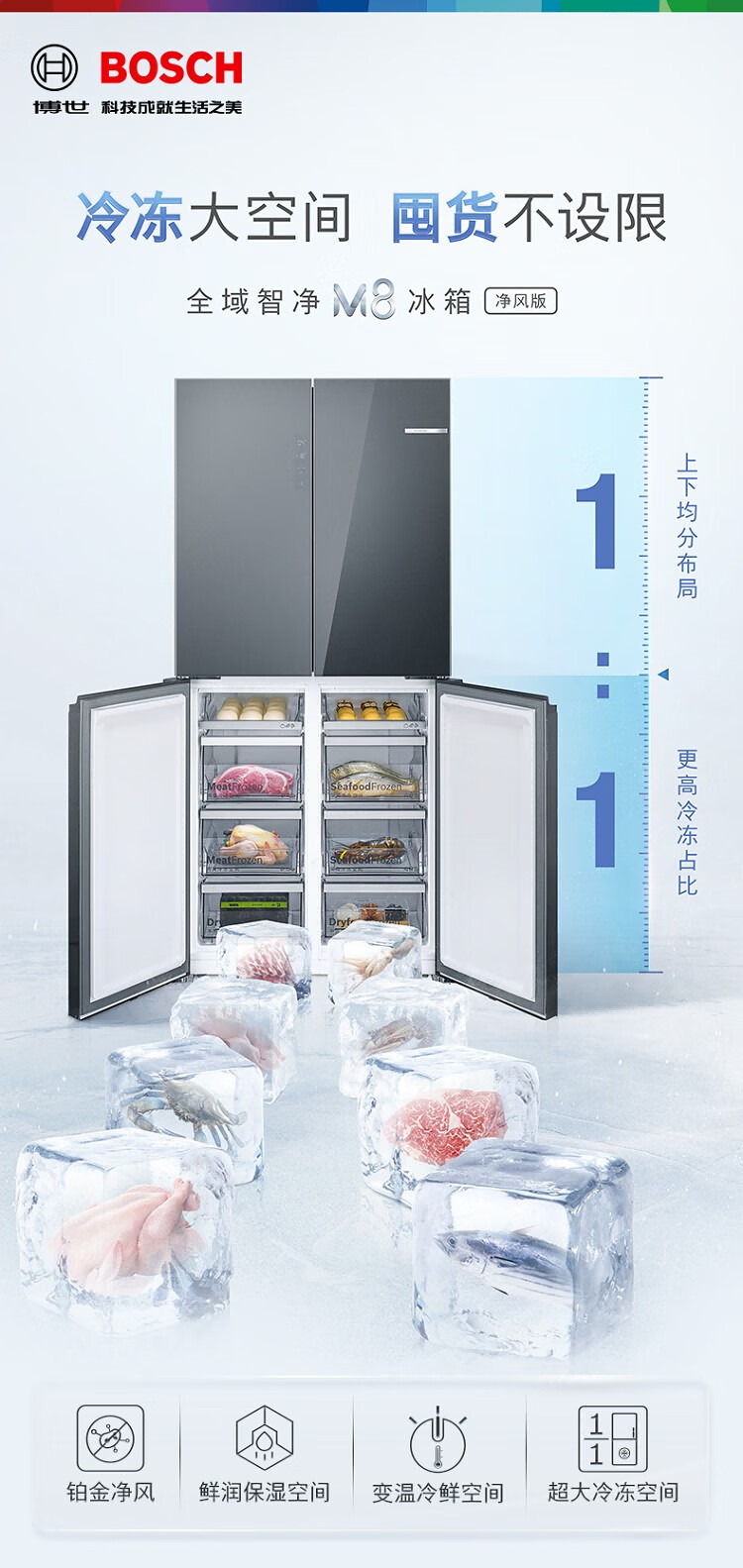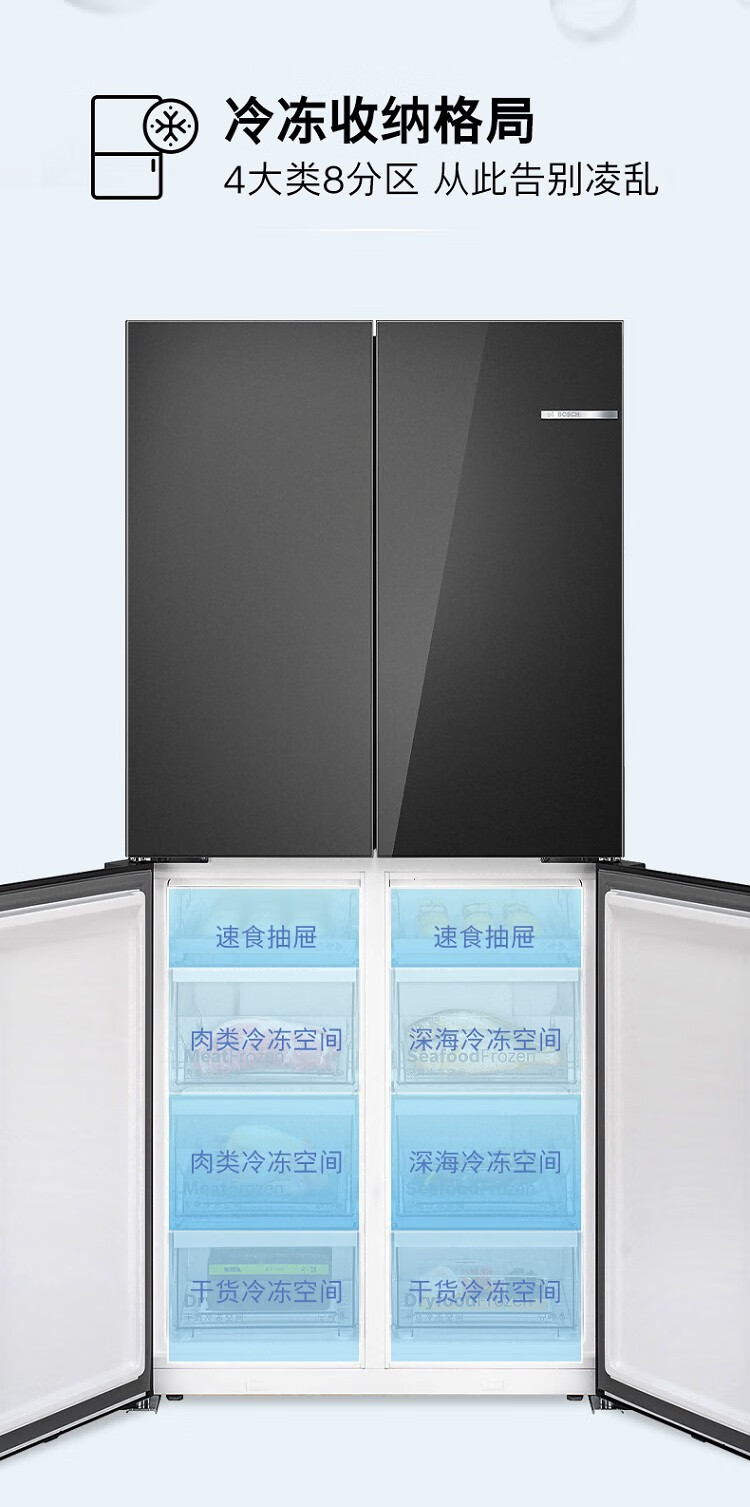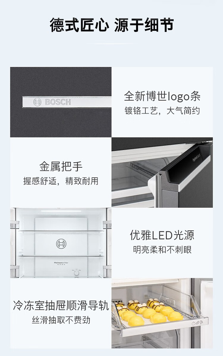 博世(BOSCH)550升十字对开门冰箱家用风冷无霜四开门电冰箱一级能效 铂金净风抗菌净味 嵌入式冰箱 K6C82EA98C