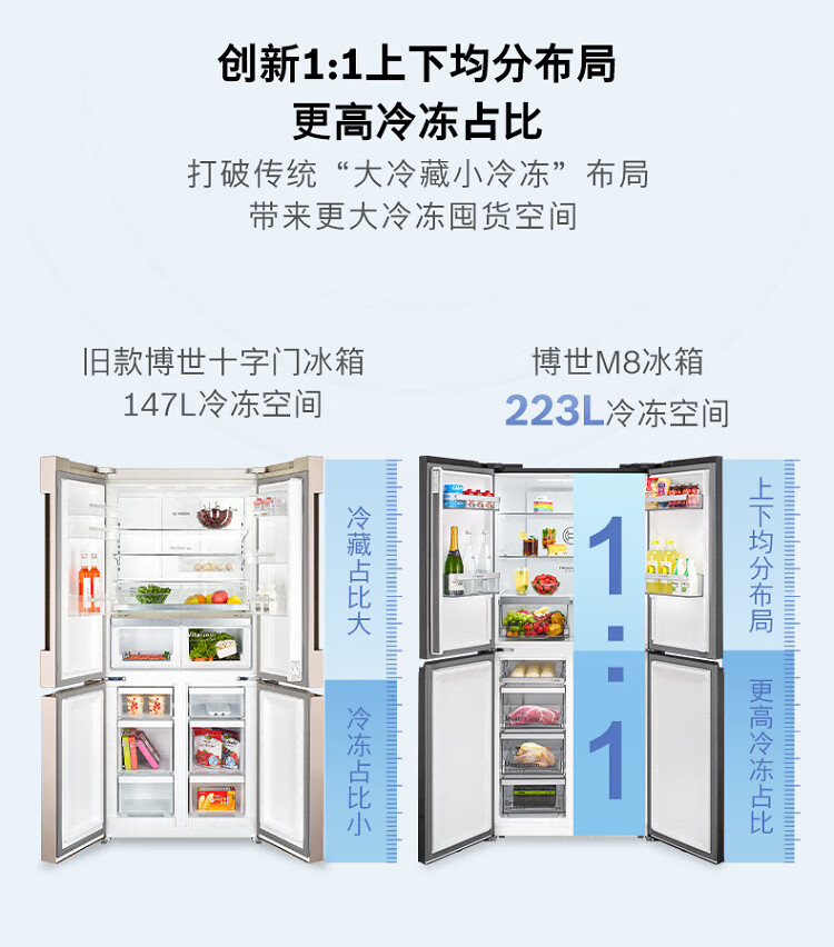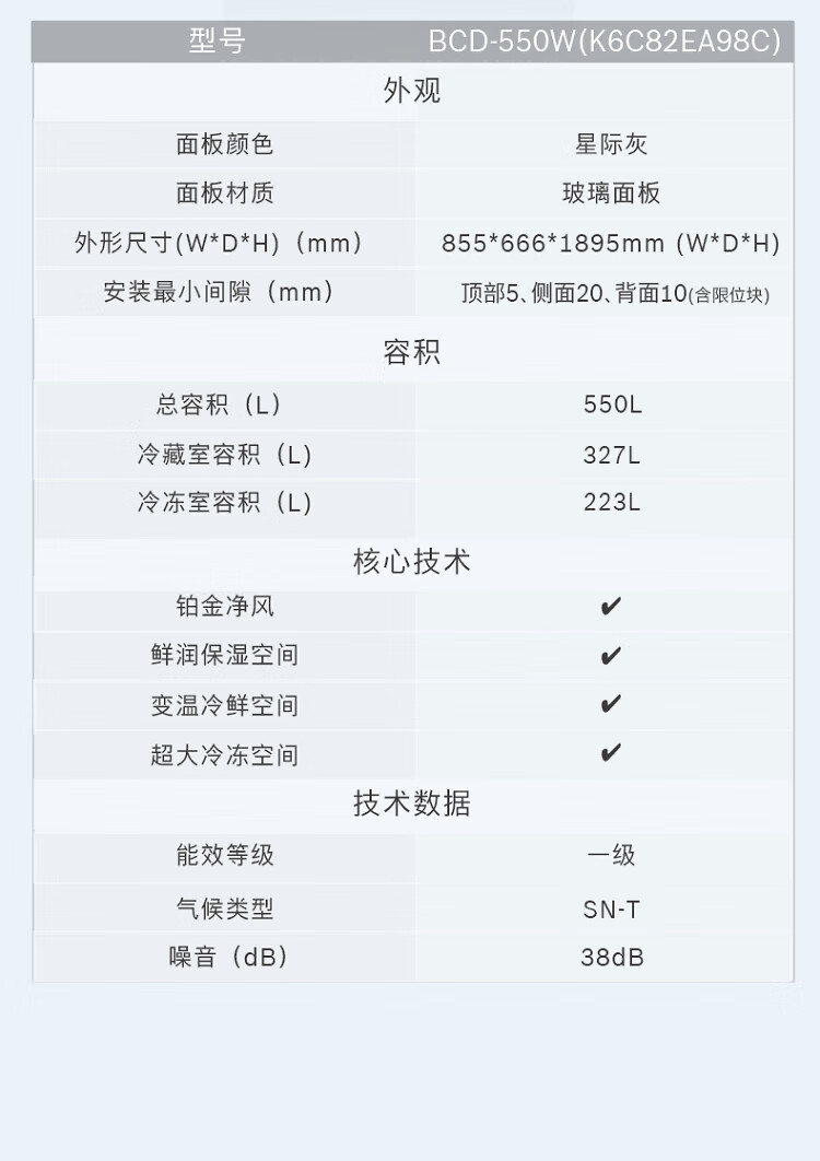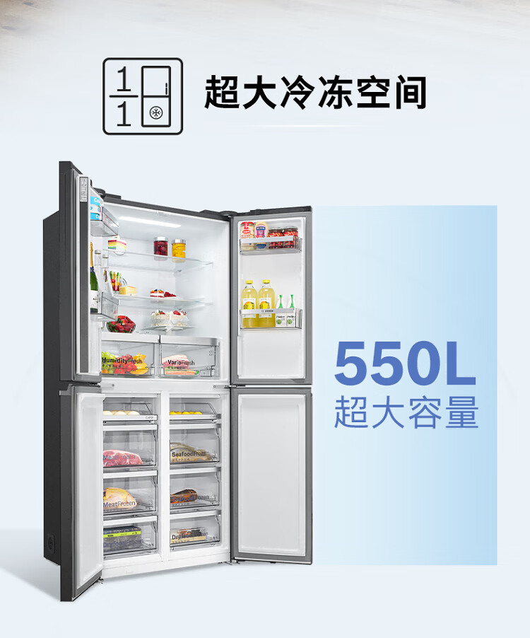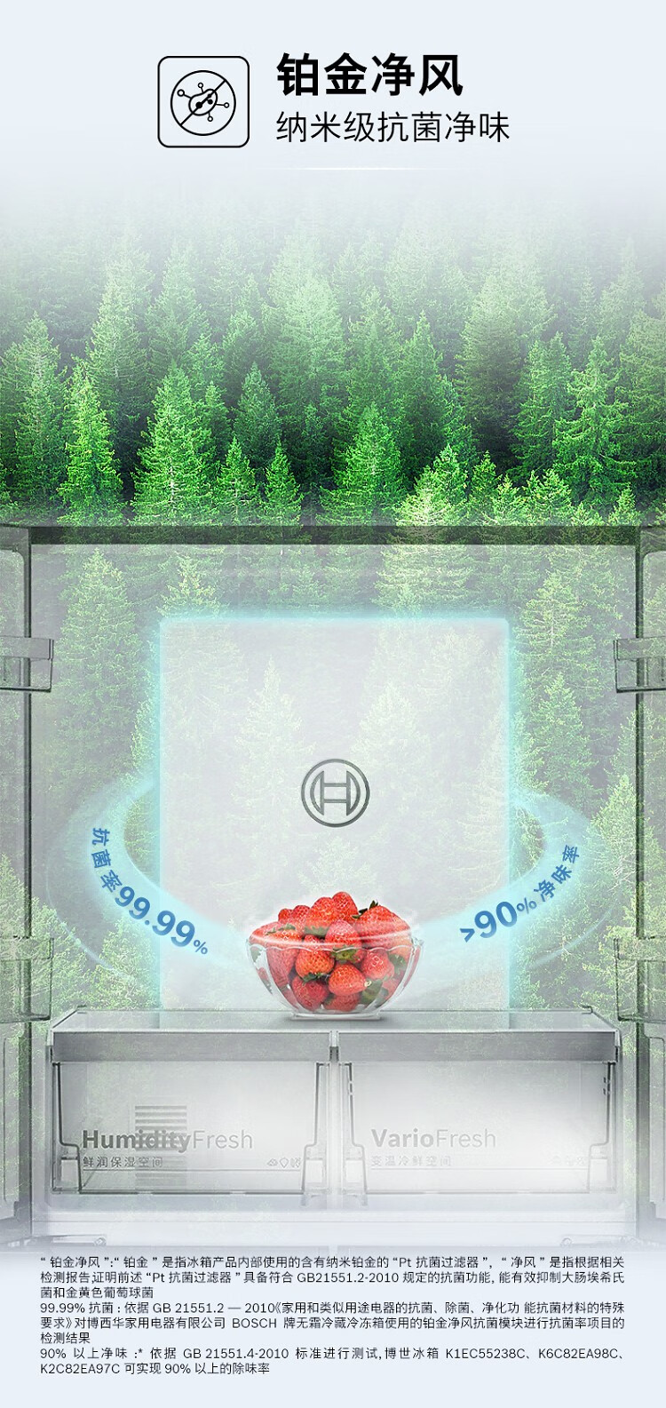博世(BOSCH)550升十字对开门冰箱家用风冷无霜四开门电冰箱一级能效 铂金净风抗菌净味 嵌入式冰箱 K6C82EA98C