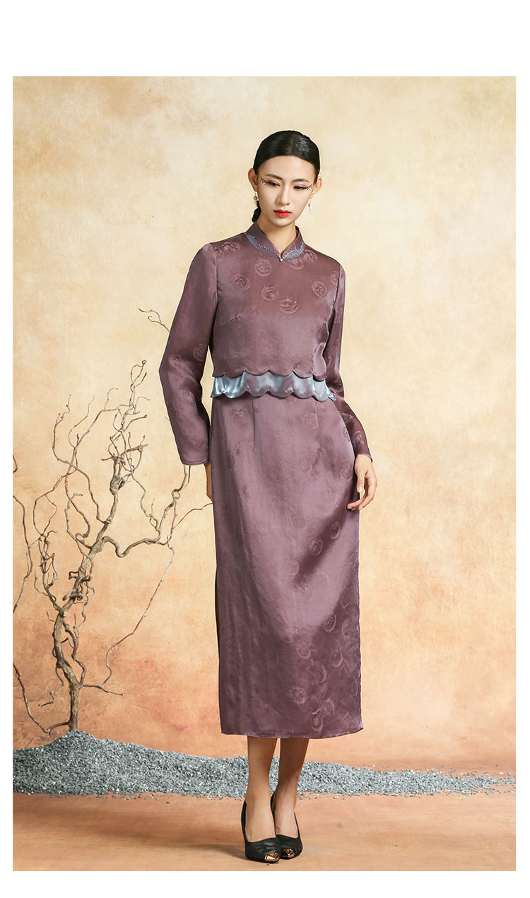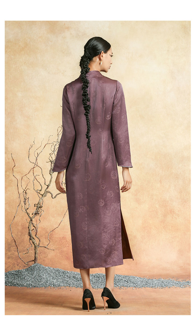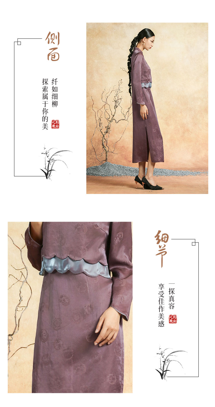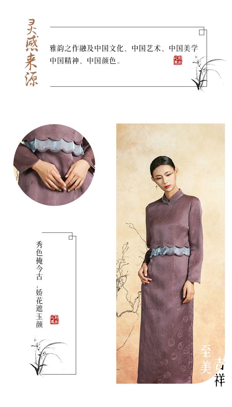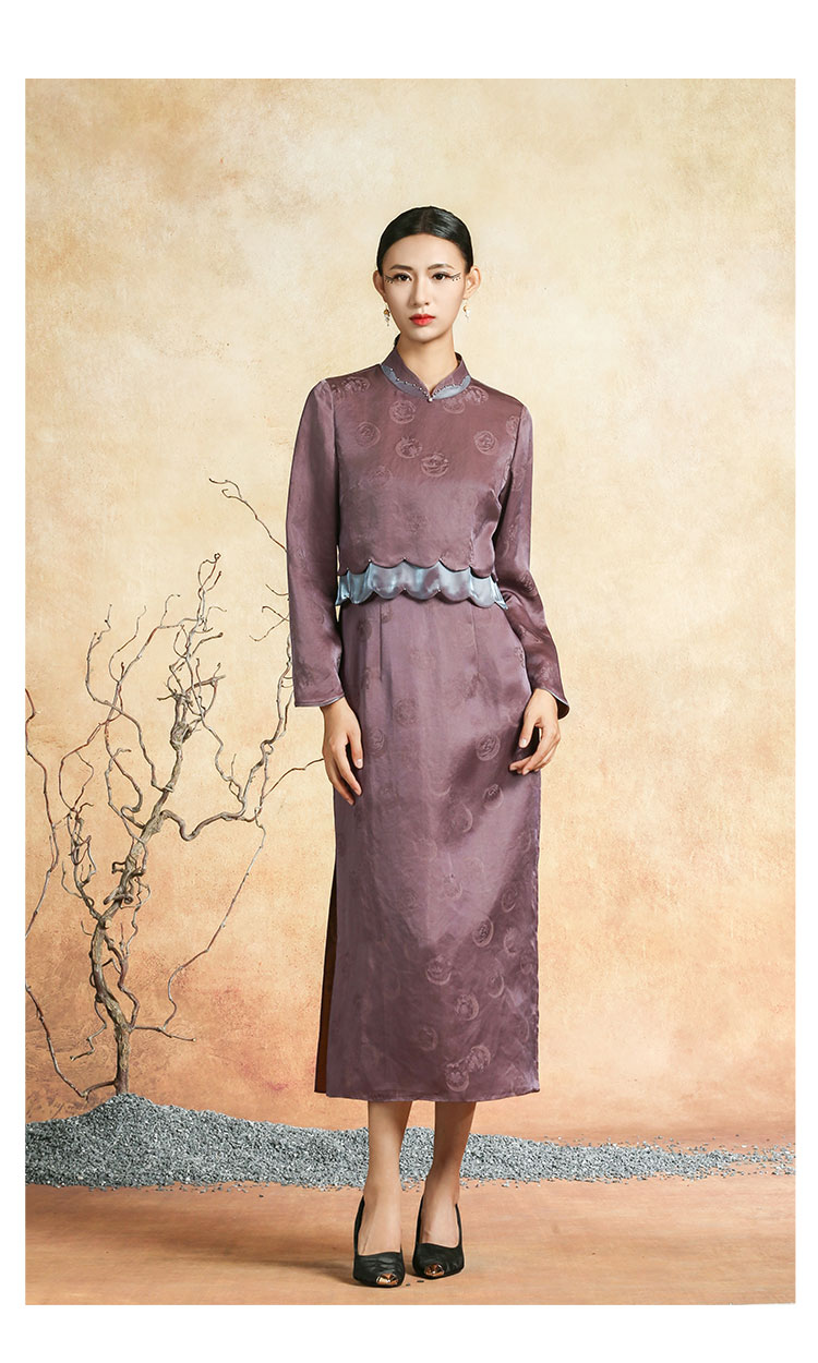 吉祥衣家新中式国风春夏新款高端气质显瘦修身女装黛紫霓裳连衣裙