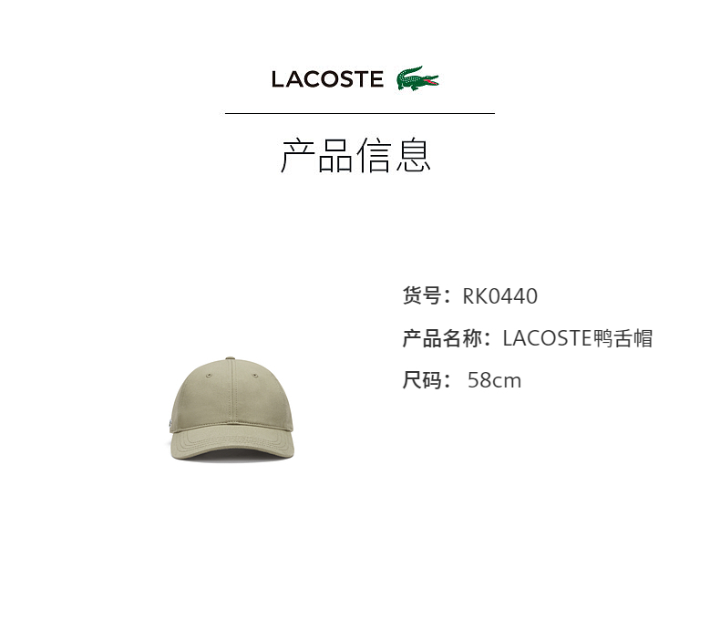 【海南专供价】Lacoste法国鳄鱼男女同款纯色百搭棒球帽鸭舌帽RK0440-98