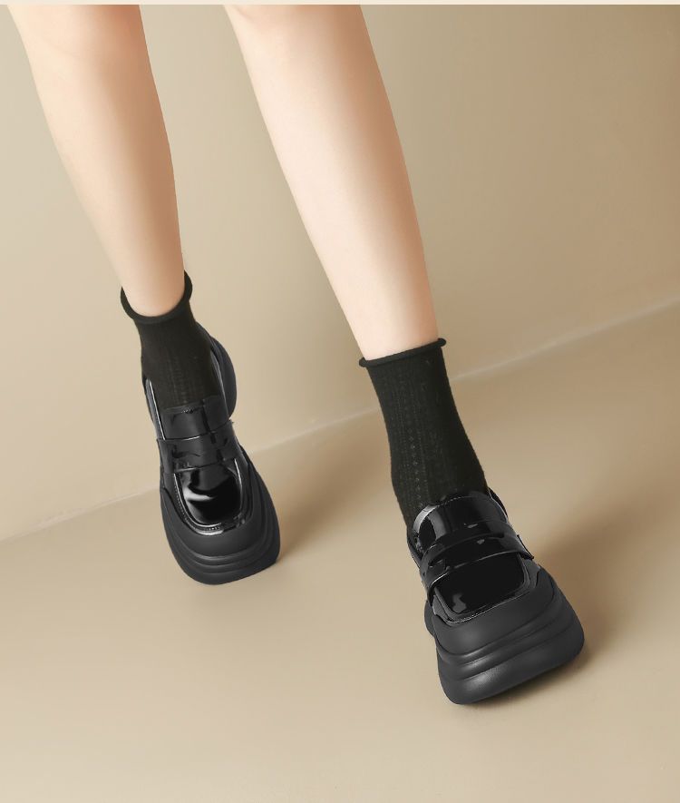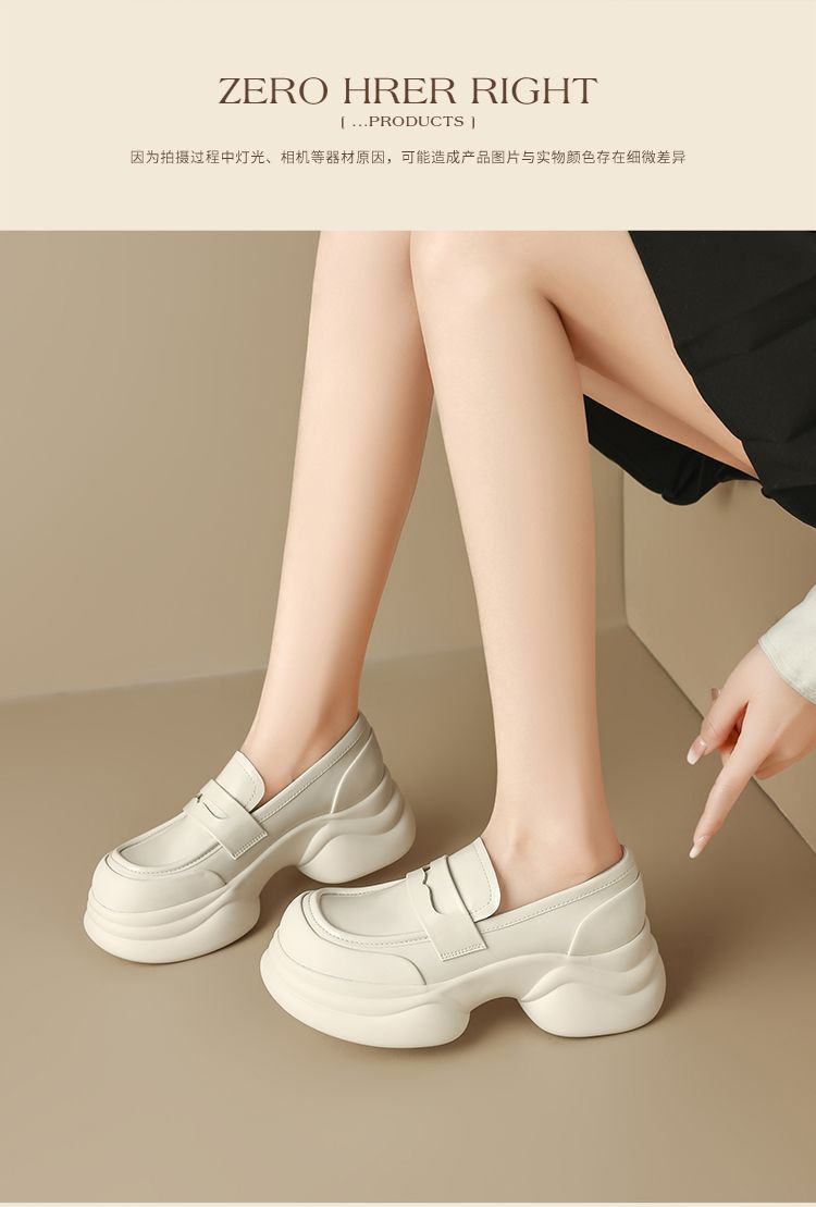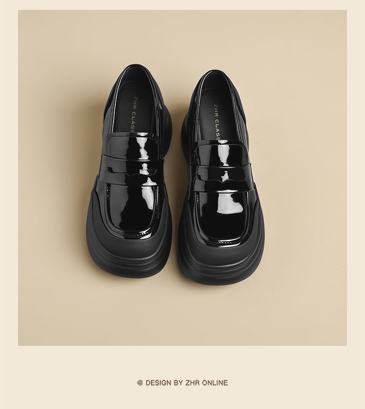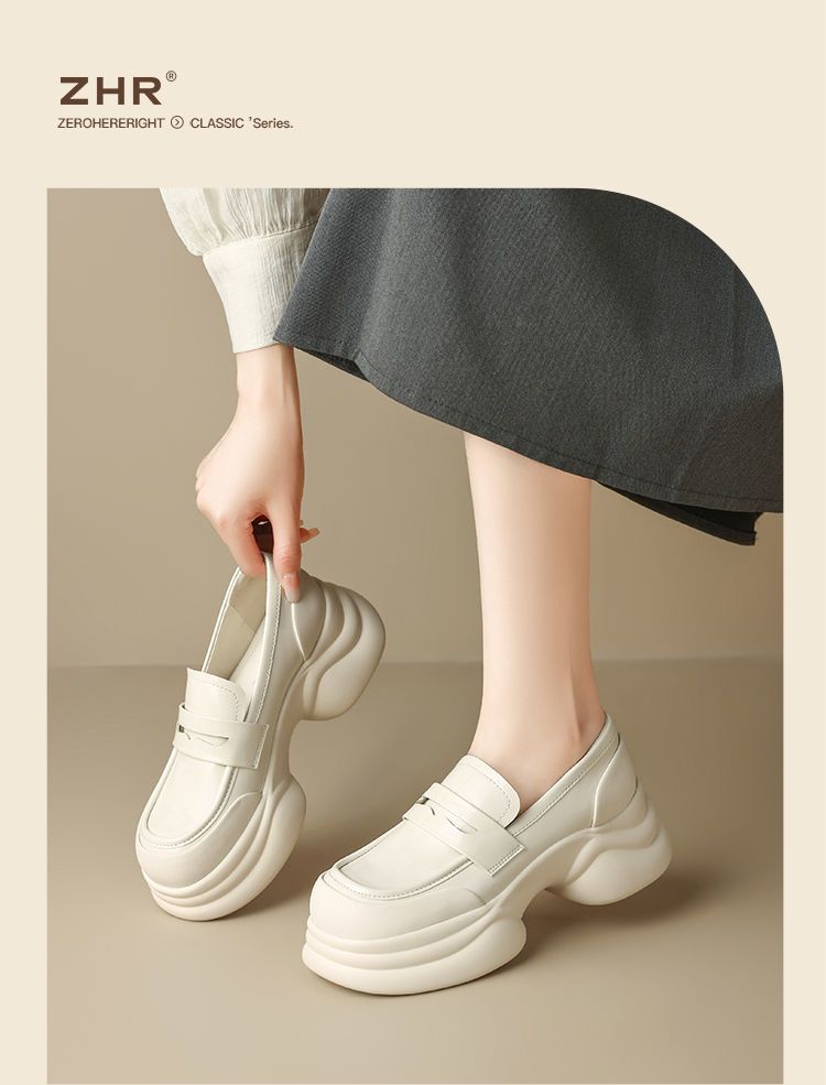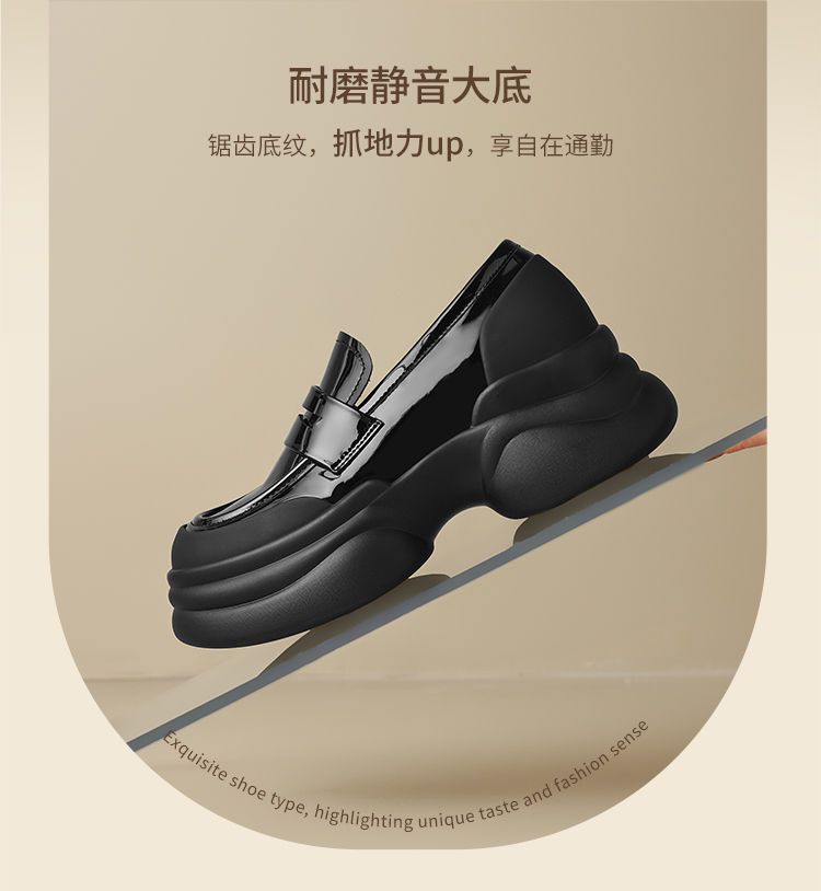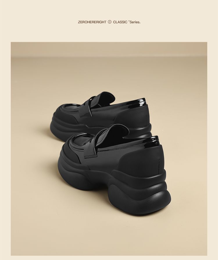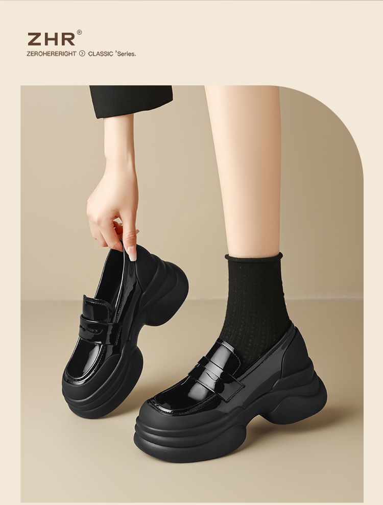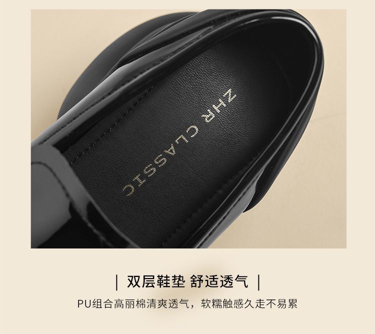 ZHR则则法式粗跟黑色乐福鞋女2025新款简约舒适增高一脚蹬小皮鞋