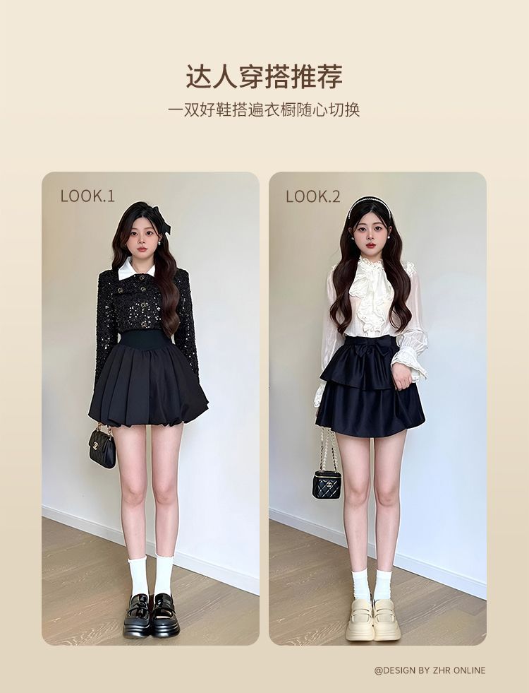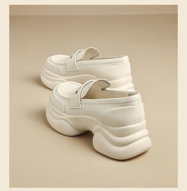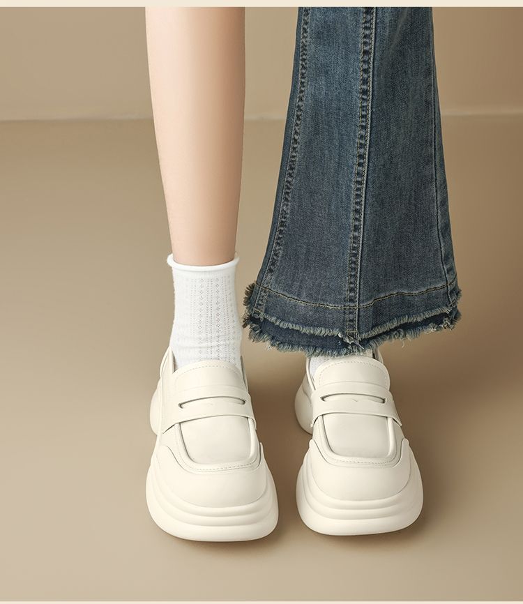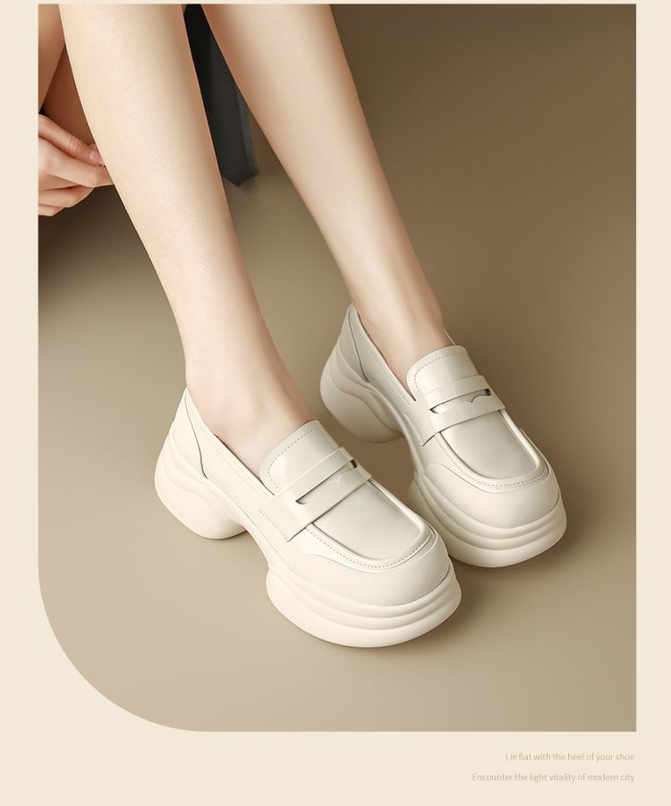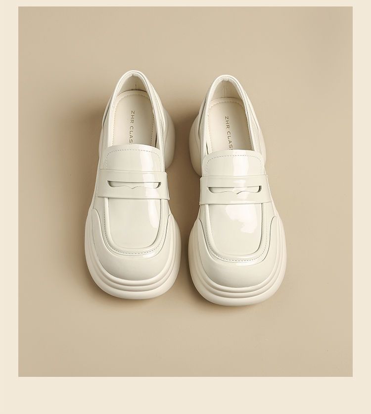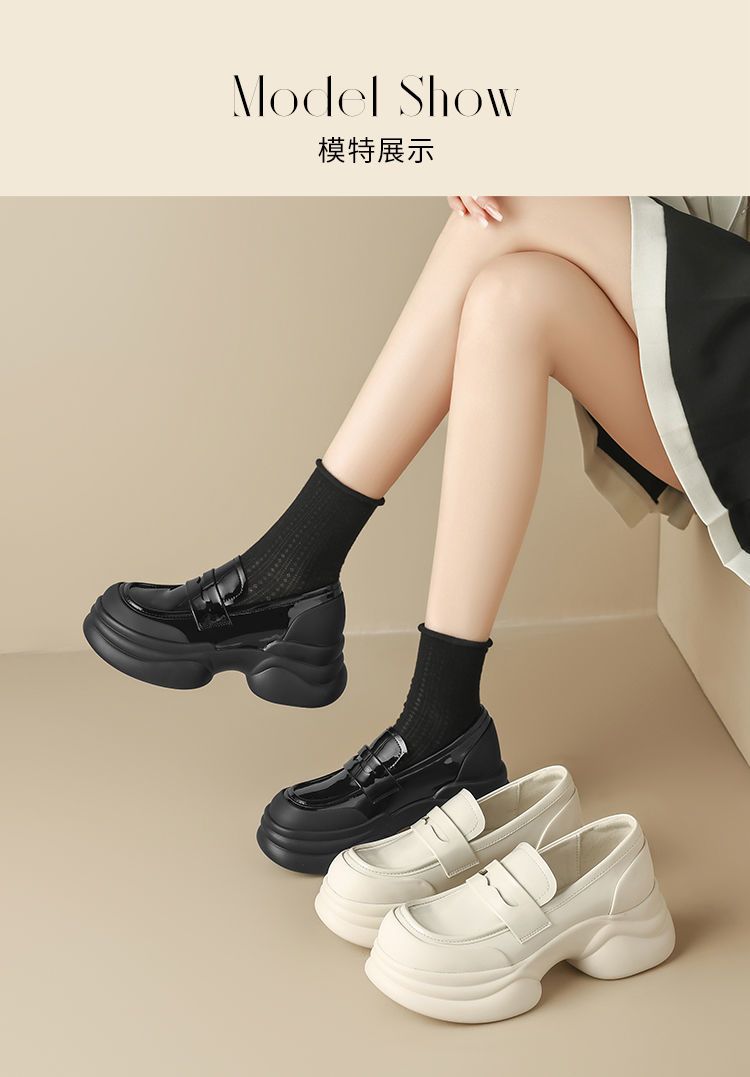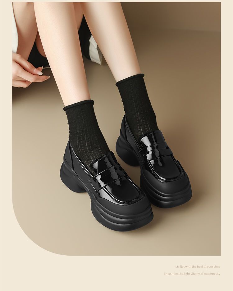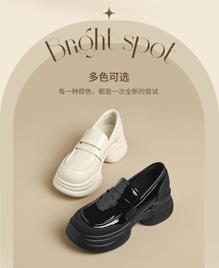 ZHR则则法式粗跟黑色乐福鞋女2025新款简约舒适增高一脚蹬小皮鞋