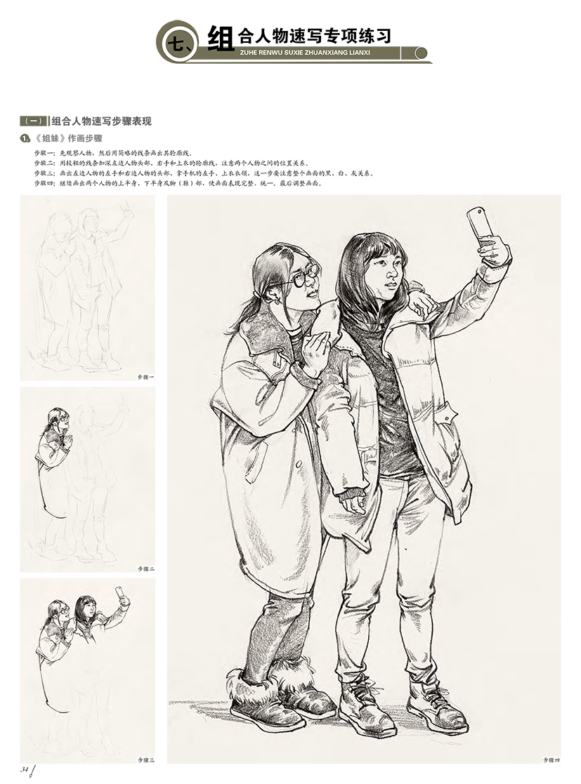 4.单个人物各种动态示范步骤和临摹,多个人物组合场景的示范步骤和临摹。