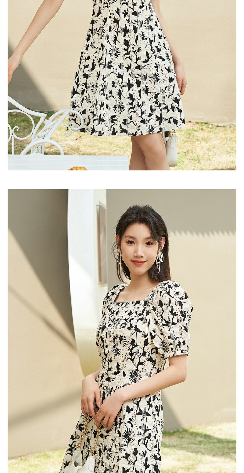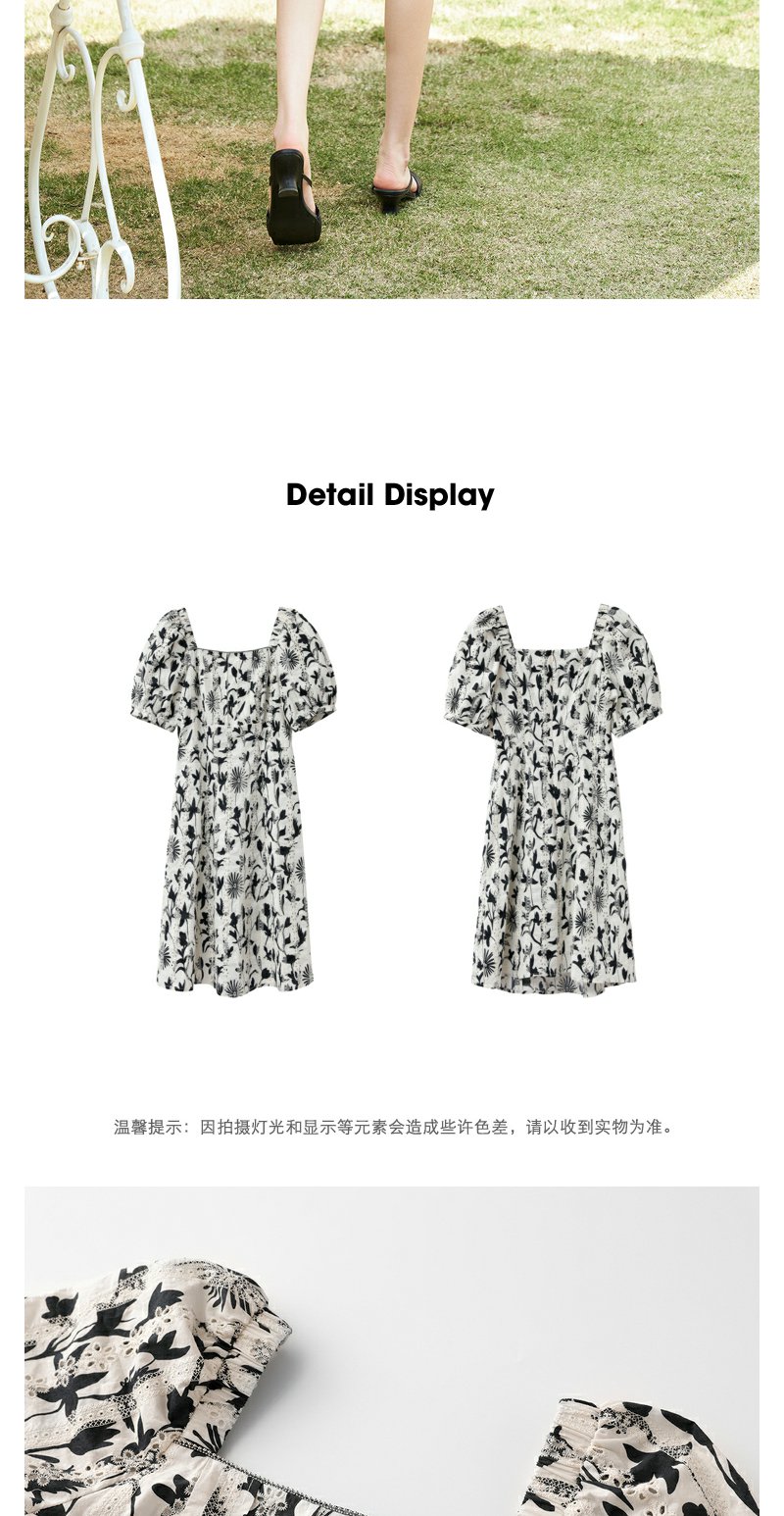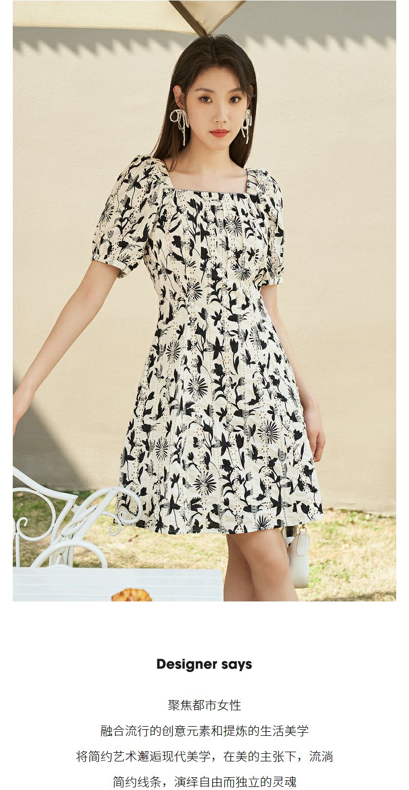 NEELLY纳俪商场同款方领泡泡袖连衣裙女夏季镂空刺绣收腰A字裙潮N23044Y04403