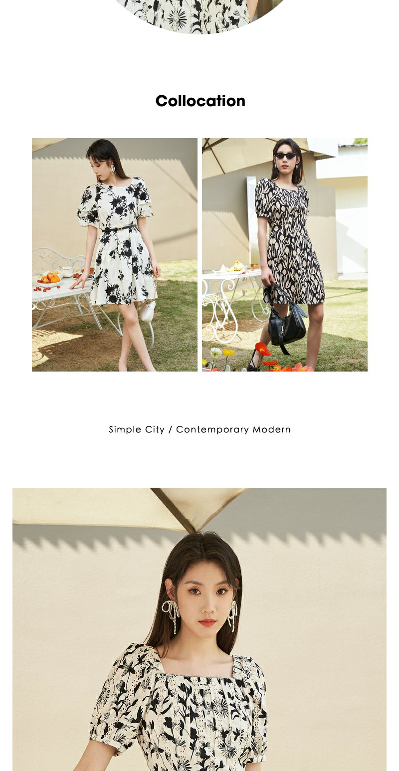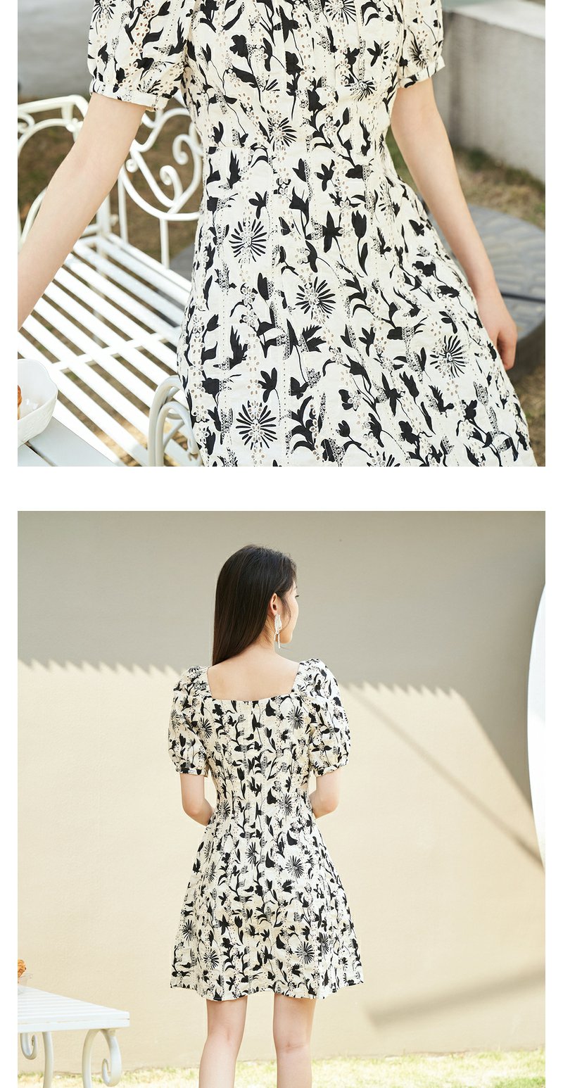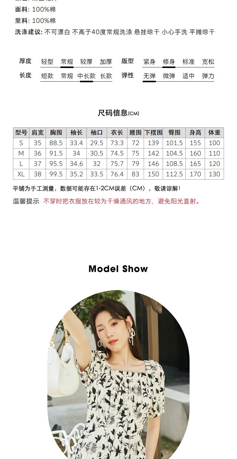NEELLY纳俪商场同款方领泡泡袖连衣裙女夏季镂空刺绣收腰A字裙潮N23044Y04403