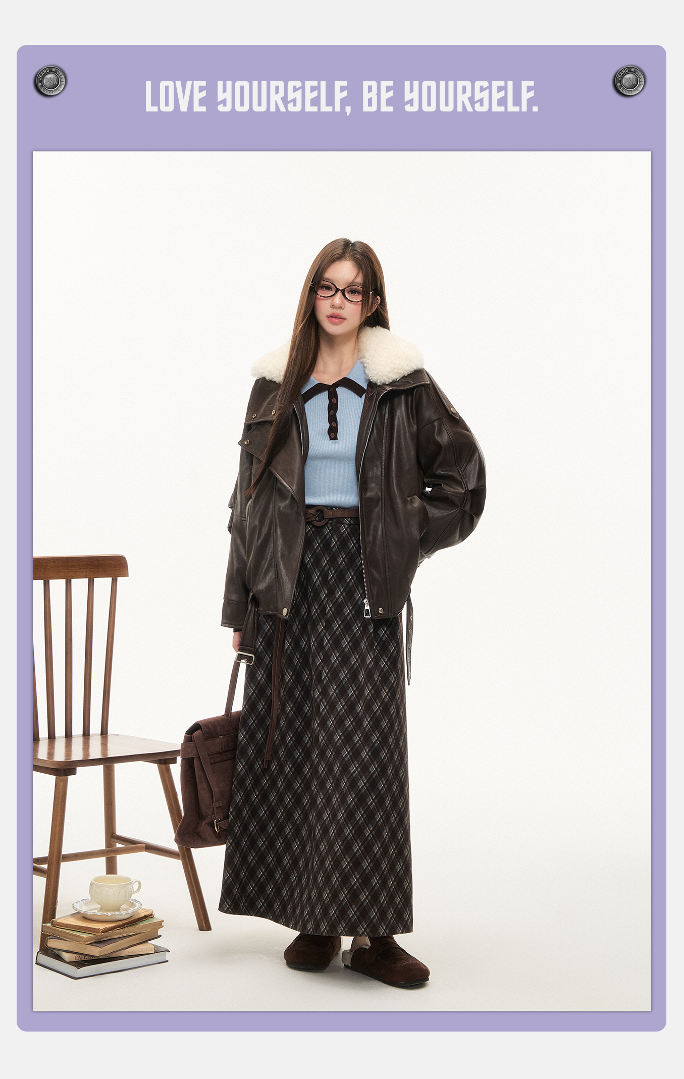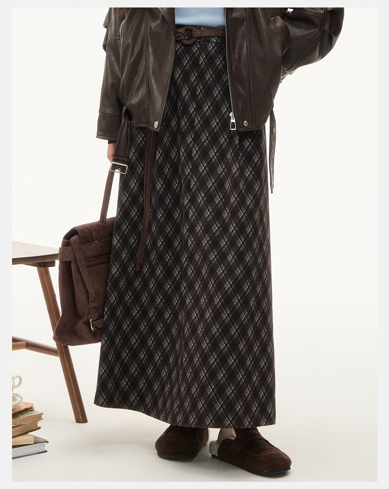 P&X设计师女装2025冬季摩登风INS风A型半身长裙825407091 咖色
