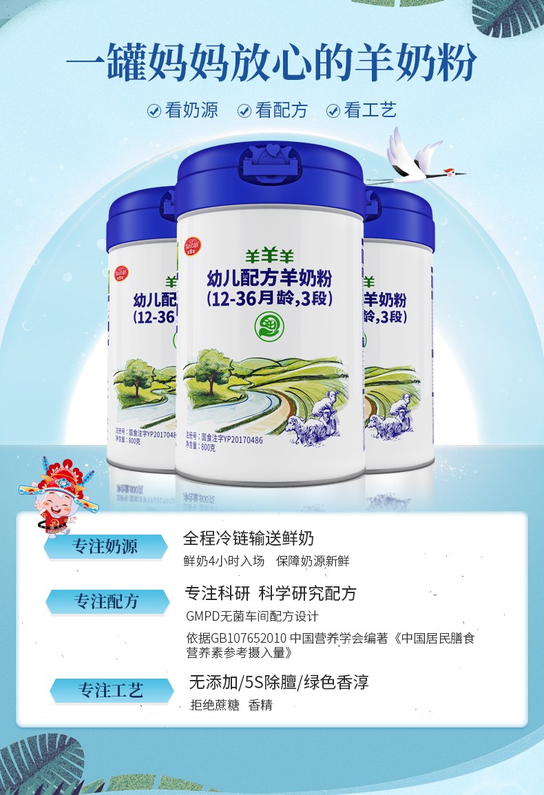 【羊羊羊】奶粉 3段羊奶粉 婴幼儿宝宝奶粉山羊奶1-3岁800g